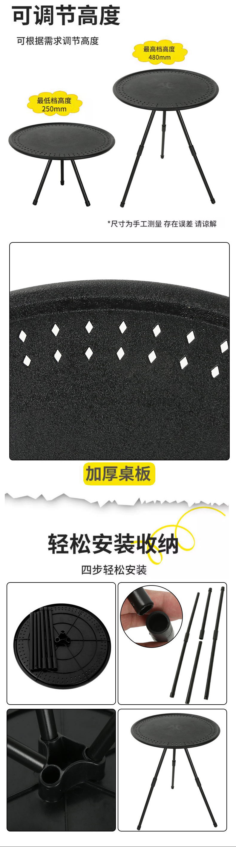 • 캠핑용 소형 원형 테이블(수납 가방 포함)