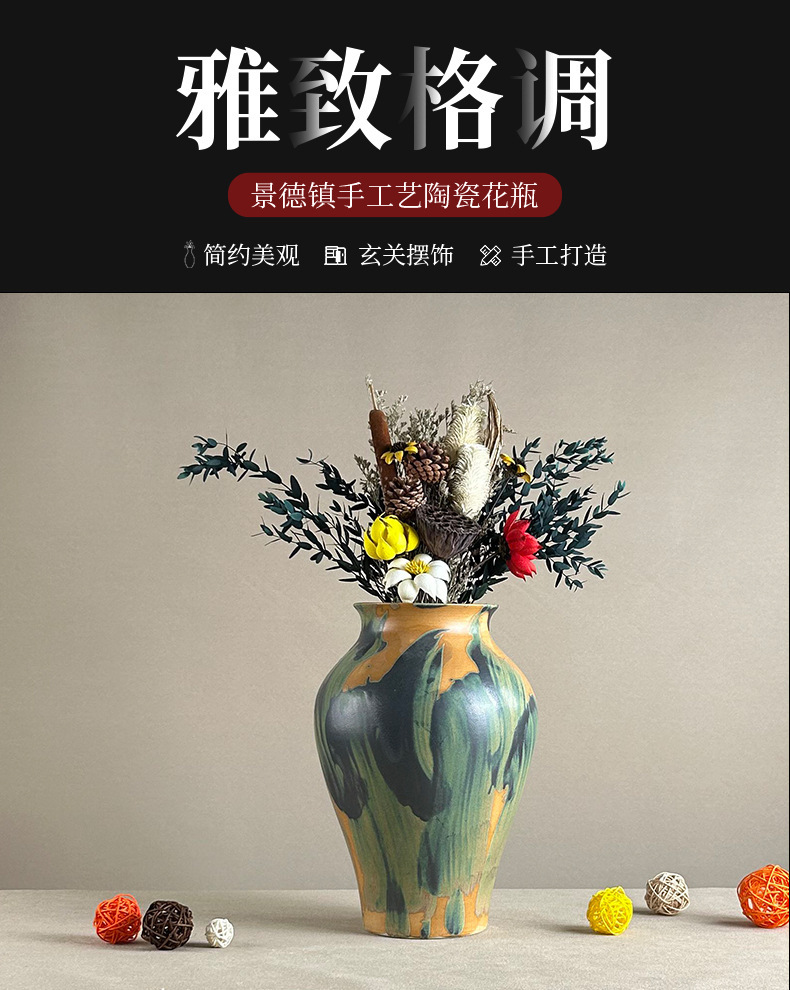 간단한 현대 복고풍 꽃 올리기 세라믹 테이블 탑 말린 꽃병 거친 도자기 냄비 장식 장식품 거실 꽃 냄비스토어 가기