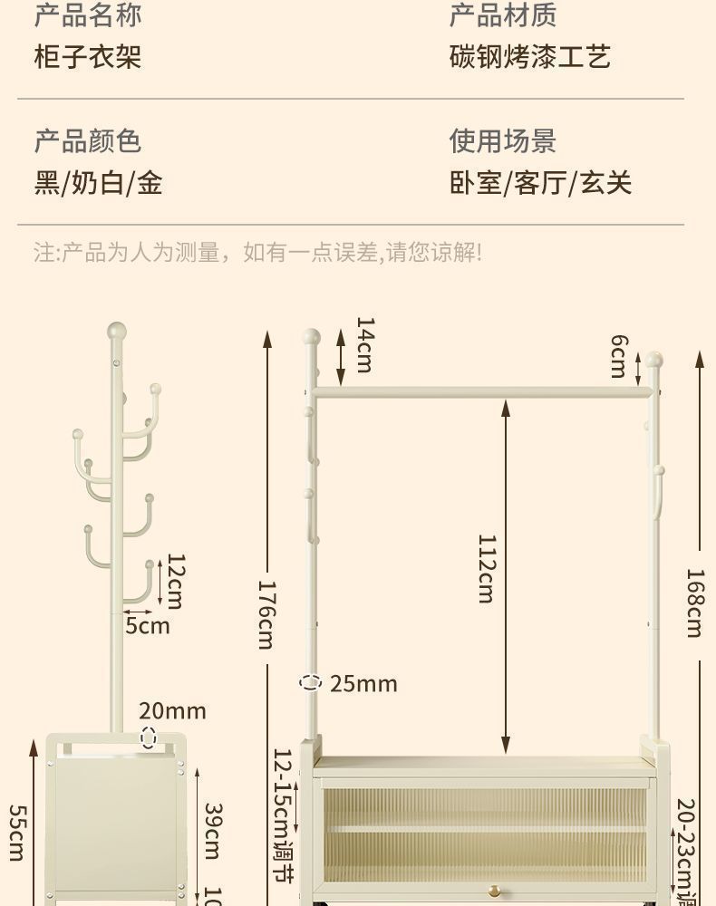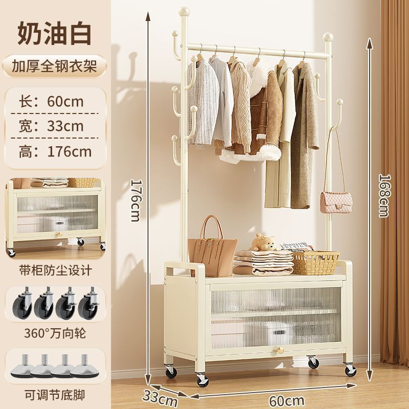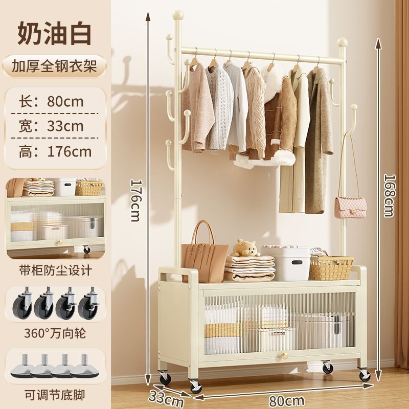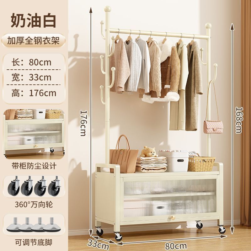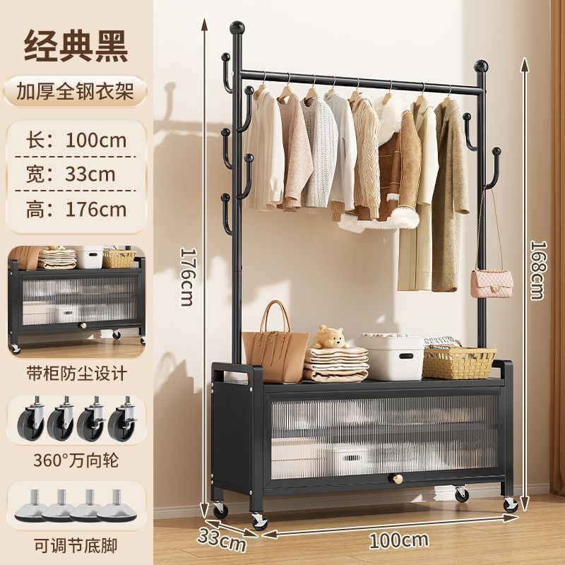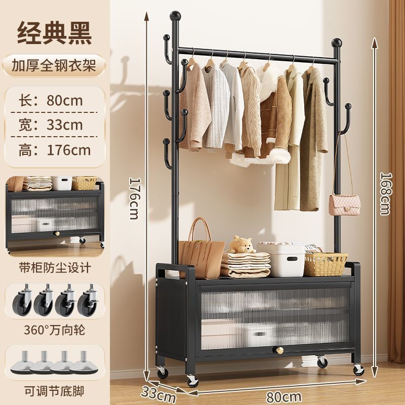 가정용 이동식 코트 랙 침실 발코니 옷걸이 바닥 서 보관 캐비닛 2-in -1 특수 두꺼운 간단한 옷걸이