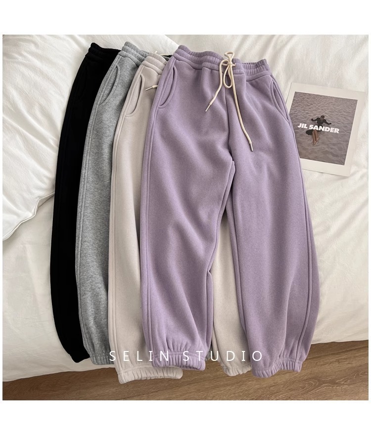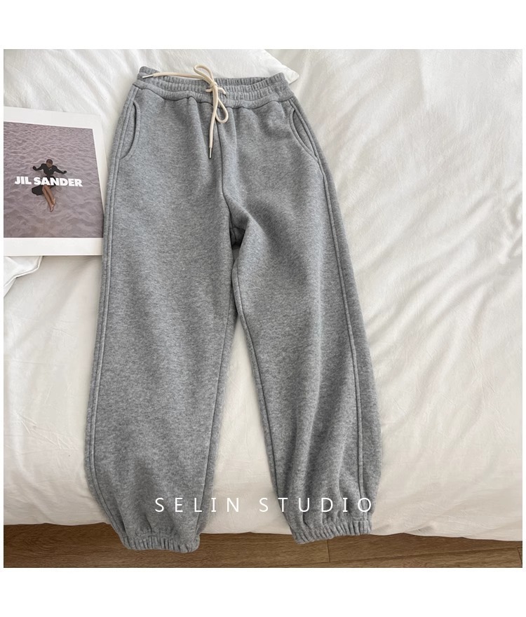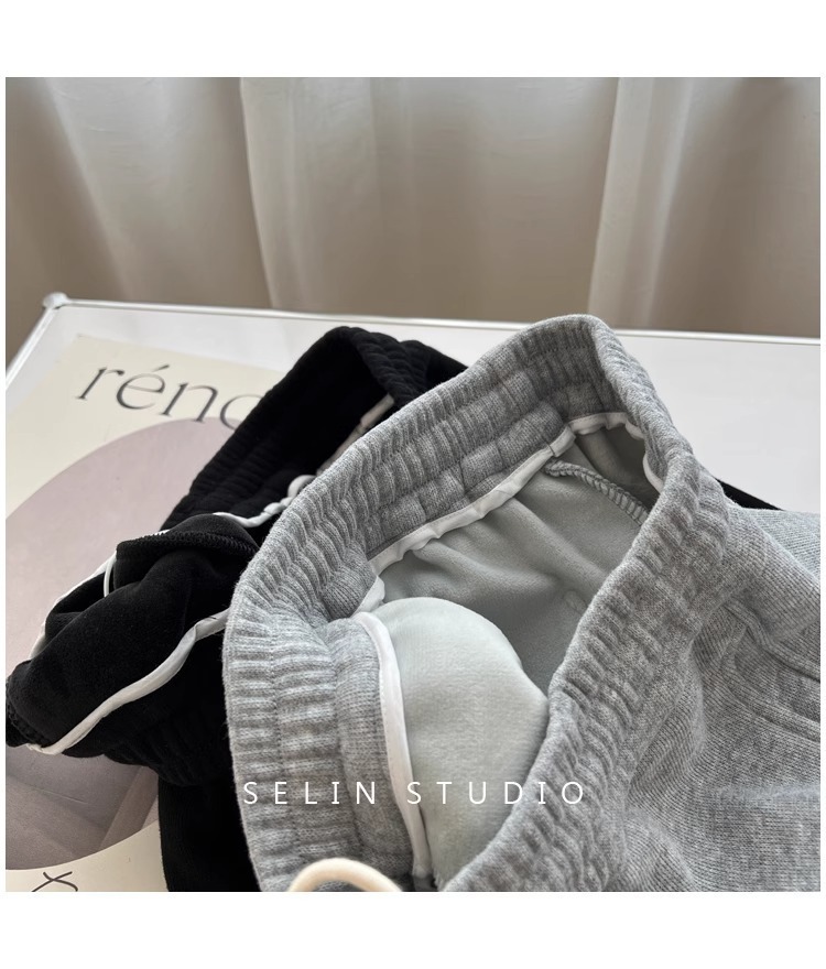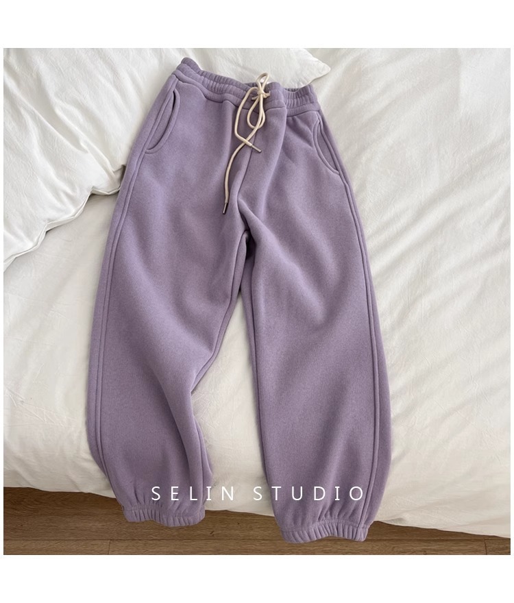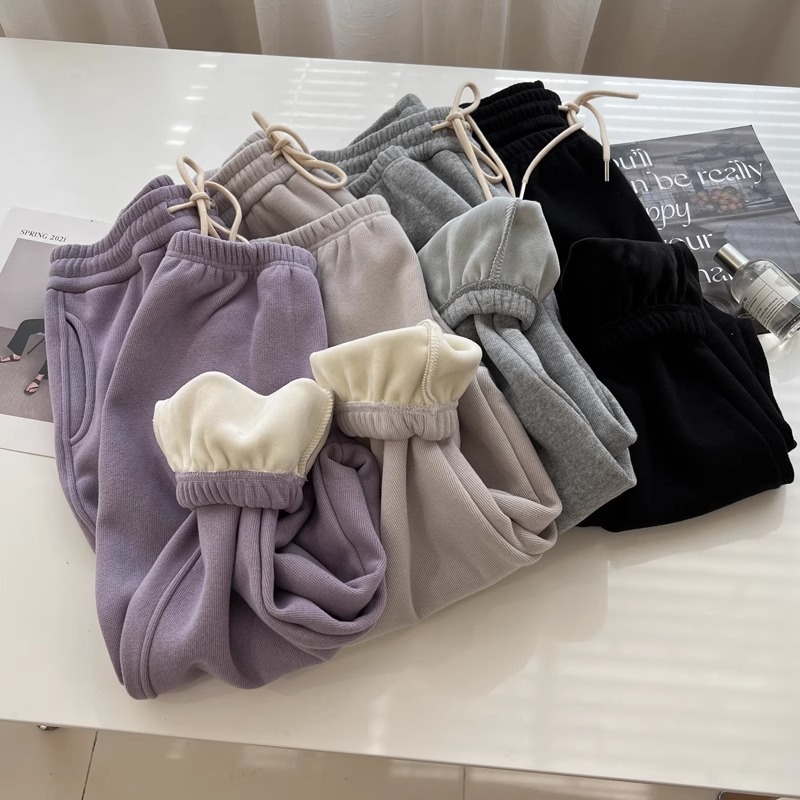 플러스 사이즈 캐주얼 바지 여자 가을 겨울 기모 통통 자매 높은 허리 느슨한 엉덩이 커버 슬리밍 한국 유행 할렌 바지스토어 가기