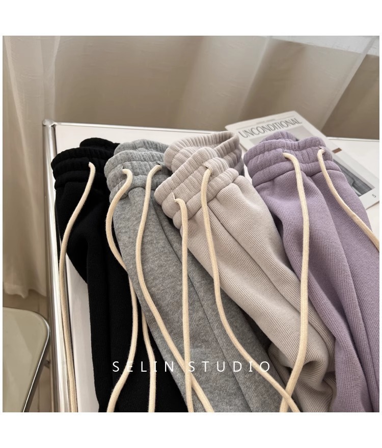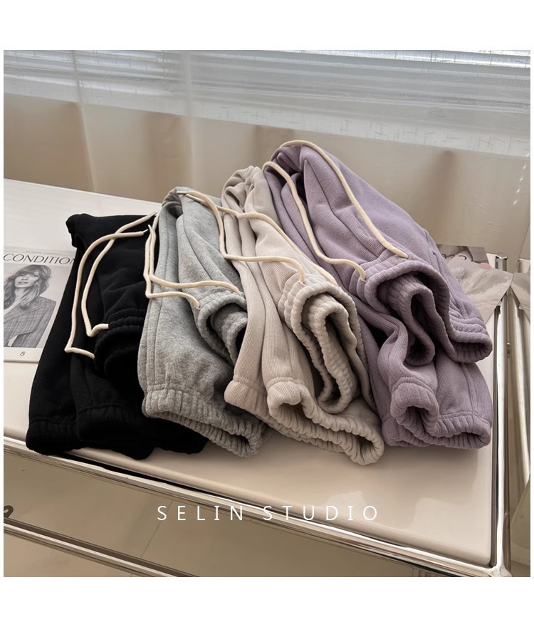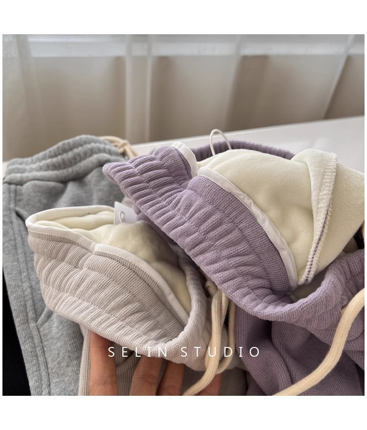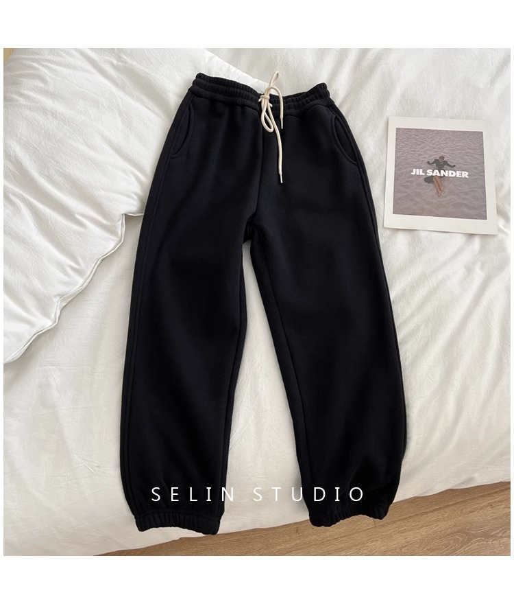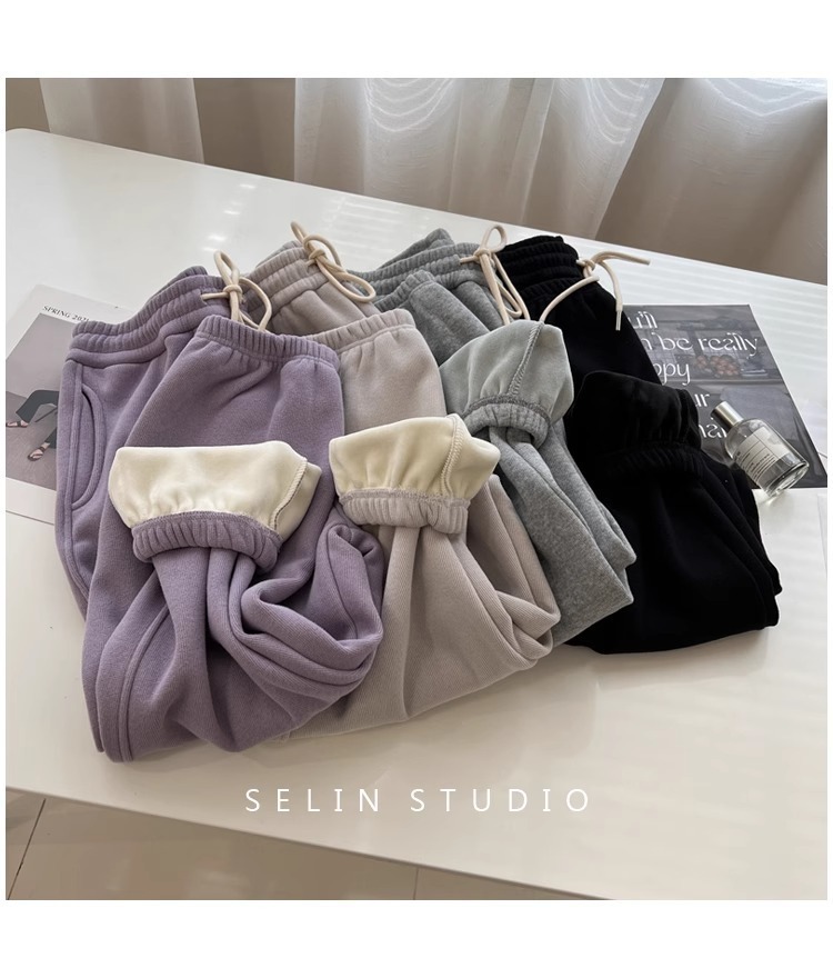 플러스 사이즈 캐주얼 바지 여자 가을 겨울 기모 통통 자매 높은 허리 느슨한 엉덩이 커버 슬리밍 한국 유행 할렌 바지스토어 가기