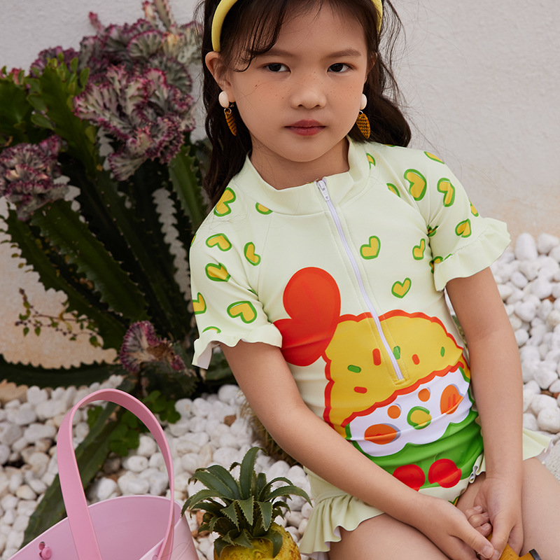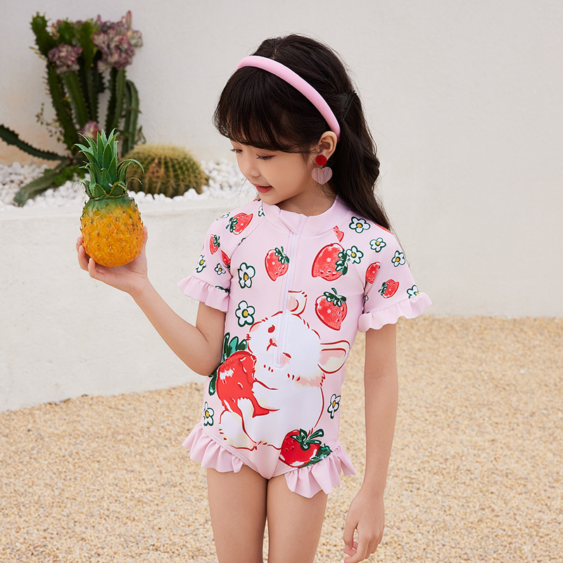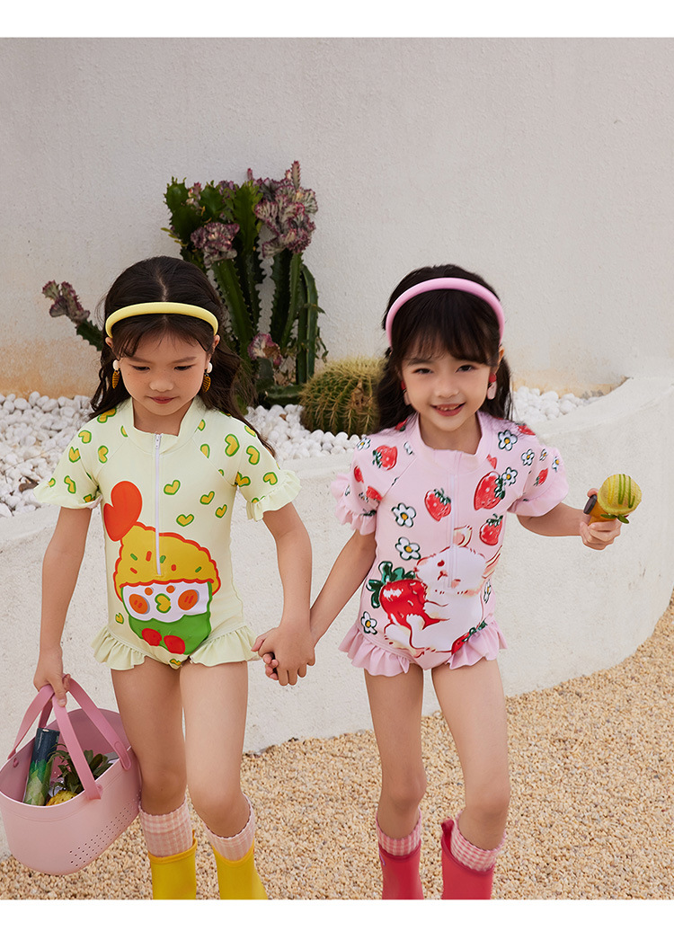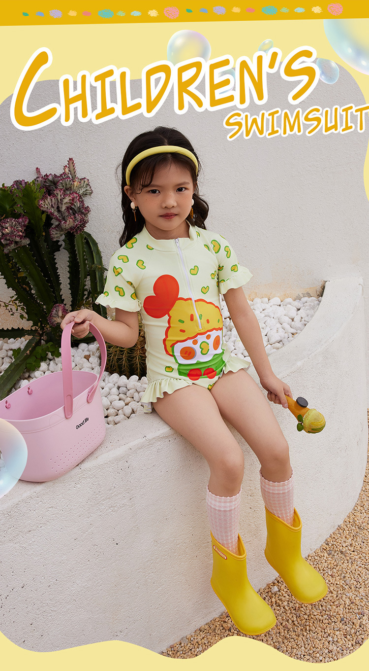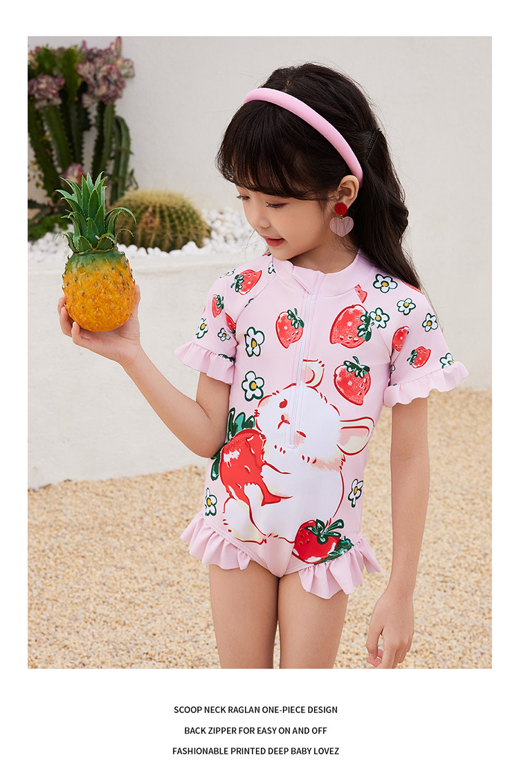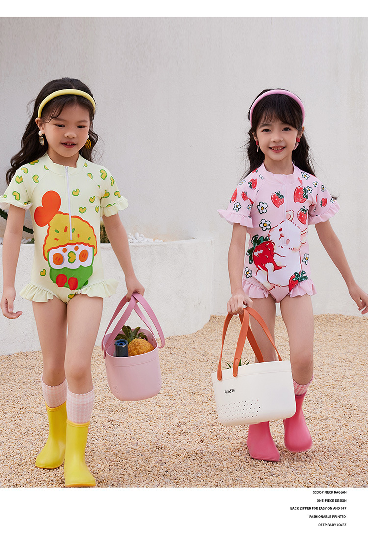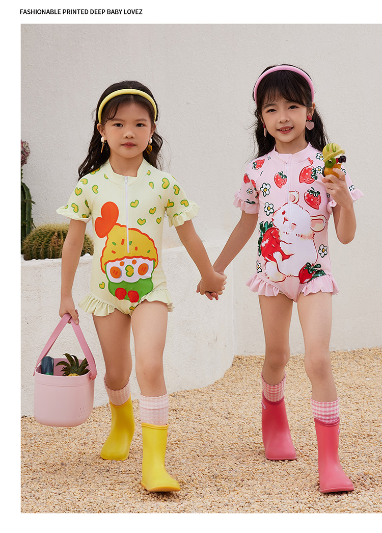 2025 새로운 어린이 수영복 소녀 아기 소녀의 원피스 수영복 만화 신선한 피부 친화적 인 온천 야외 수영