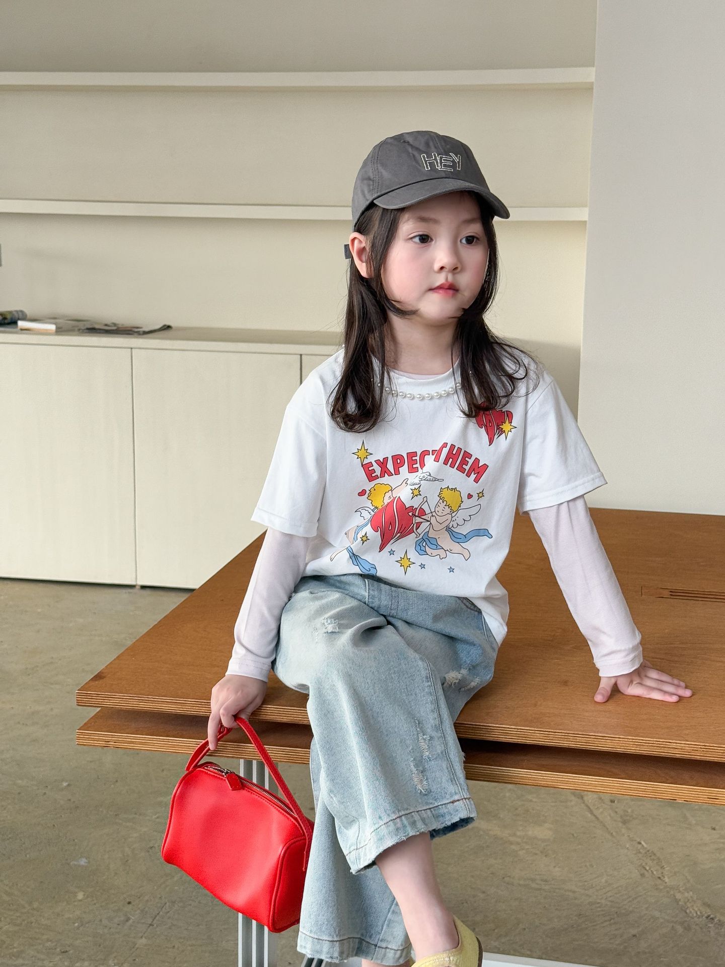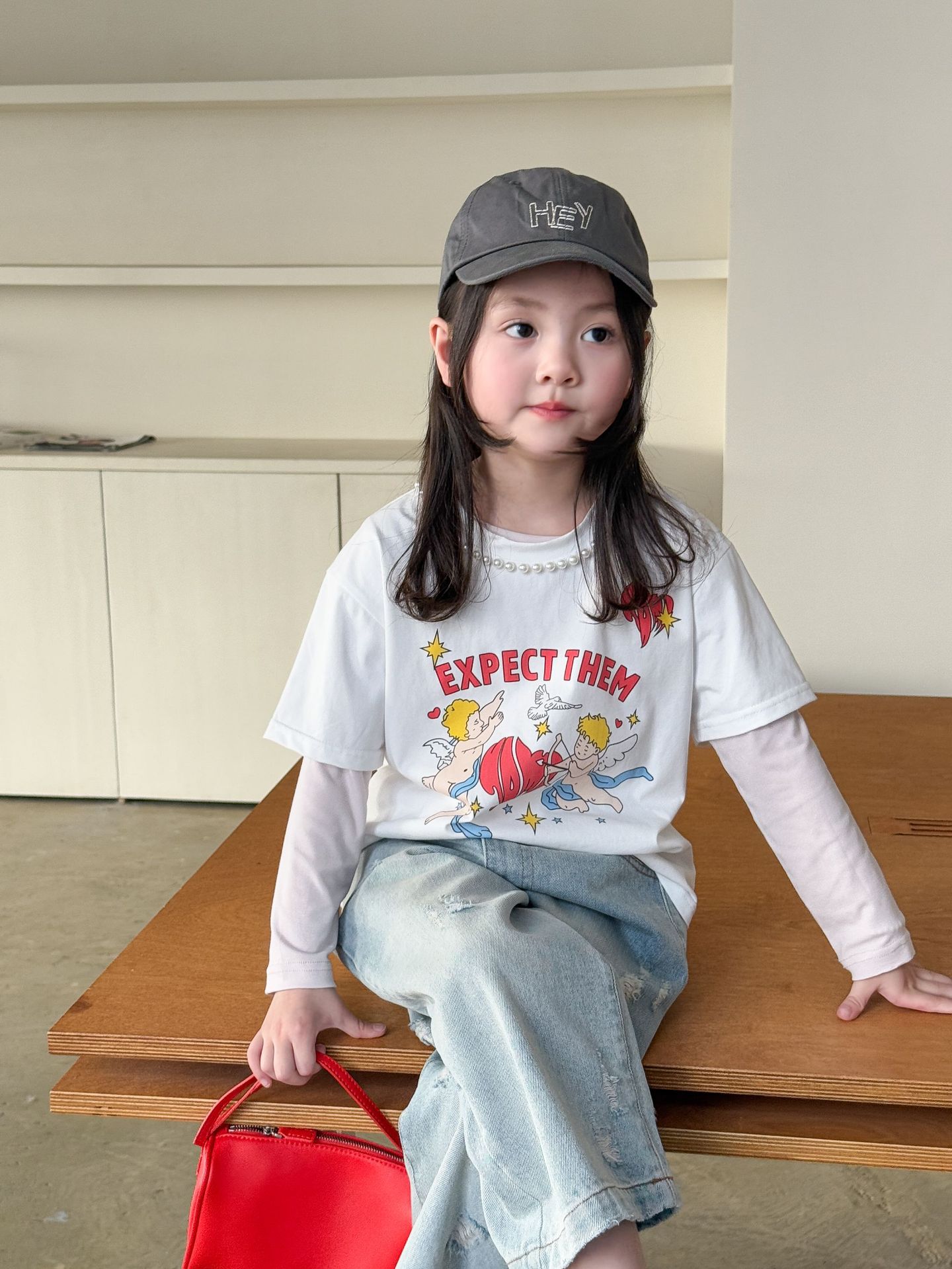 버우드 아동복 소녀베이스 셔츠 2025 봄 새 어린이 한국식 긴팔 티셔츠 근육베이스 옷 아기 옷스토어 가기