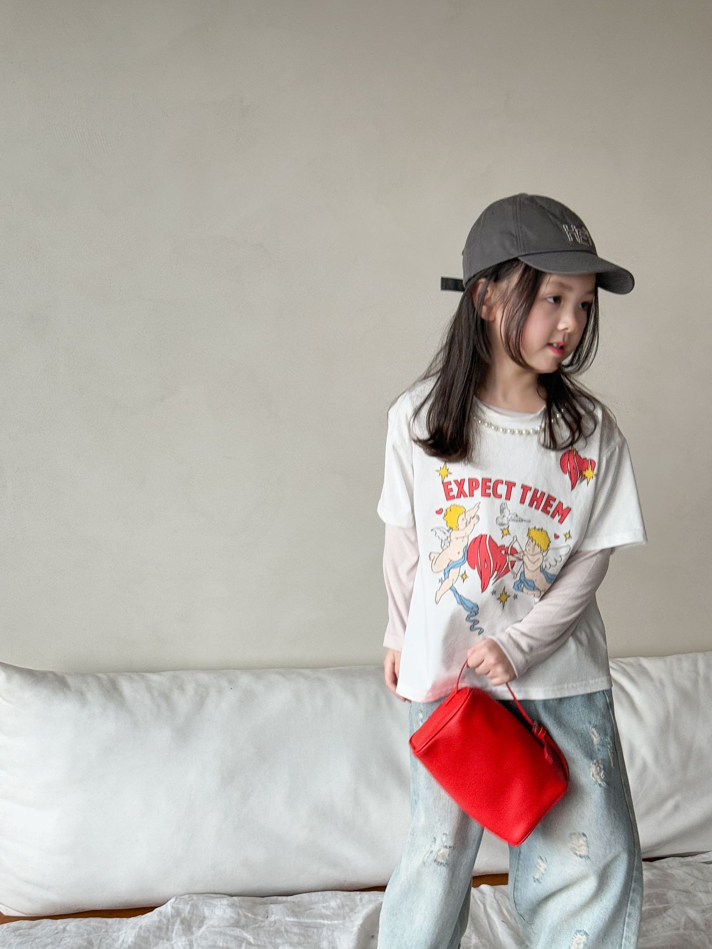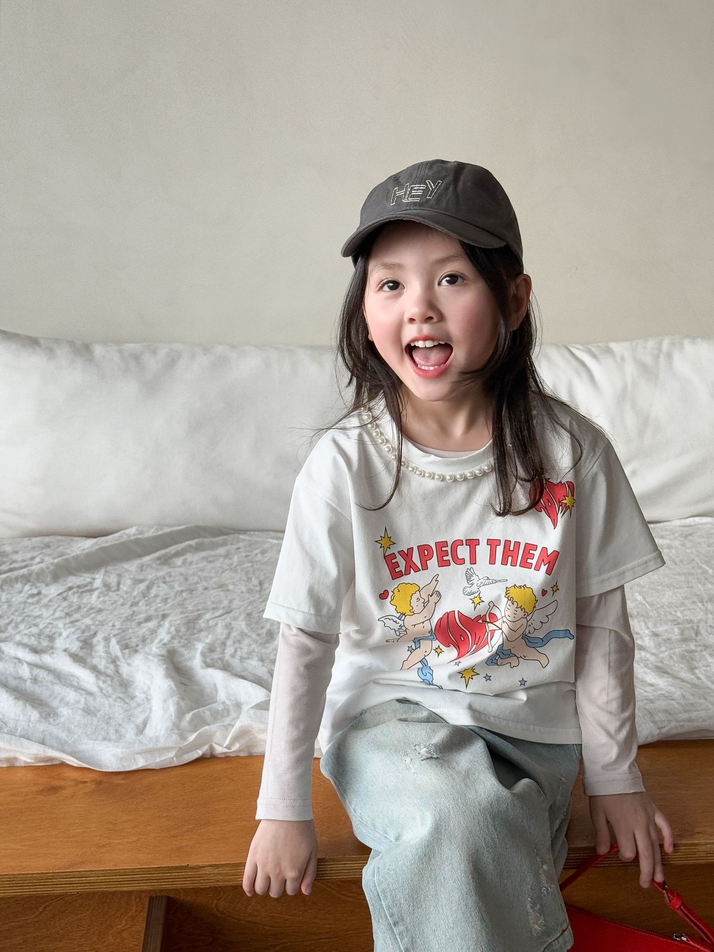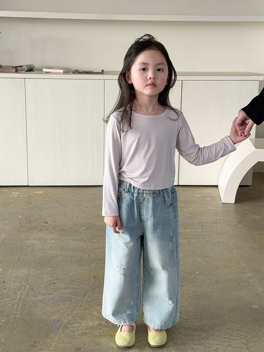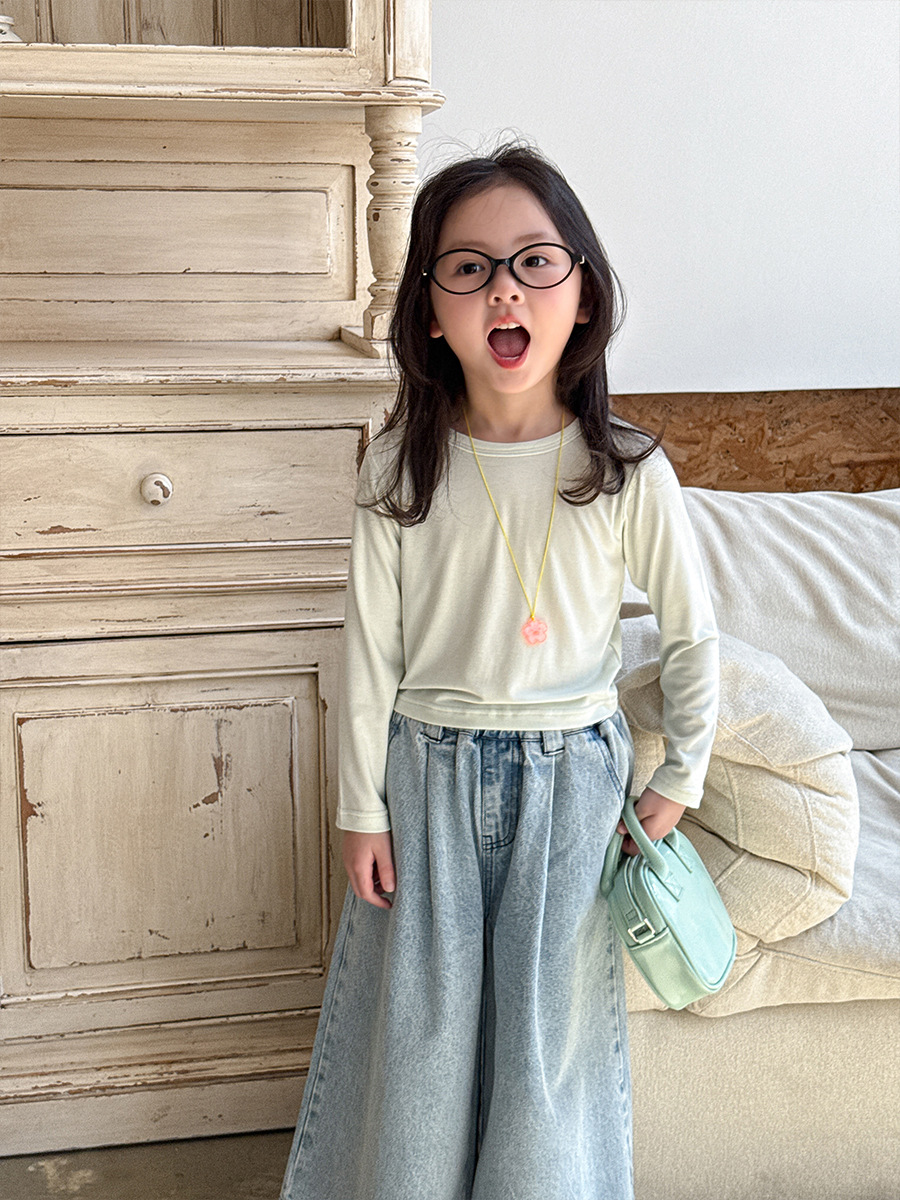 버우드 아동복 소녀베이스 셔츠 2025 봄 새 어린이 한국식 긴팔 티셔츠 근육베이스 옷 아기 옷