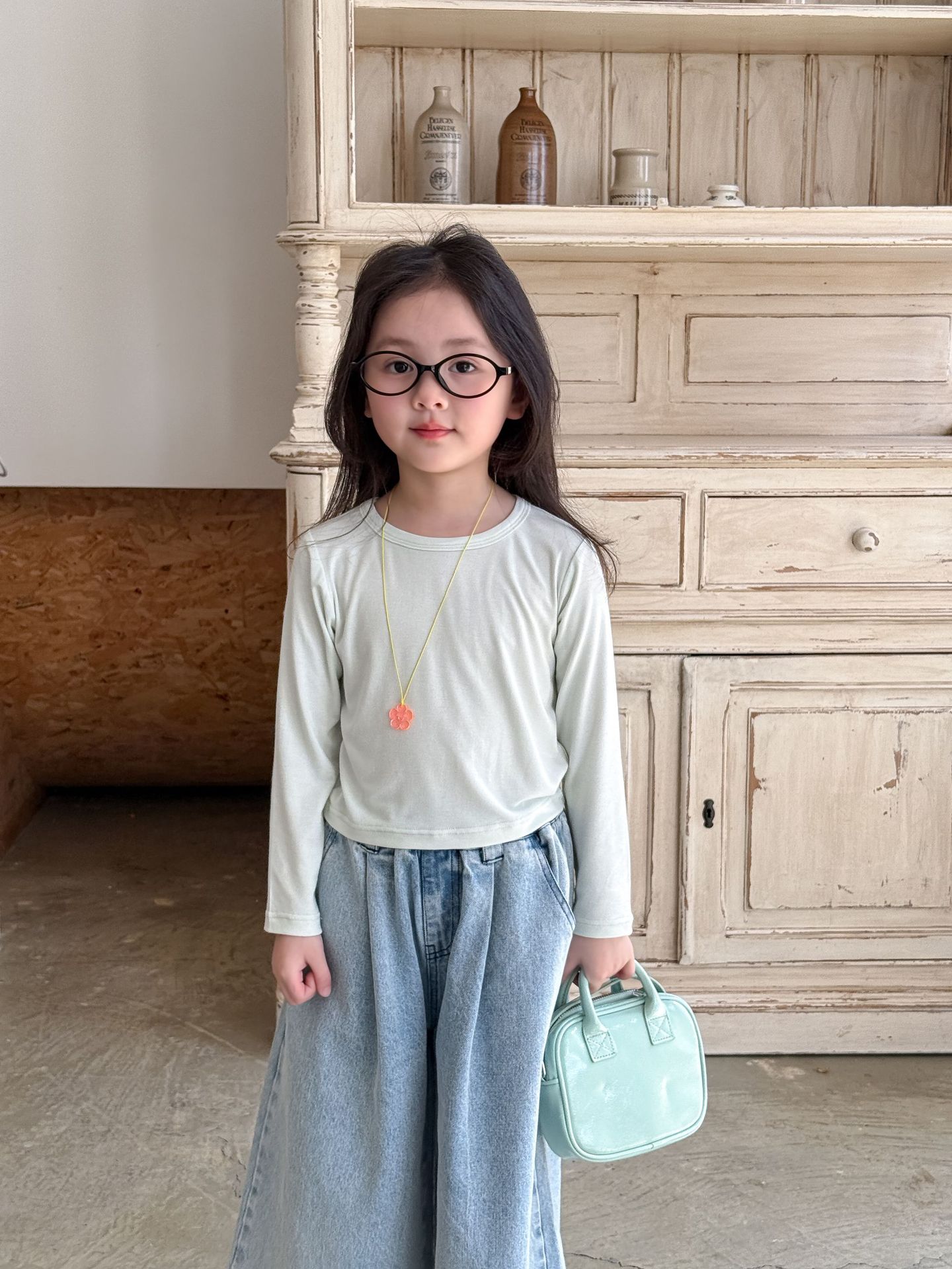 • 민트 그린 바닥 셔츠