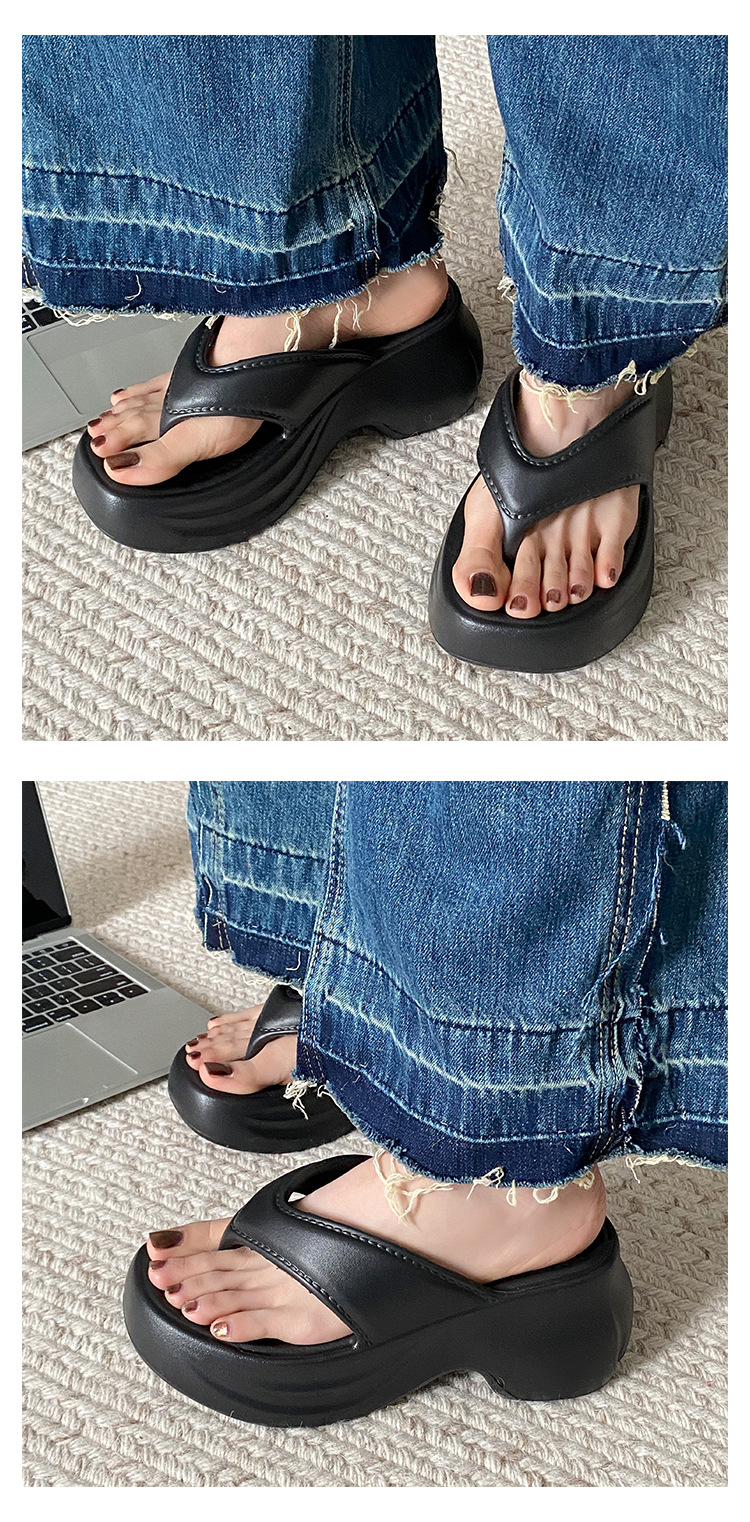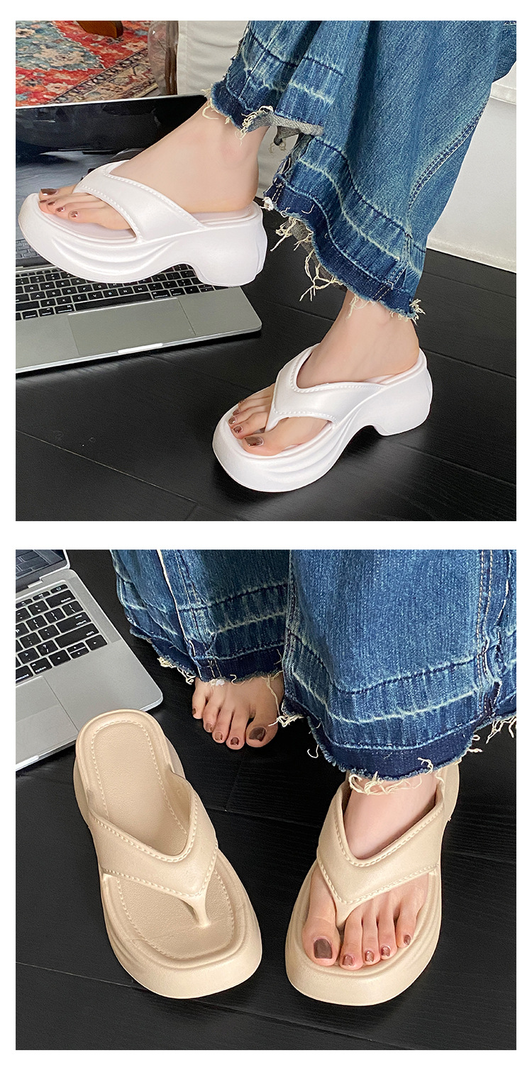 새로운 스타일 클립 플립 플롭 여성 비 슬립 EVA 두꺼운 하단 유행 웨지 힐 하이드 비치 샌들 여름 크로스 보더 웨어