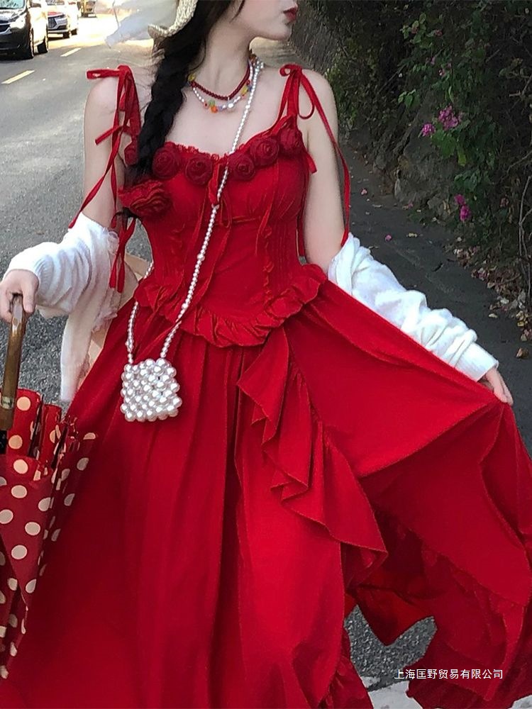 니치 스트랩 불규칙한 휴일 스타일에 대한 신선한 모리 여성의 순수한 욕망 긴 원피스 여름 2025 새로운스토어 가기