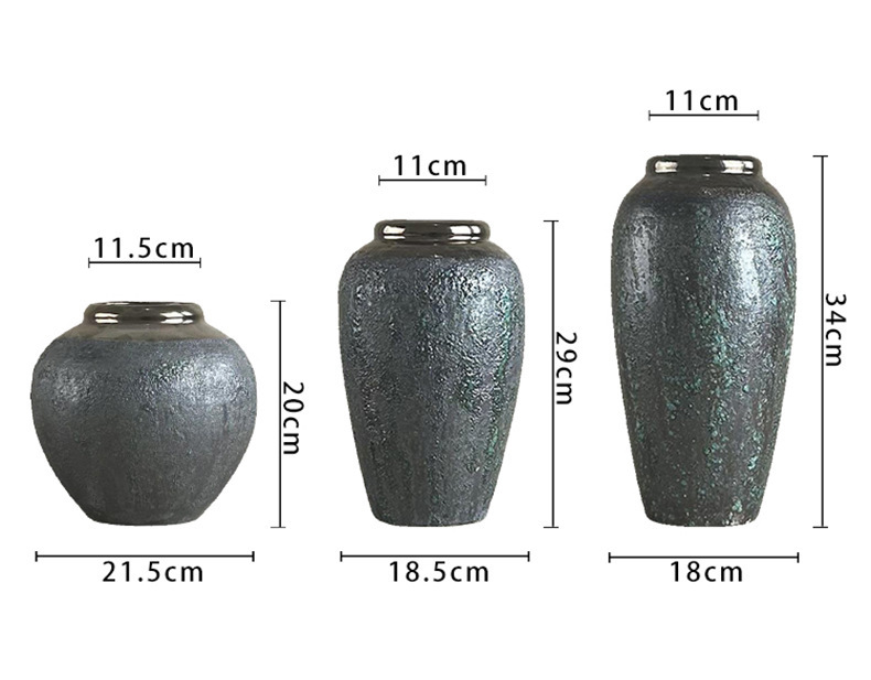 꽃병 세라믹 빈티지 중국 스타일의 거친 도자기 가구 거실 말린 꽃 장식품 간단한 수제 도자기 냄비 세라믹 아트 장식