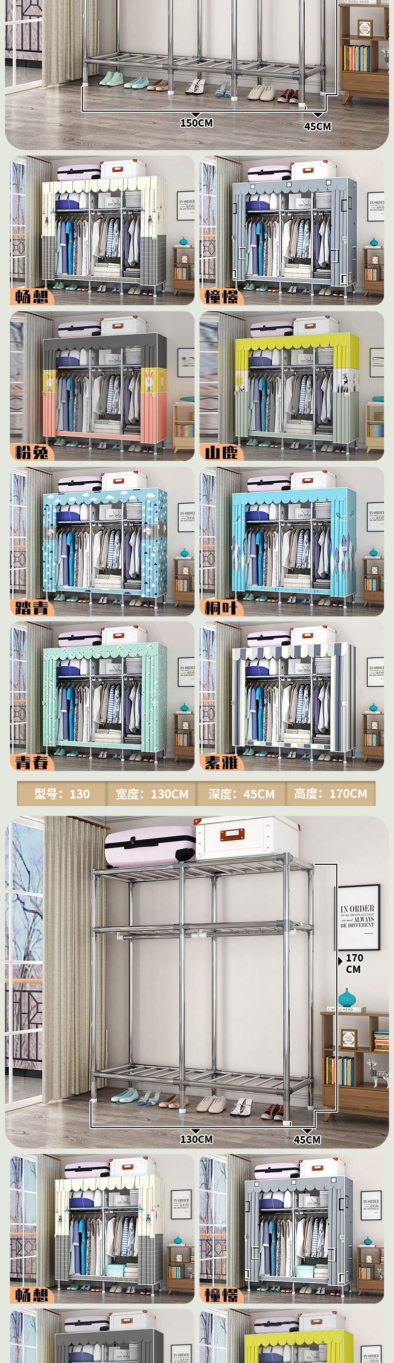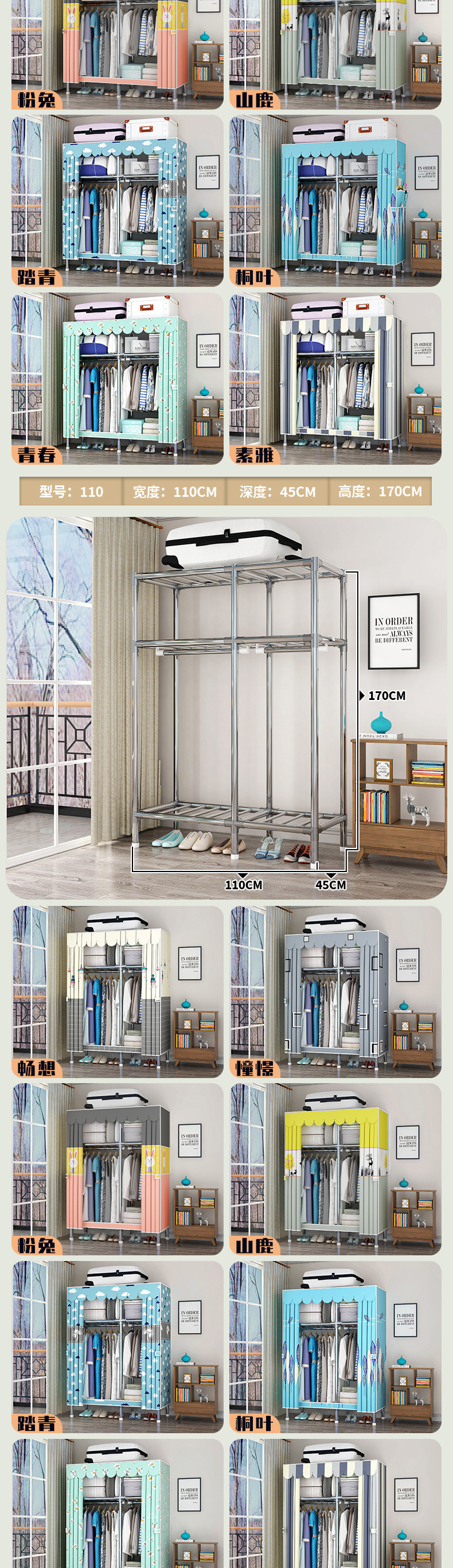 가정용 천 옷장 가정용 침실 조립 보관 캐비닛 강관 두꺼운 강화 옷장 교수형 옷장스토어 가기