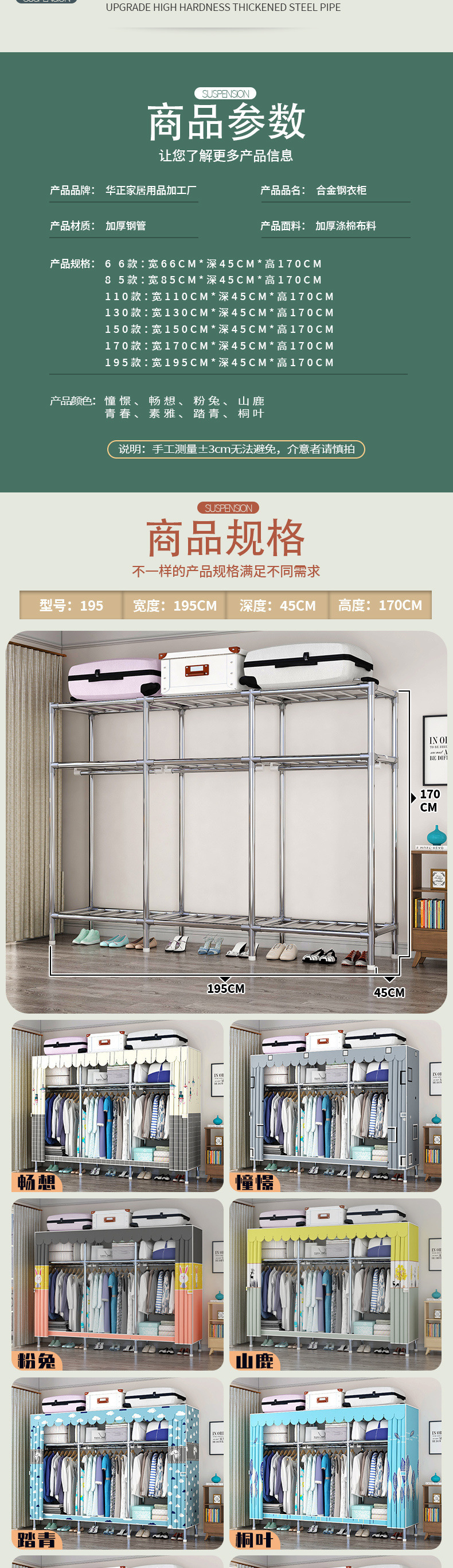 가정용 천 옷장 가정용 침실 조립 보관 캐비닛 강관 두꺼운 강화 옷장 교수형 옷장