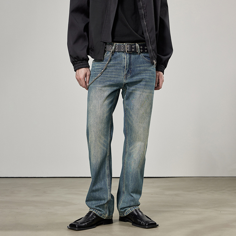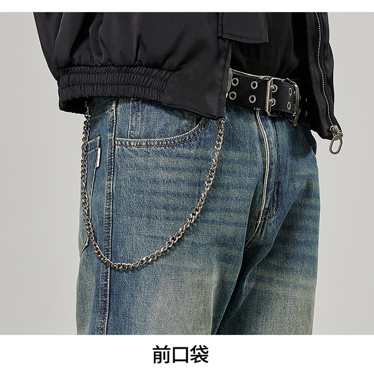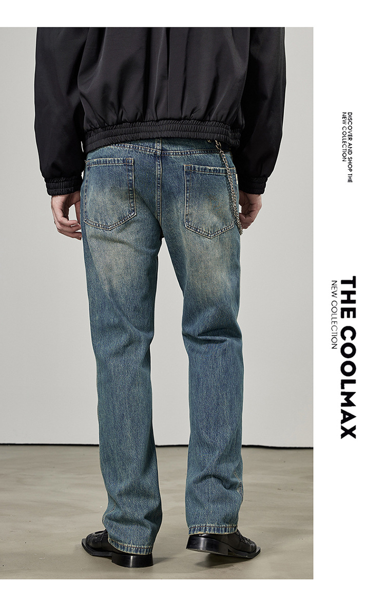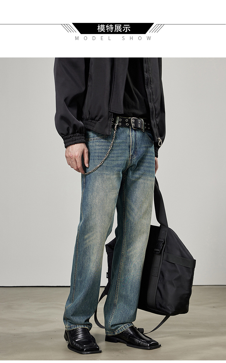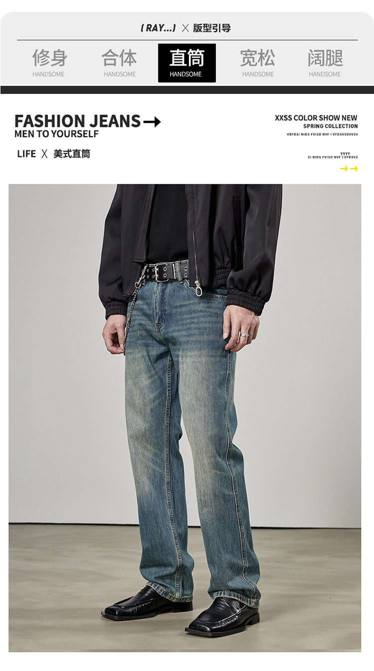 아메리칸 스타일 와이드 레그 청바지 남성용 2025 빈티지 스트레이트 루즈 바느질 세탁 사용 바지스토어 가기
