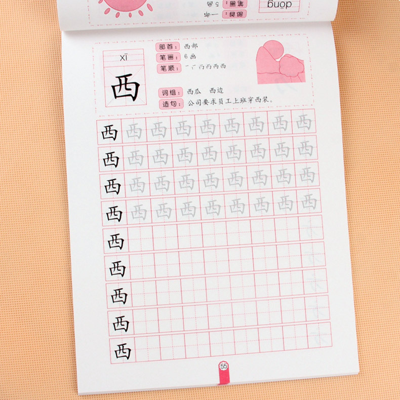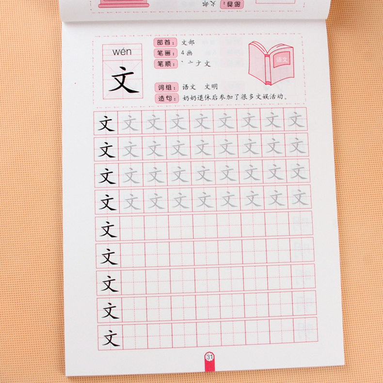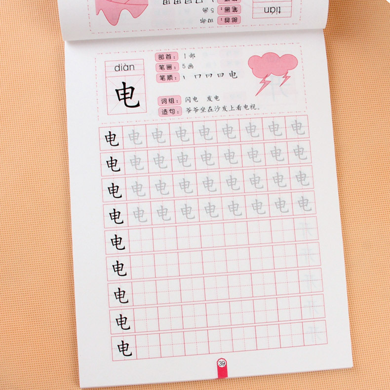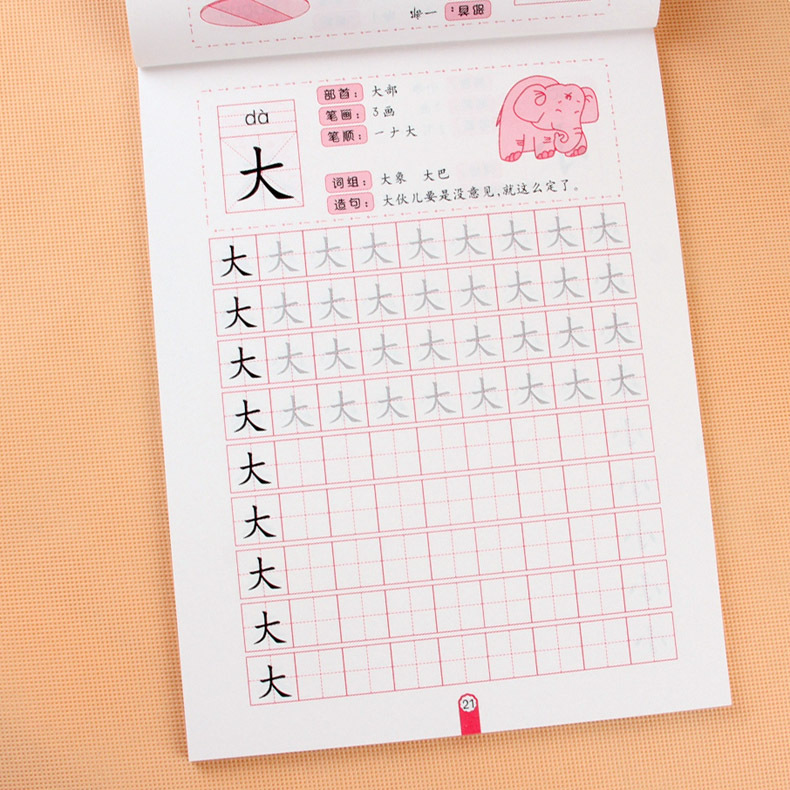 어린이 한자 빨간 책 초등 학교 학생 1 학년 연습 카피 북 연습 3-5-6-7 세 바오 치 멩 쓰기 학습