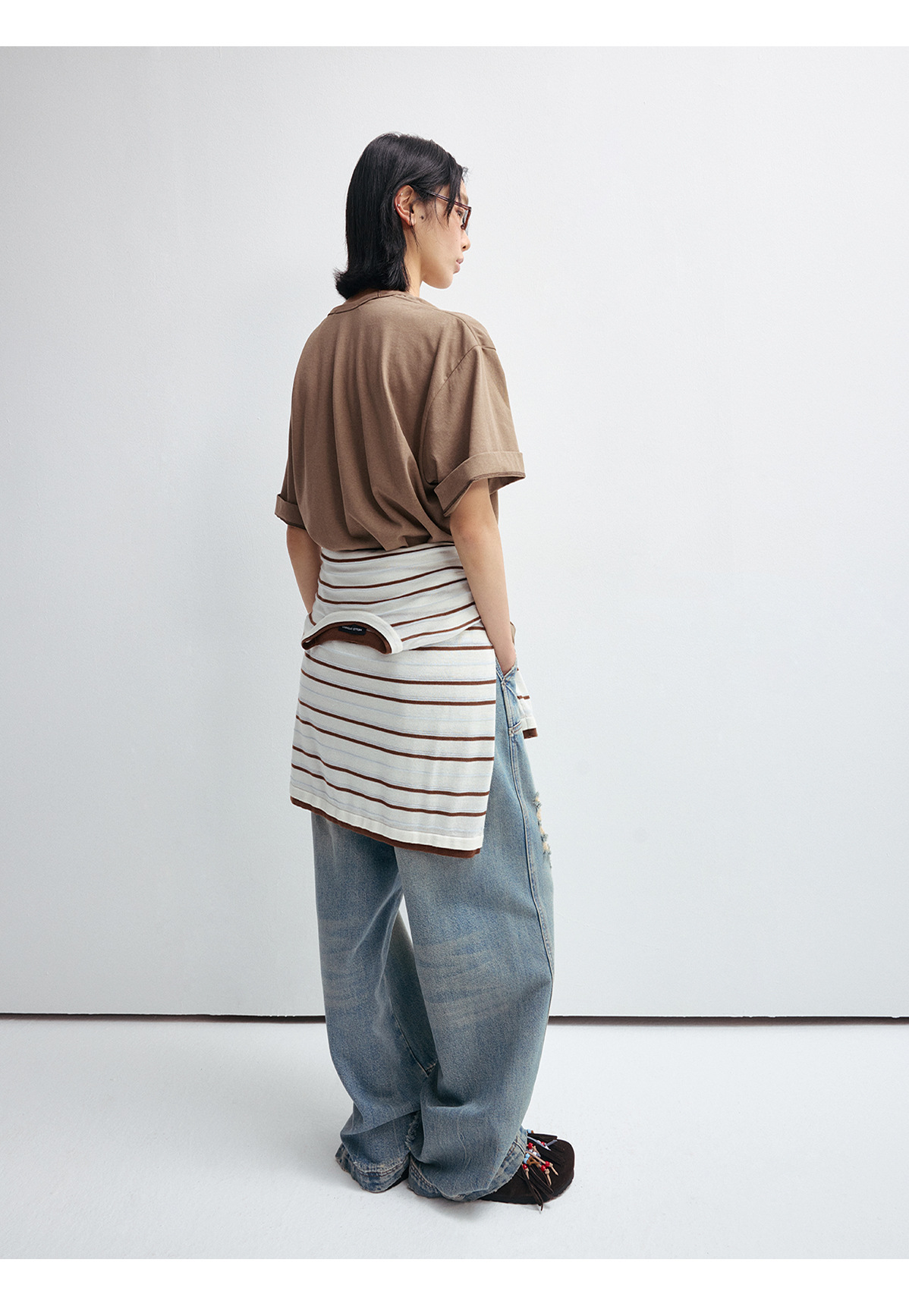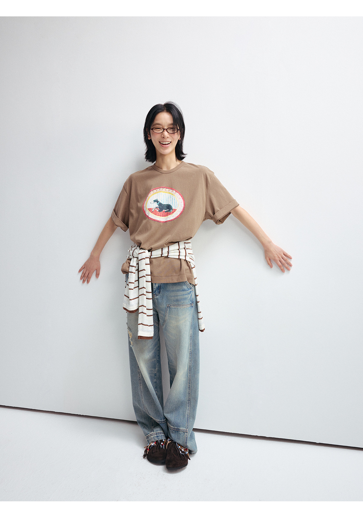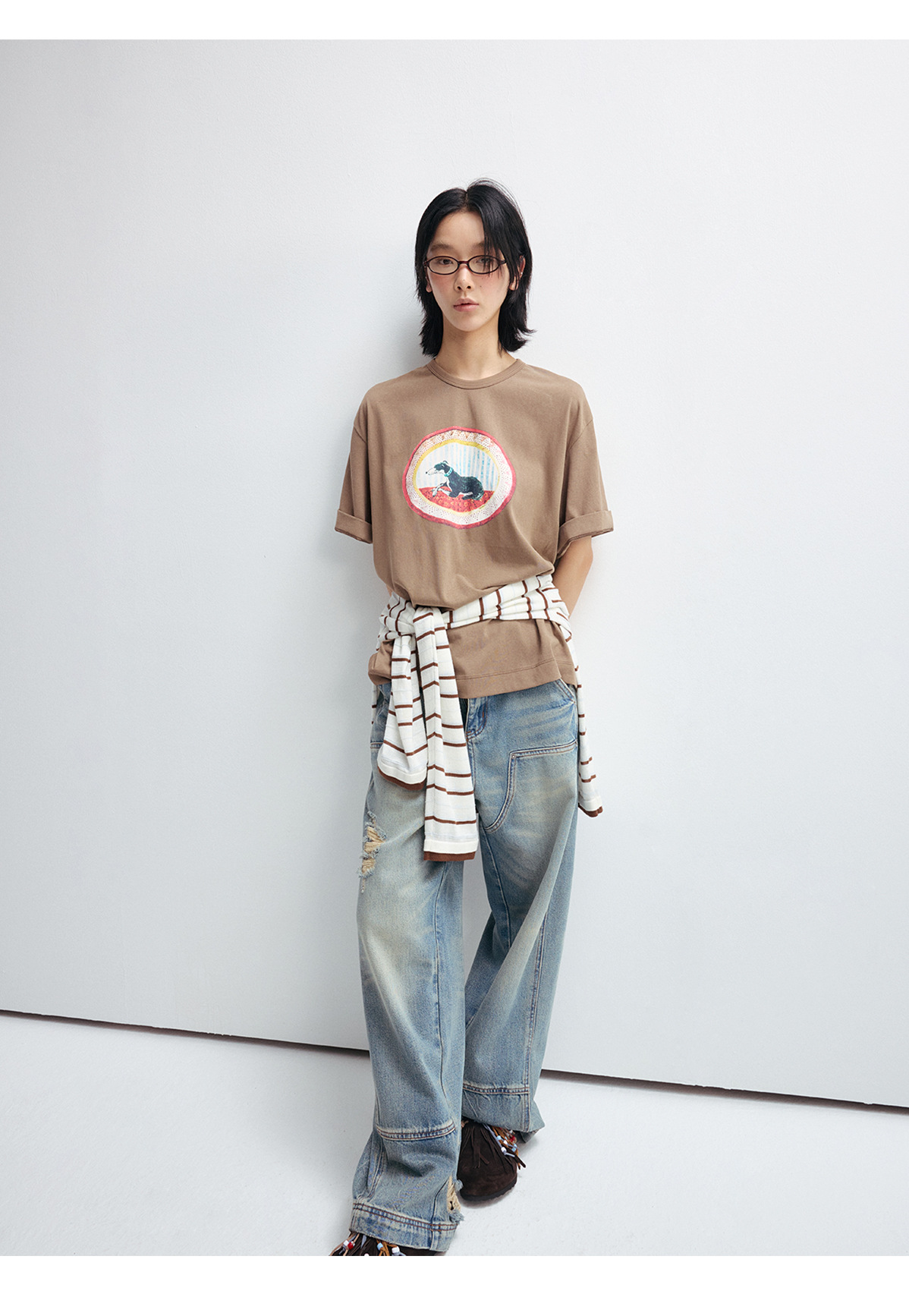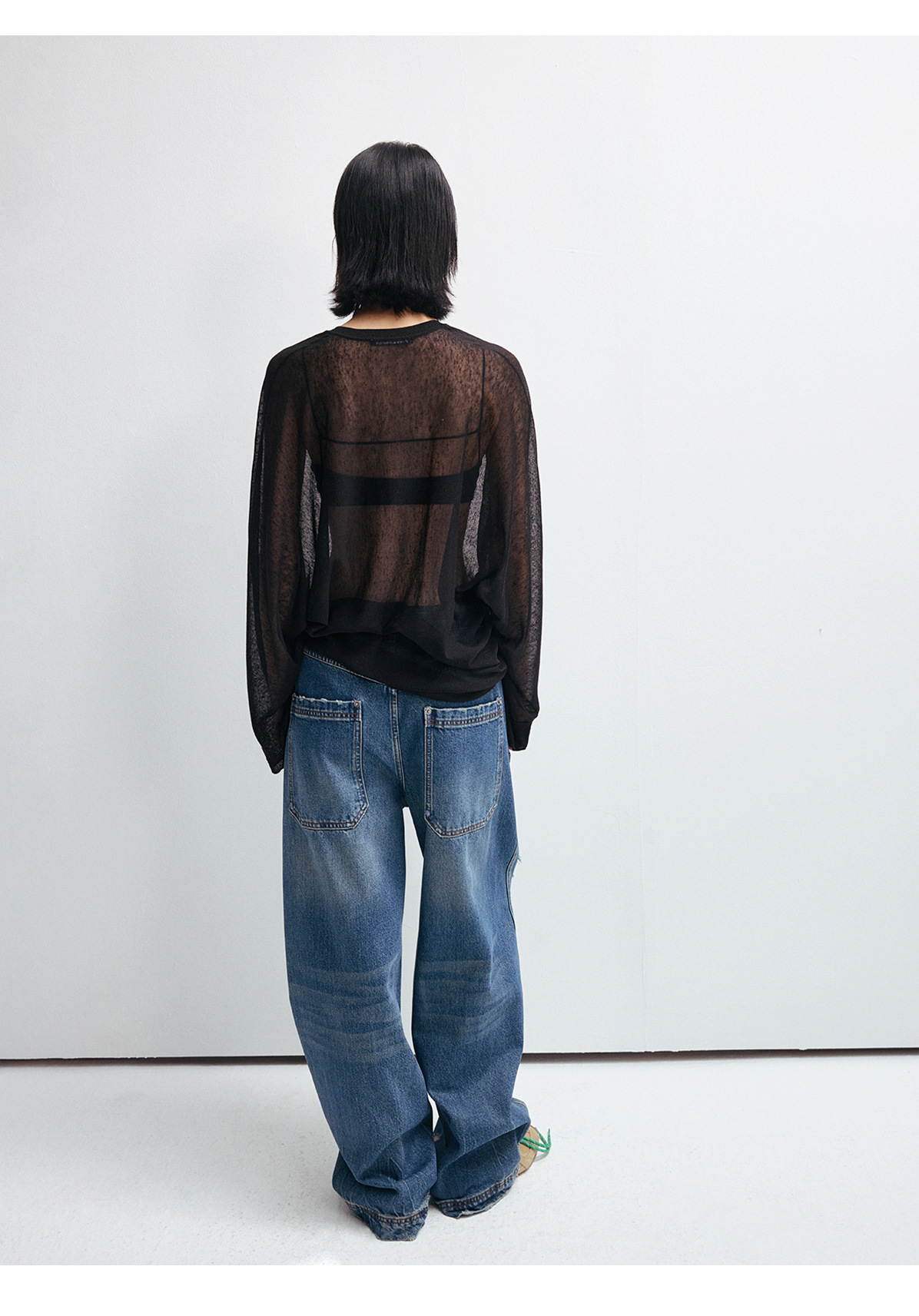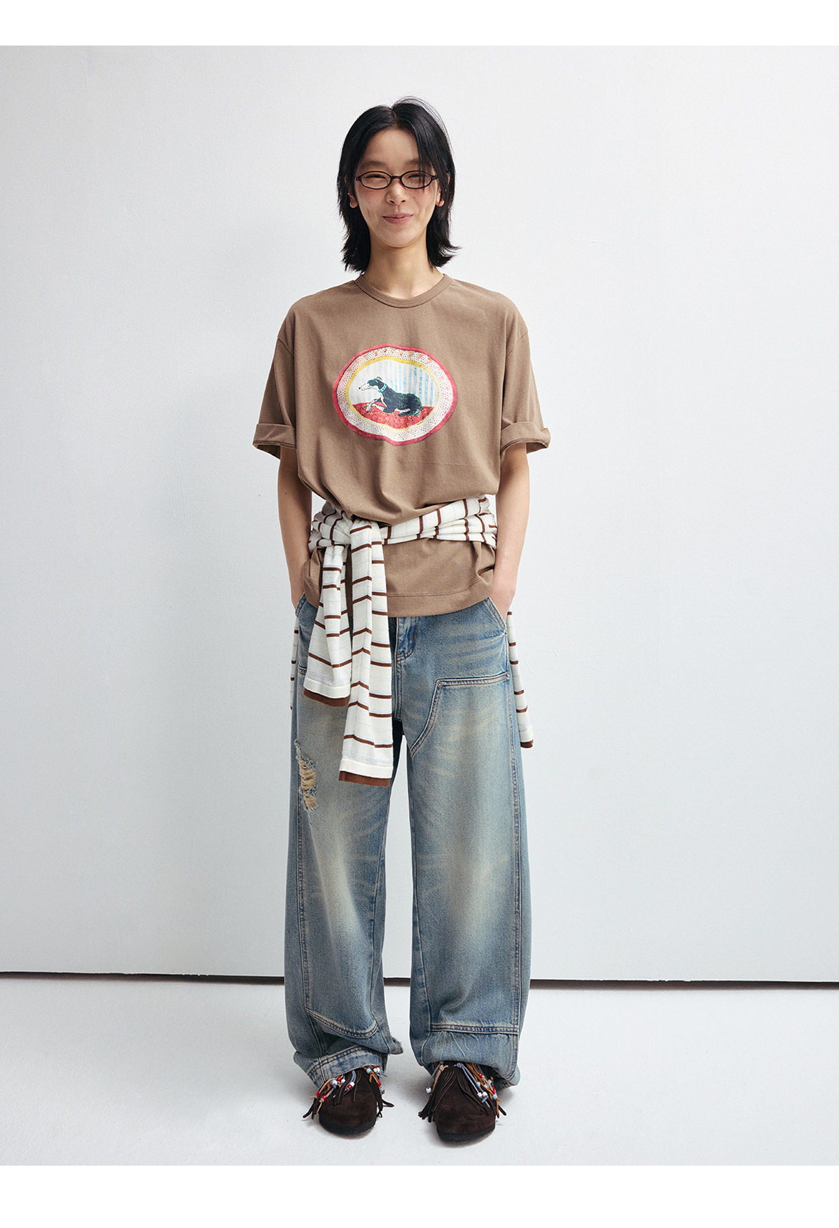 [시시] 신상 블루 터키석 버클 벌커 스타일 루즈핏 롱 팬츠 텐셀 데미지 디테일 미드로우 웨이스트 데님 팬츠 V8276