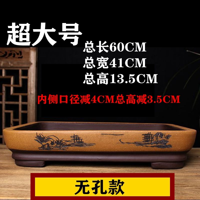 Zisha 암석 분지 초대형 직사각형 비 다공성 흡수성 돌 분지 꽃 녹색 심기 오래된 더미 구멍 분지 프로모션 무료 배송