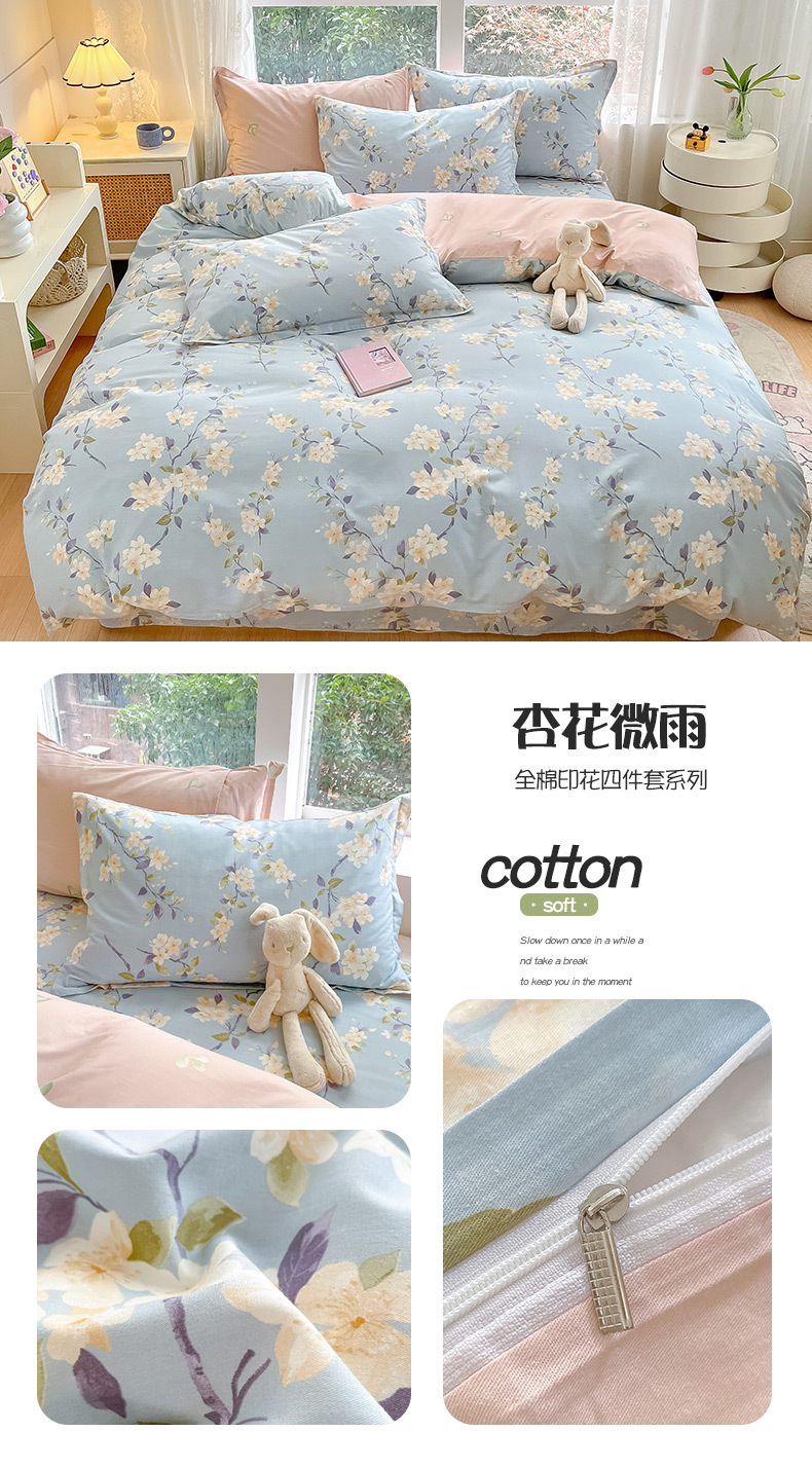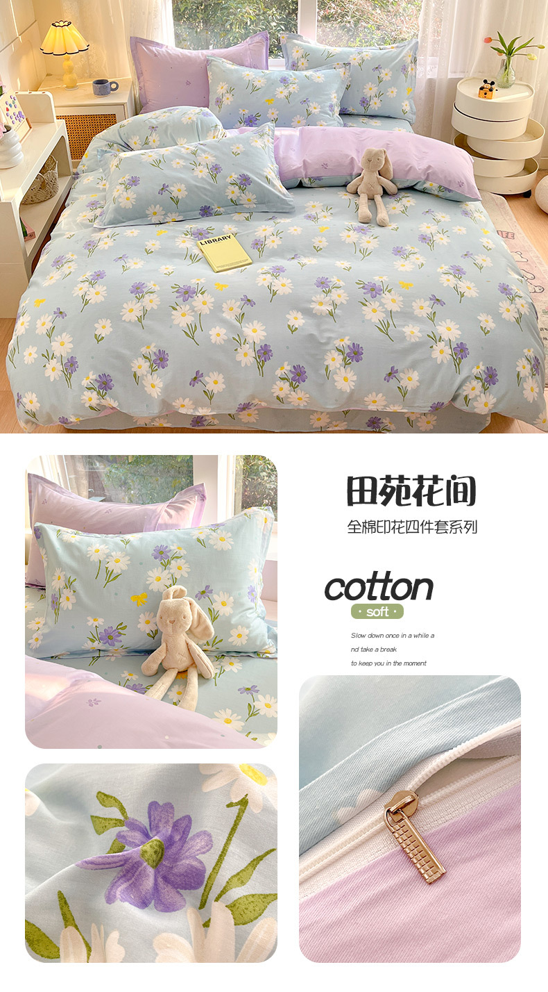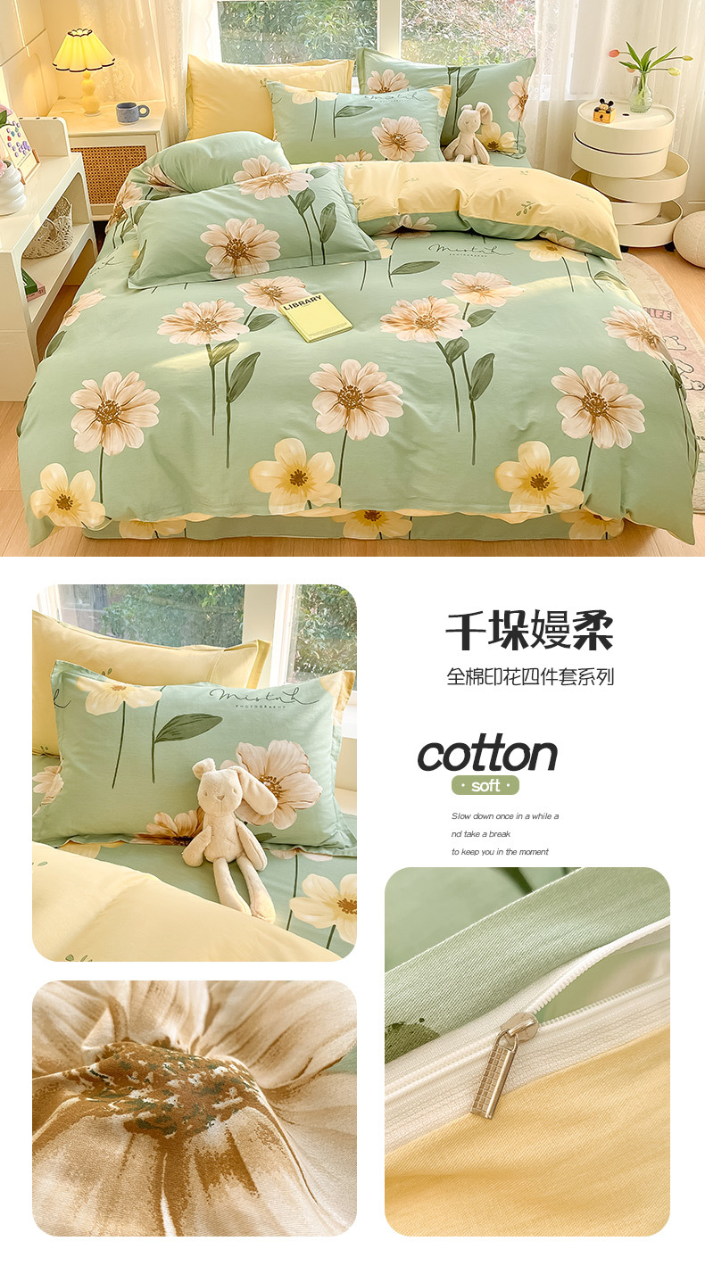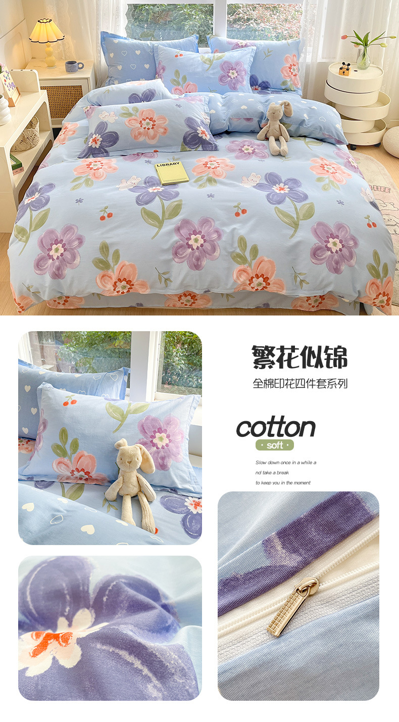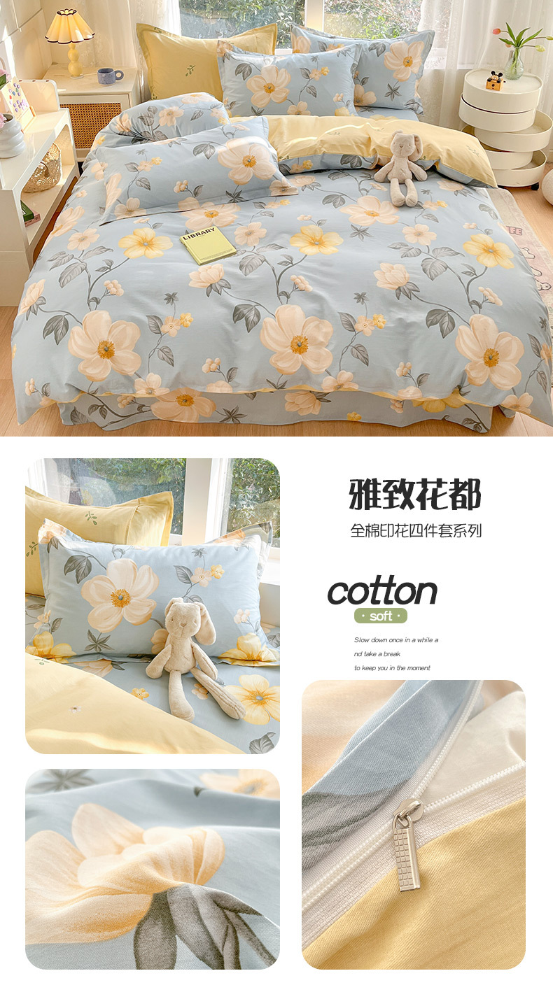순면 4 피스 세트 Nantong 침대 시트 퀼트 커버면 3 피스 세트 침구 모성 및 유아 고급 느낌 침대 모자 버전스토어 가기