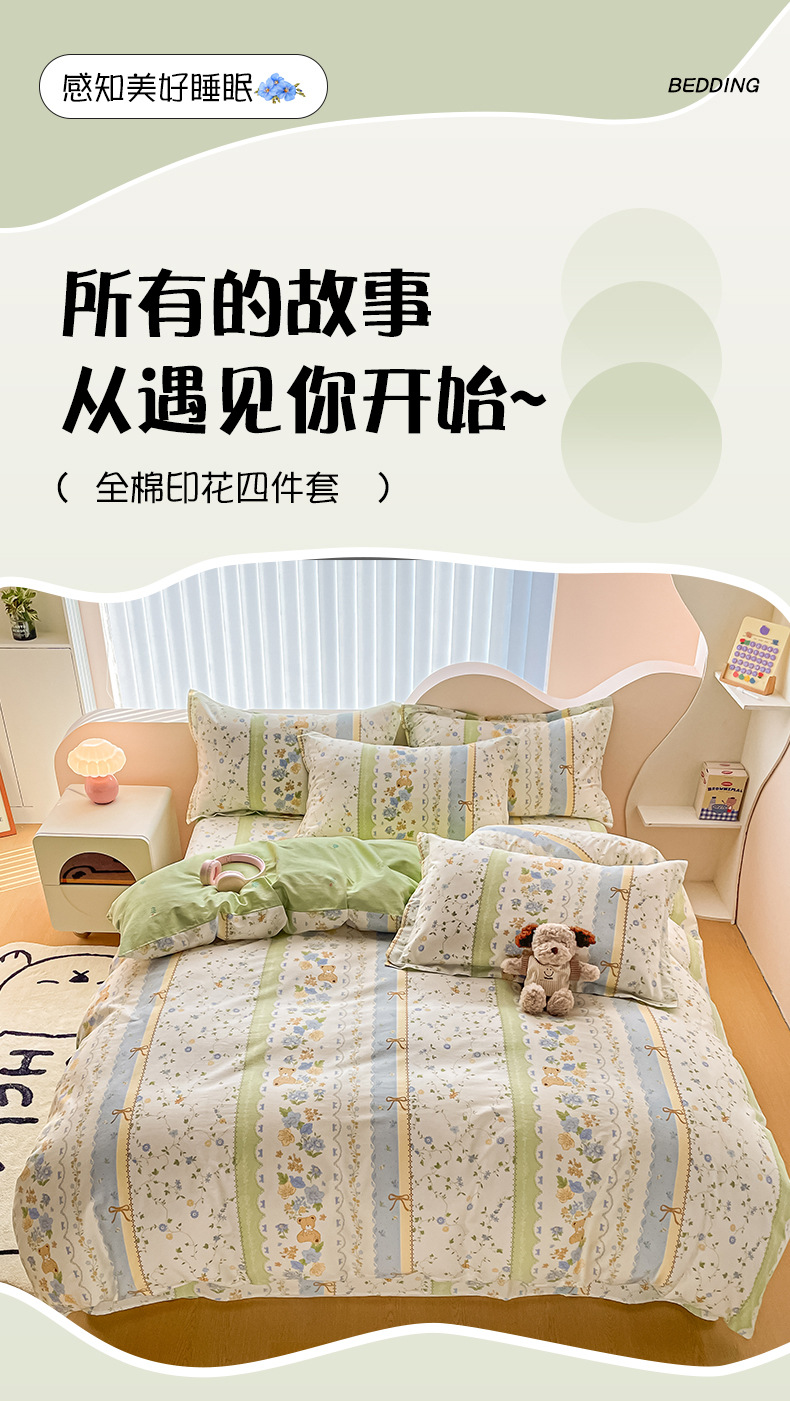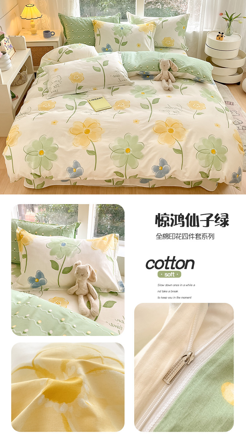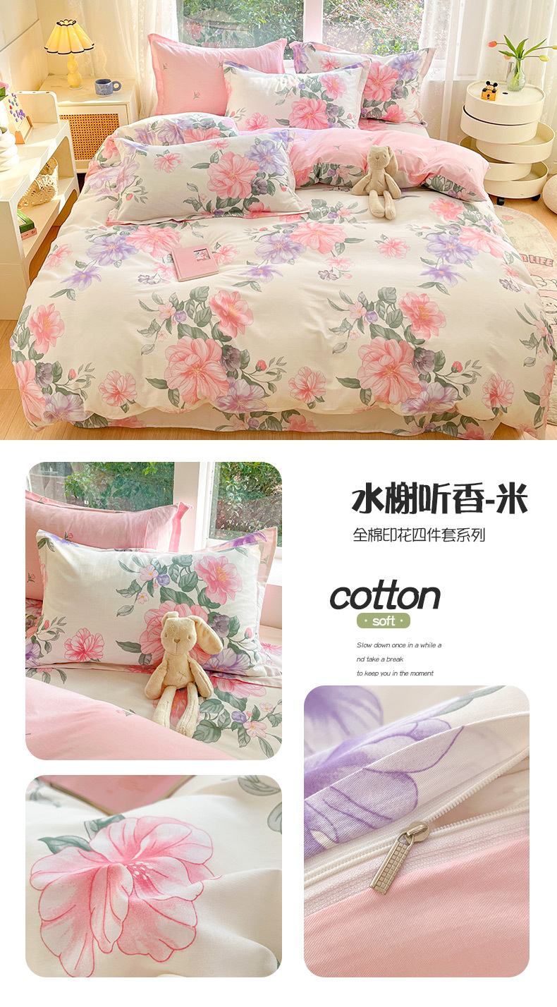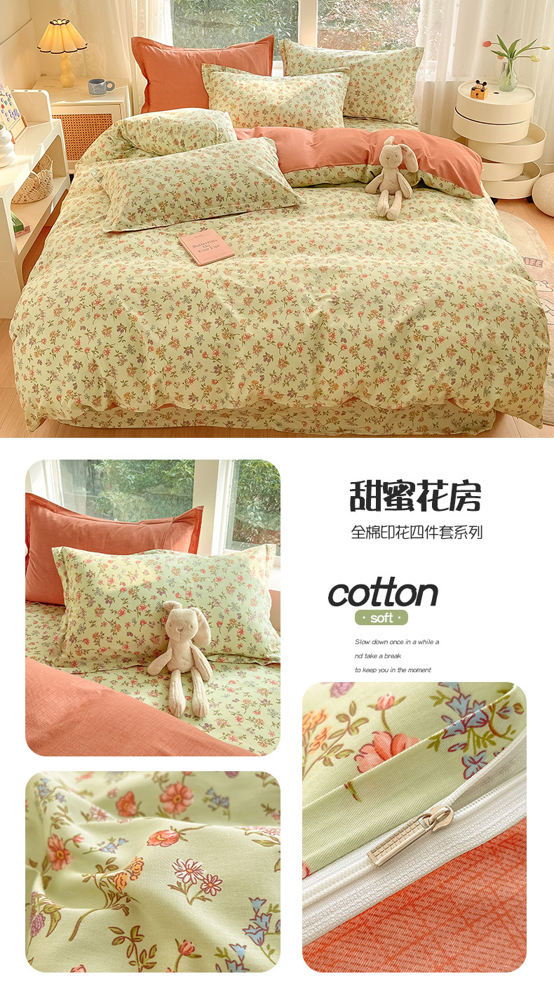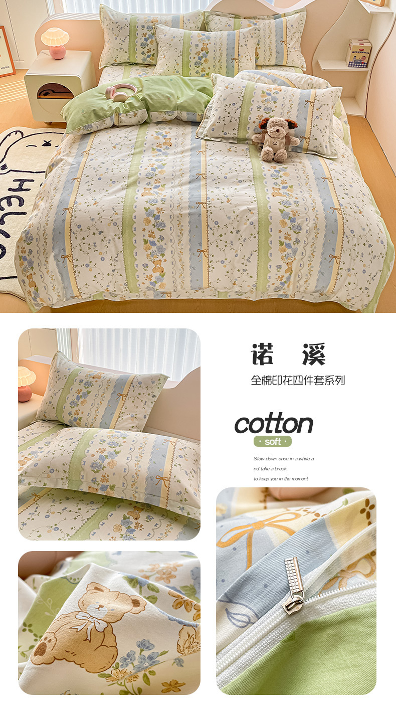 순면 4 피스 세트 Nantong 침대 시트 퀼트 커버면 3 피스 세트 침구 모성 및 유아 고급 느낌 침대 모자 버전스토어 가기