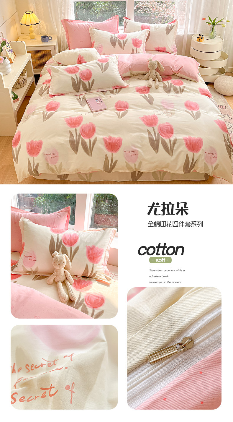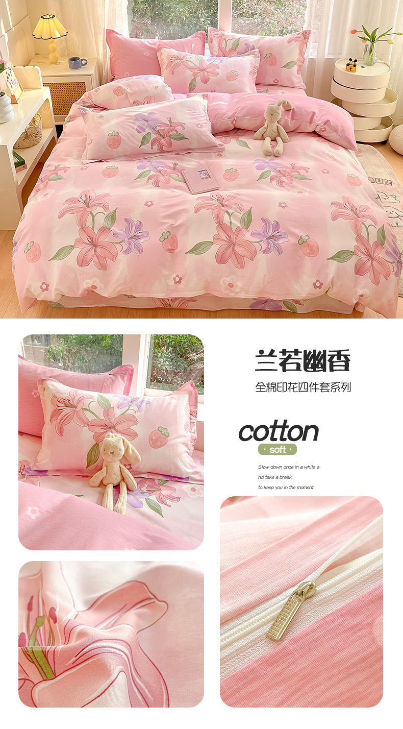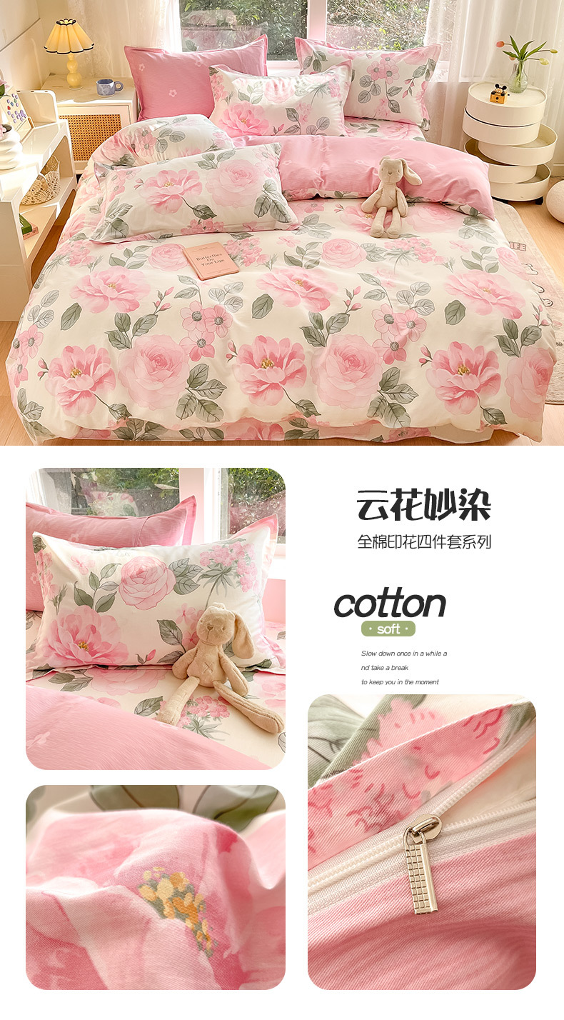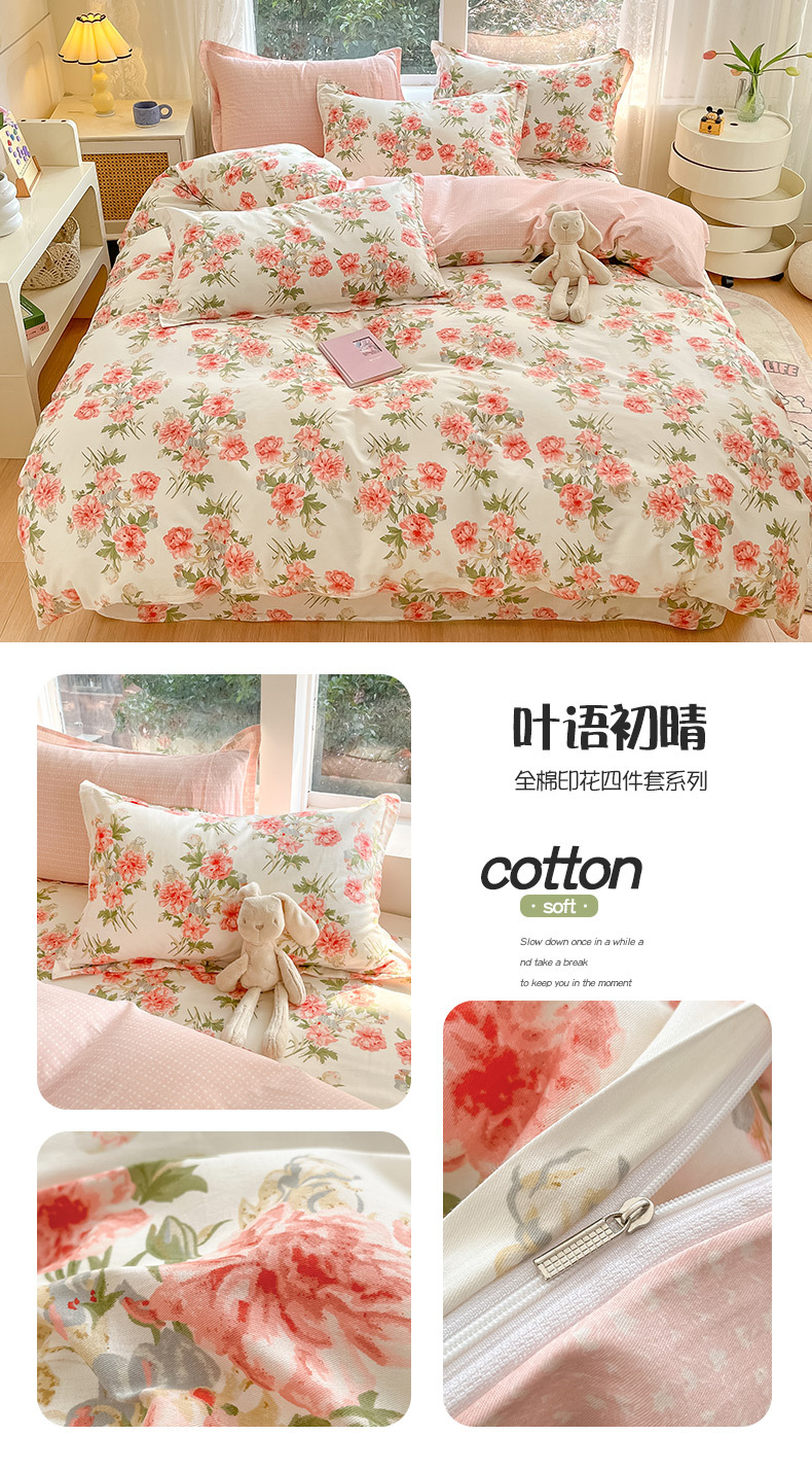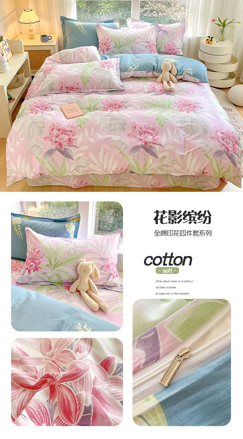 순면 4 피스 세트 Nantong 침대 시트 퀼트 커버면 3 피스 세트 침구 모성 및 유아 고급 느낌 침대 모자 버전스토어 가기