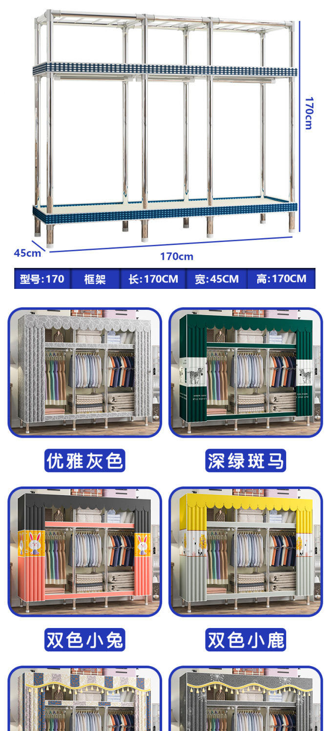 간단한 천 옷장 강철 파이프 두꺼운 강화 옷장 가정용 침실 조립 옷장 보관 랙