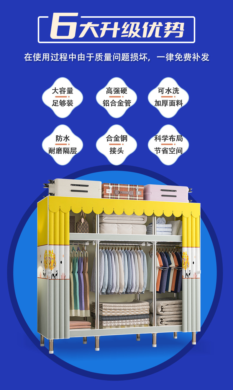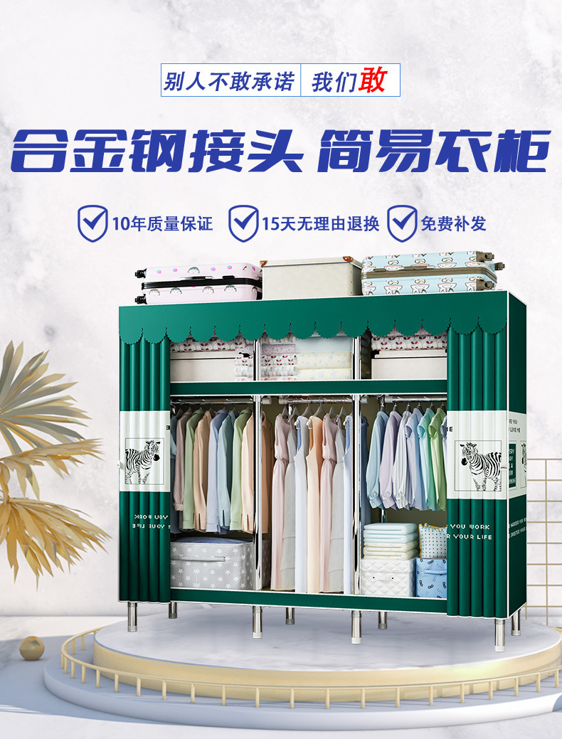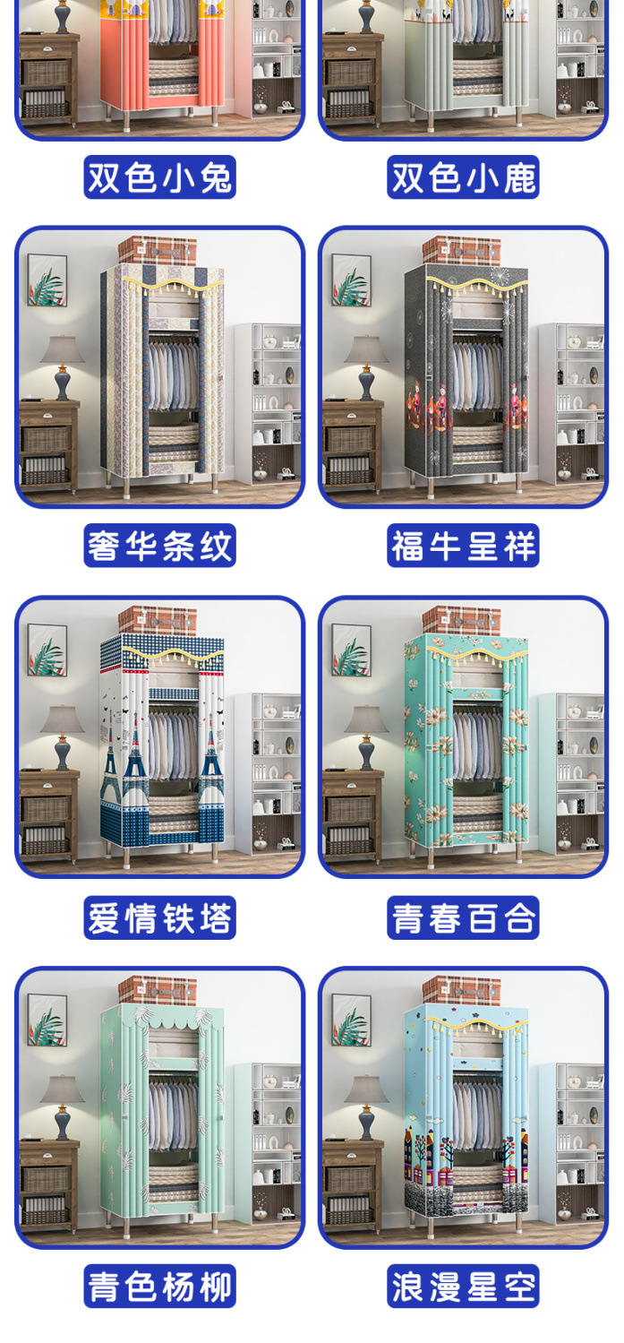 간단한 천 옷장 강철 파이프 두꺼운 강화 옷장 가정용 침실 조립 옷장 보관 랙스토어 가기
