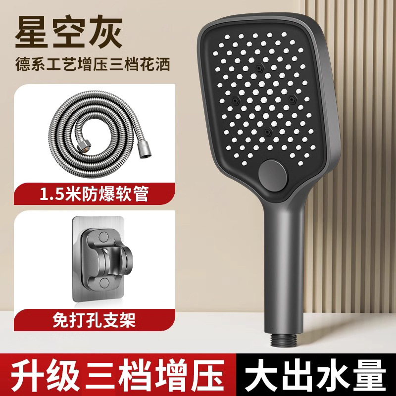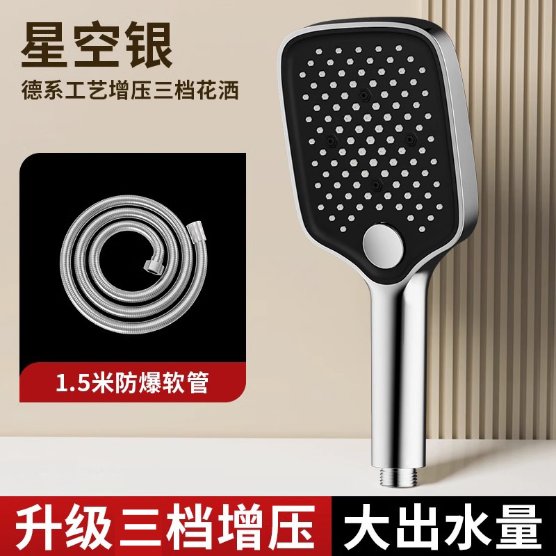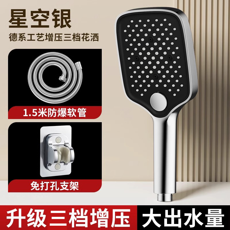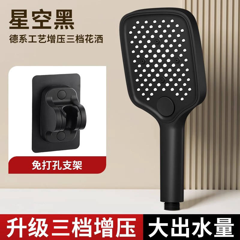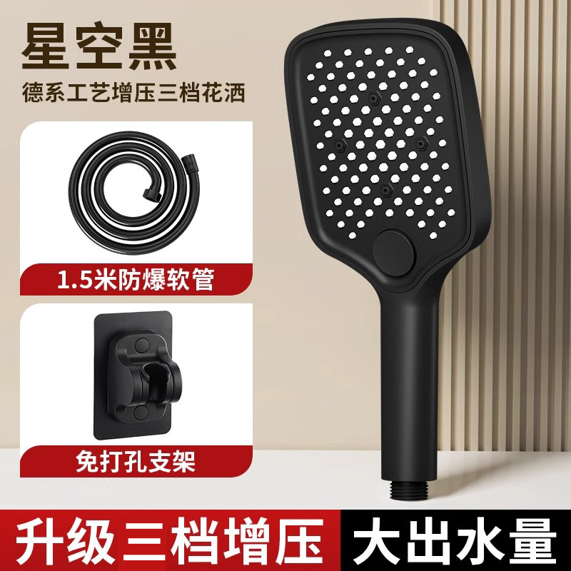 • [블랙] 사각 3단 눈송이 슈퍼차저 핸드헬드 + 1.5m 샤워파이프 + 샤워홀더