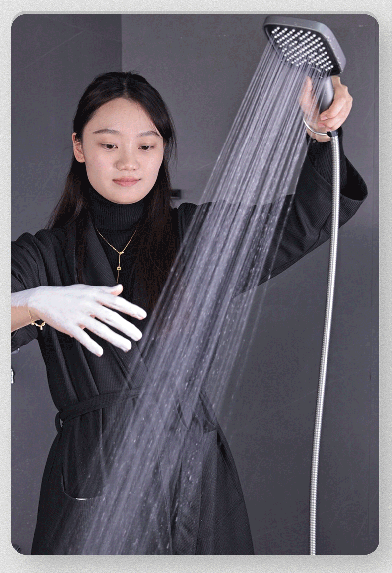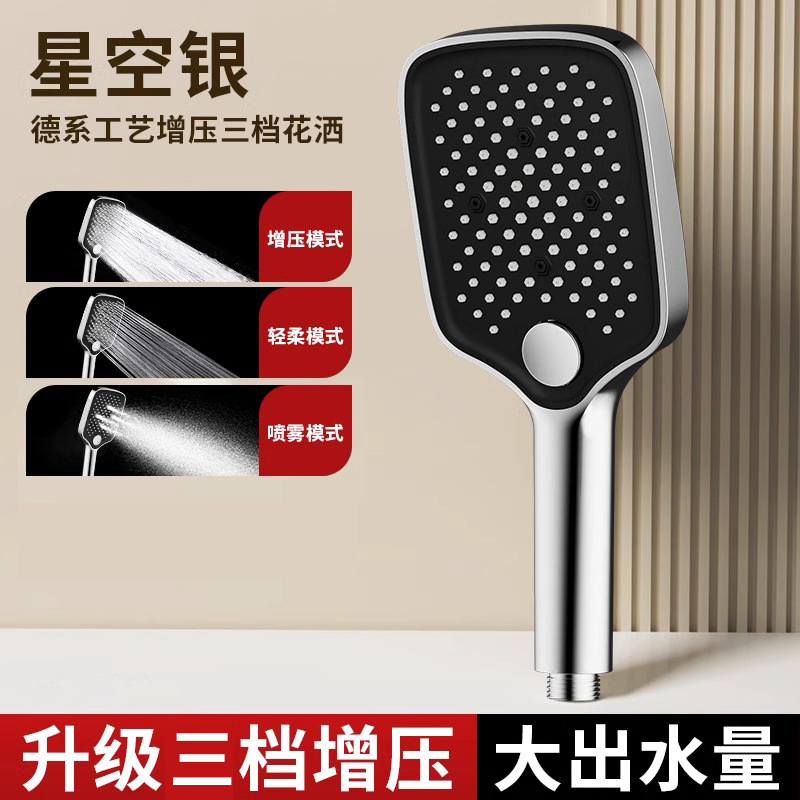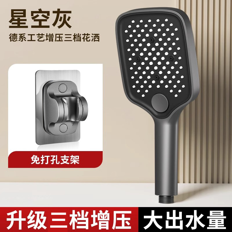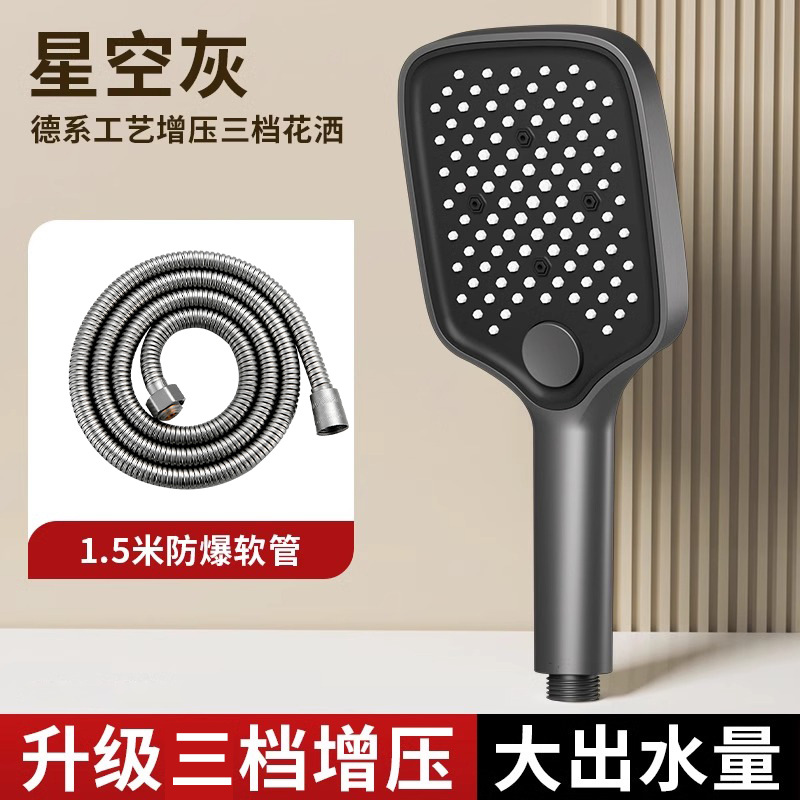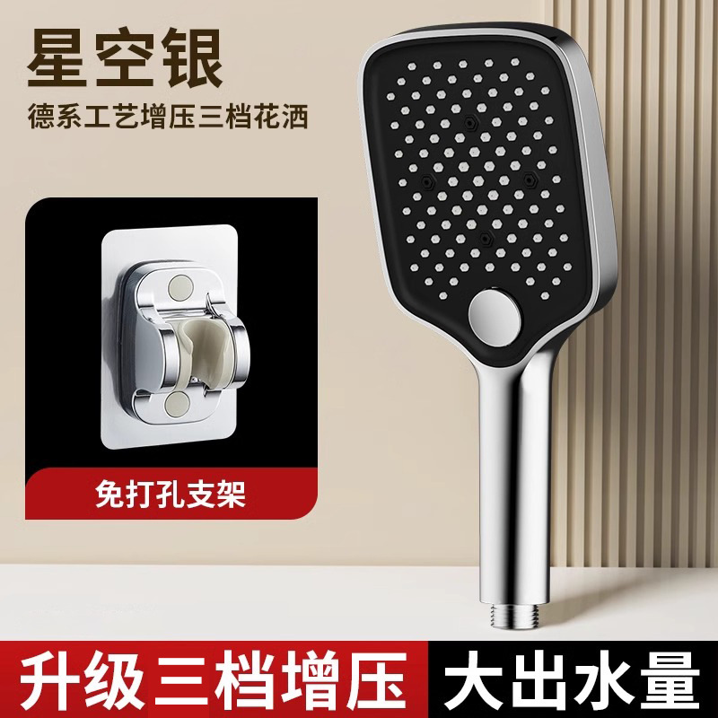 • [블랙] 사각 3단 눈송이 슈퍼차저 핸드헬드 + 1.5m 샤워파이프 + 샤워홀더