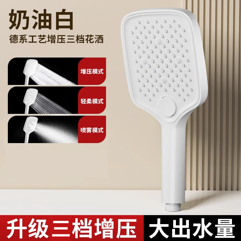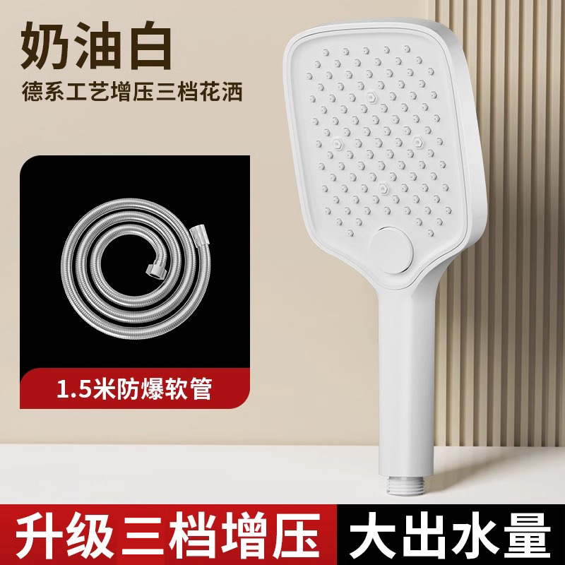 • [화이트] 사각 3단 눈송이 슈퍼차저 핸드헬드 + 1.5m 샤워파이프