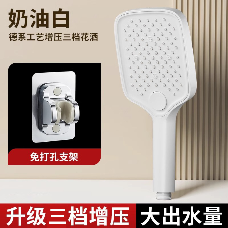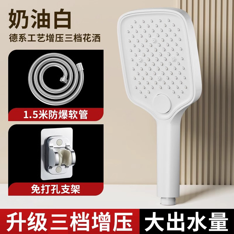 • [화이트] 사각 3단 눈송이 부스터 핸드헬드 + 1.5m 샤워파이프 + 샤워홀더
