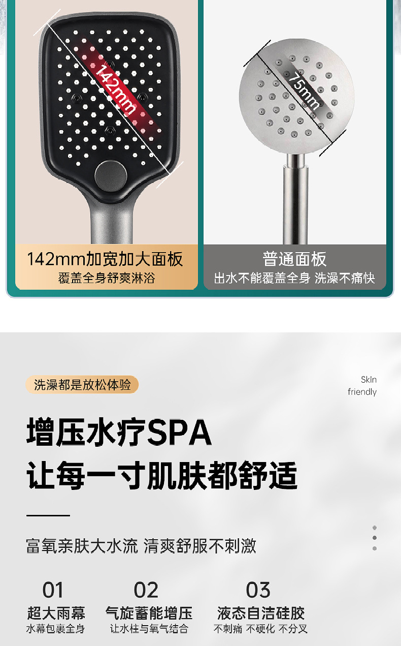 광장 가압 샤워 헤드 수도꼭지 욕실 비 샤워 욕조 온수기 휴대용 압축 샤워 헤드