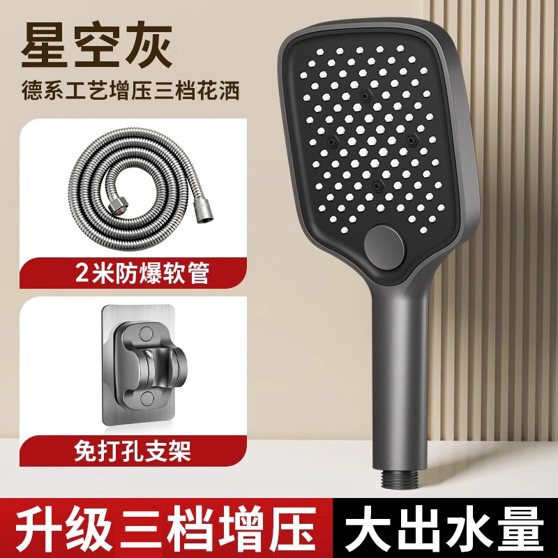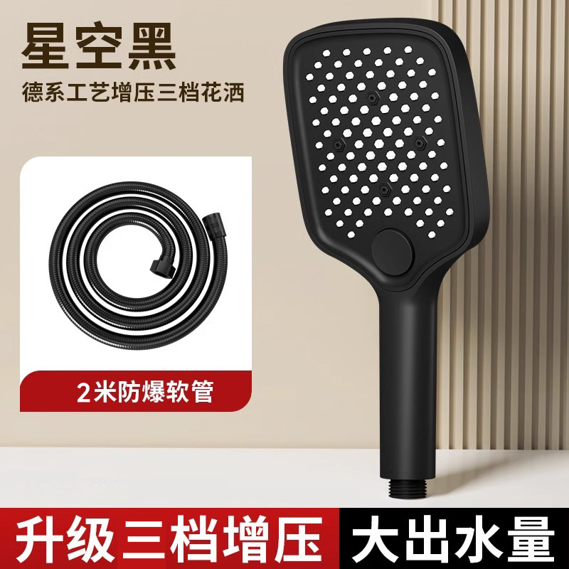 • [블랙] 사각 3단 눈송이 슈퍼차저 핸드헬드 + 2m 샤워파이프 + 샤워홀더