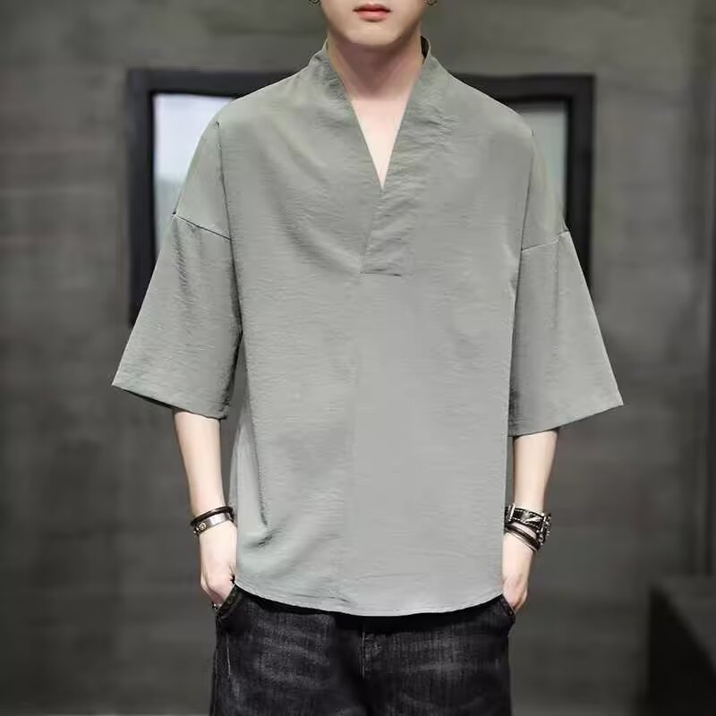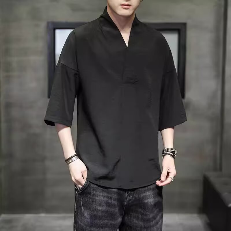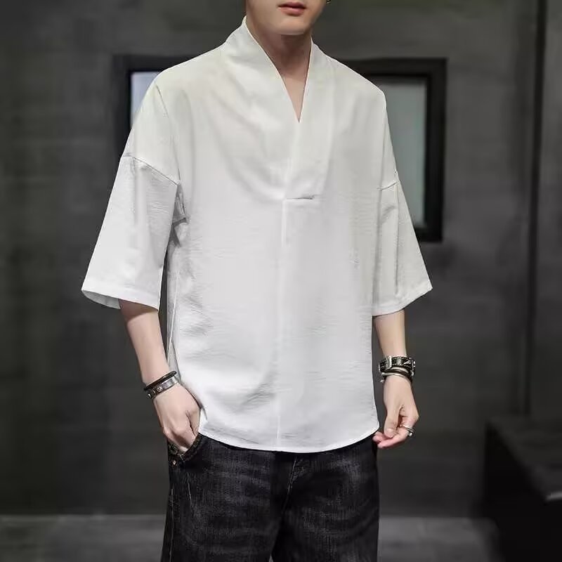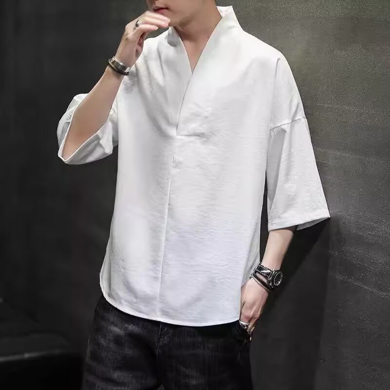 국경 간 여름 원피스 새로운 중국 스타일 국가 스타일 원래 개선 된 태극권 크로스 칼라 짧은 소매 중국 셔츠 통기성 기본 셔츠 한푸