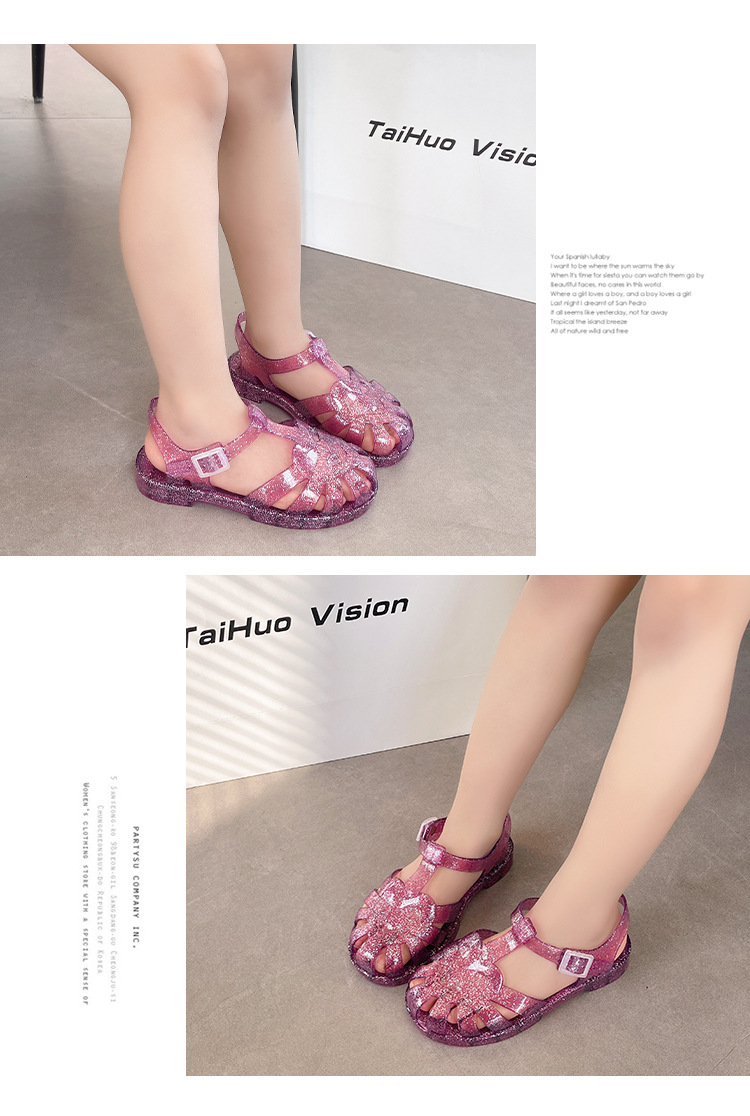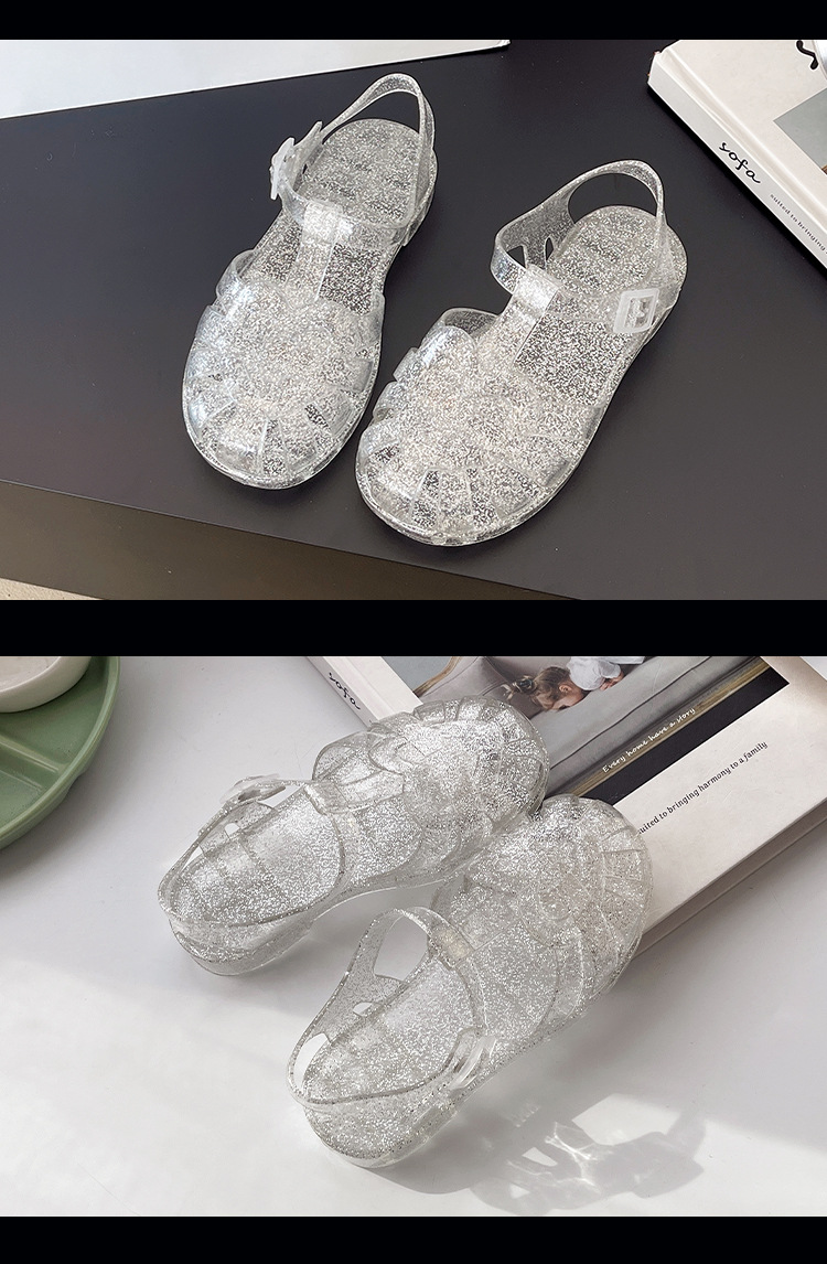 여자 샌들 빛나는 젤리 신발 로마 비치 신발 힙 슈즈 빈 2025 새로운 캐주얼 슈즈 크로스 보더 헤어스토어 가기