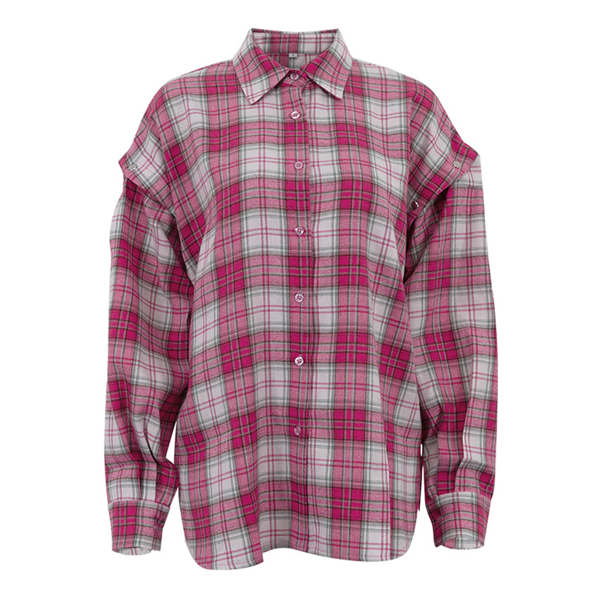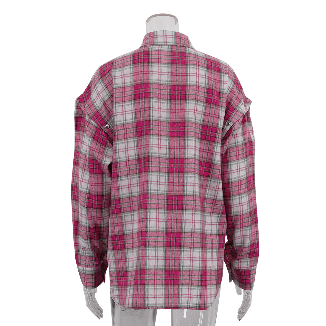 핑크 격자 무늬 셔츠 여자 국경 유럽 및 미국 새로운 올 매치 루즈 셔츠 분리 가능한 긴 소매 옷깃 아우터 탑