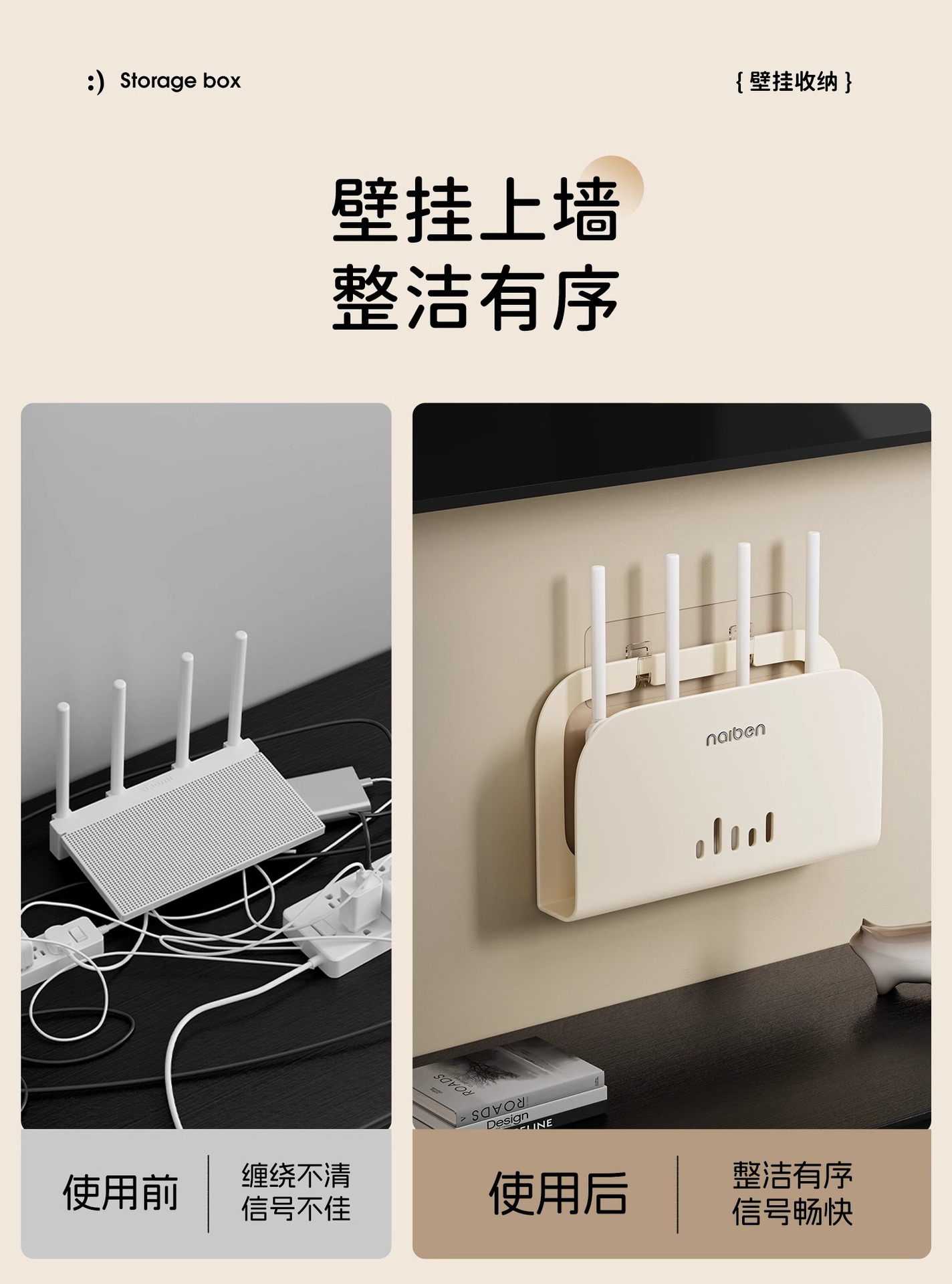 라우터 스토리지 랙 와이파이 스토리지 박스 세트 상단 박스 숨겨진 스토리지 벽 교수형 홀더 선반