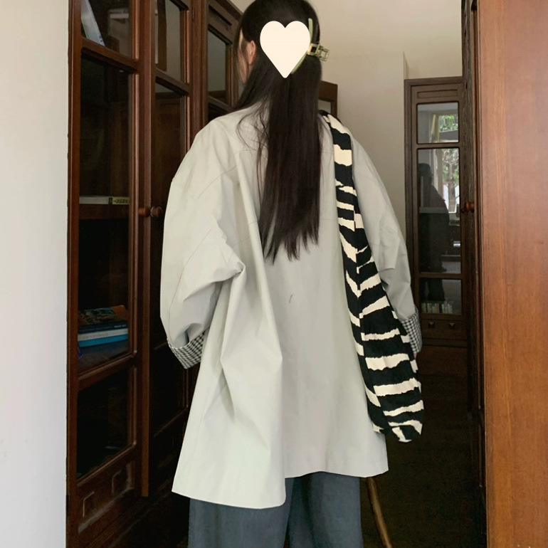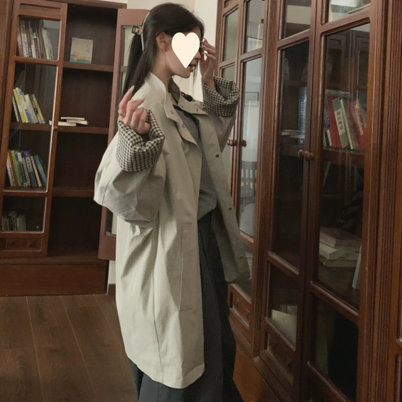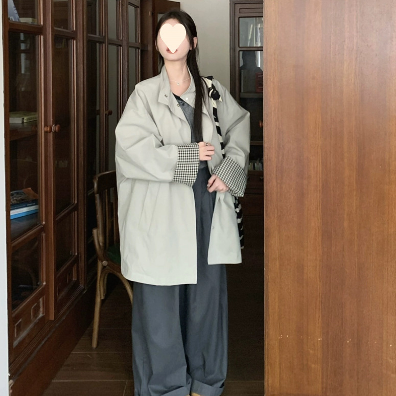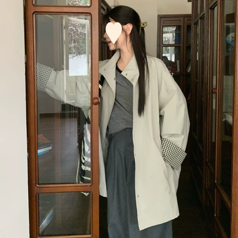 유럽 센스 윈드브레이커 코트 여성의 초가을 중간 길이 느슨한 한국식 콘트라스트 체크 무늬 코트 스위트 인스토어 가기