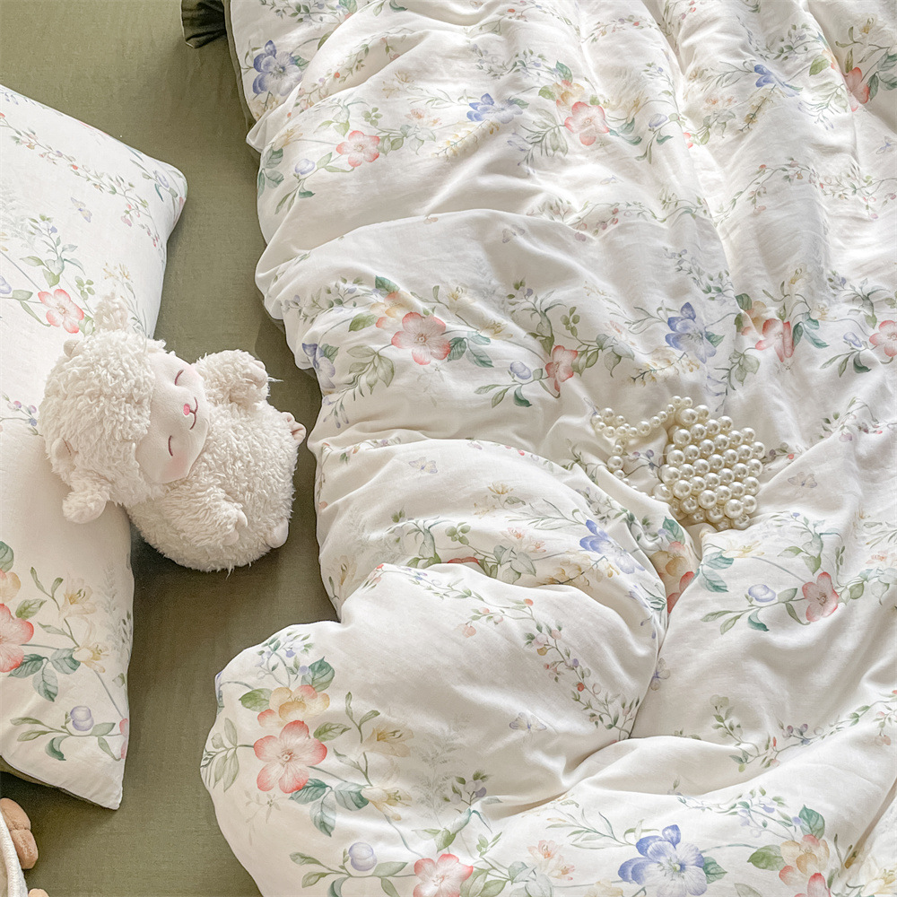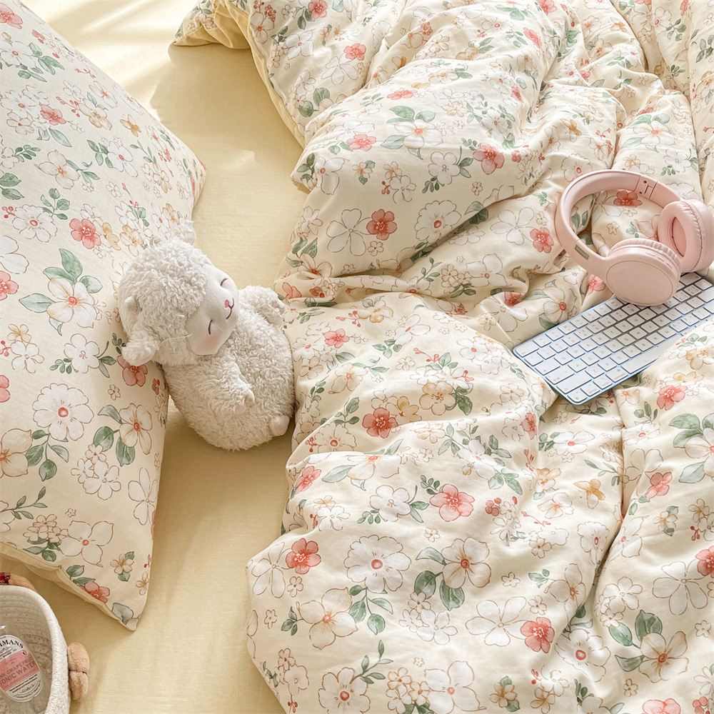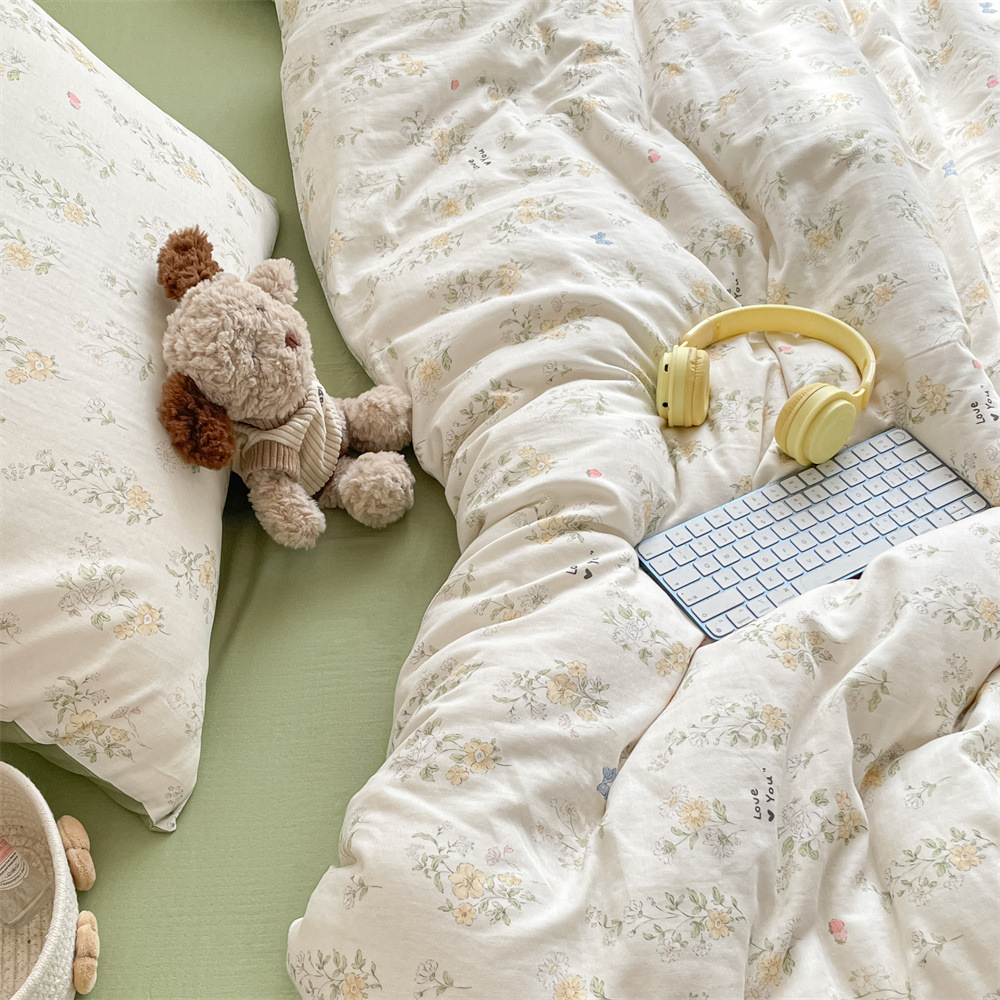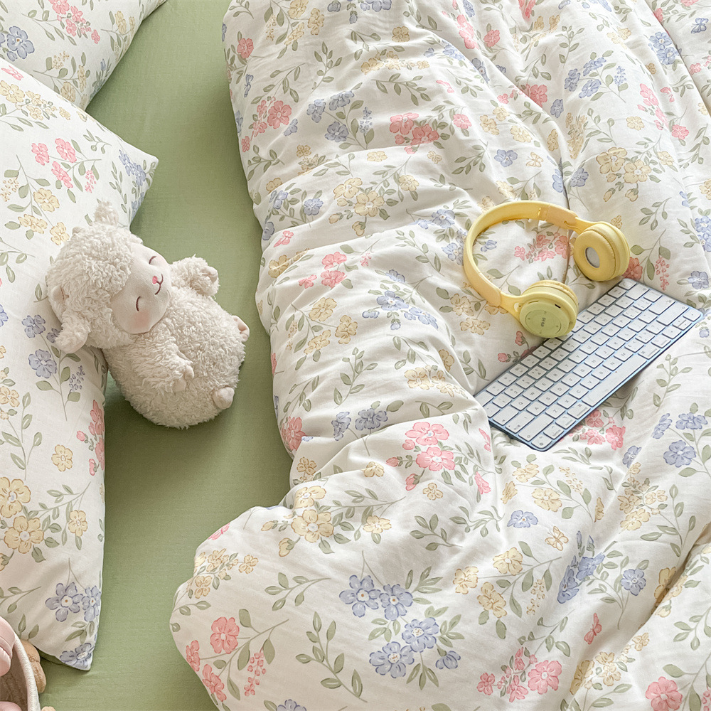 작은 꽃 신선한 면 더블 레이어 원사 4 피스 세트 코튼 퀼트 커버 시트 3 피스 세트 난통 침구 카테고리 a