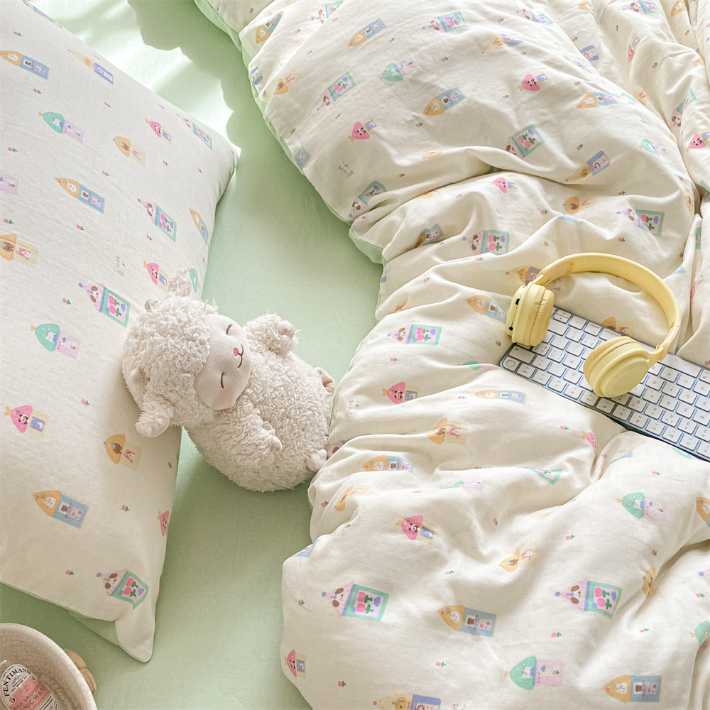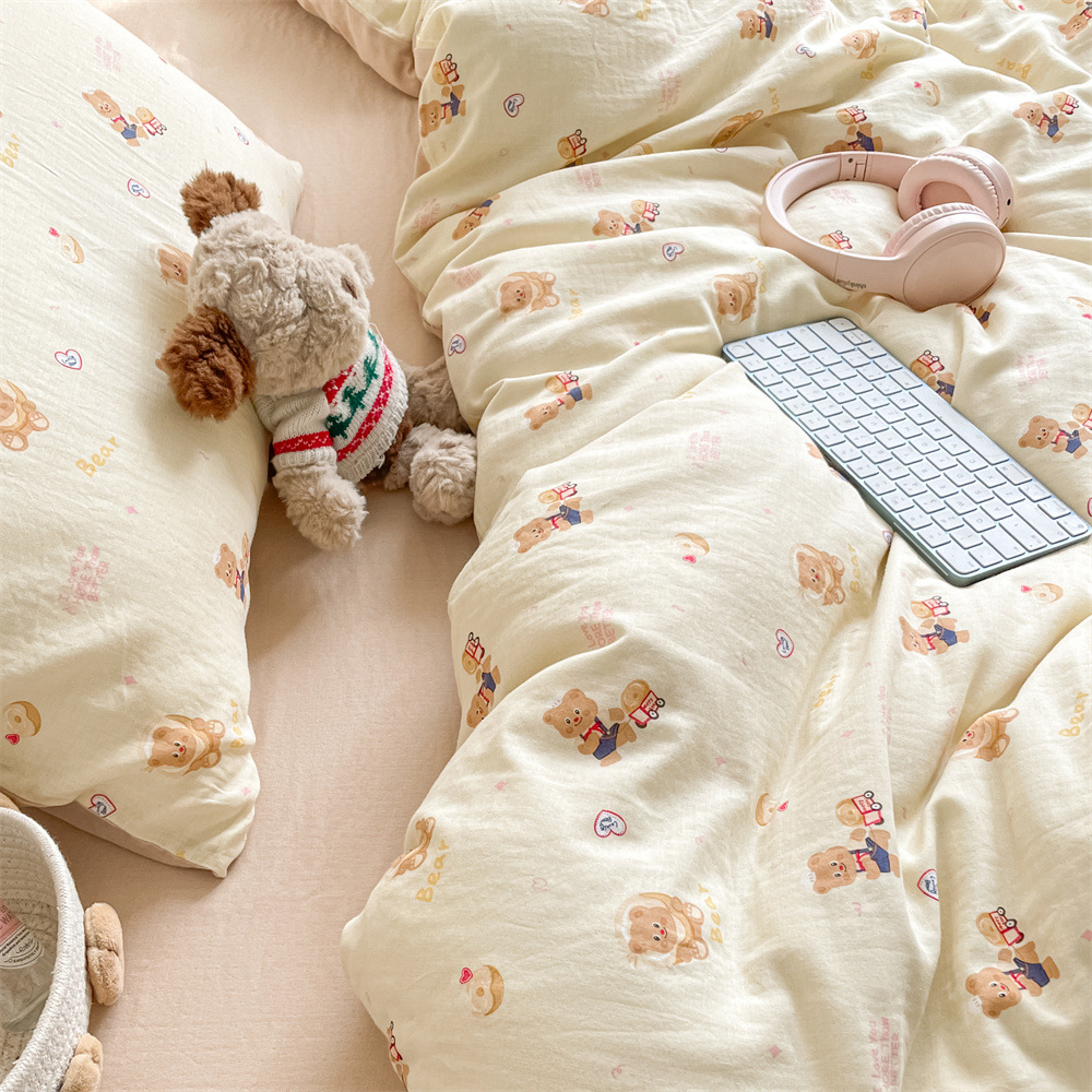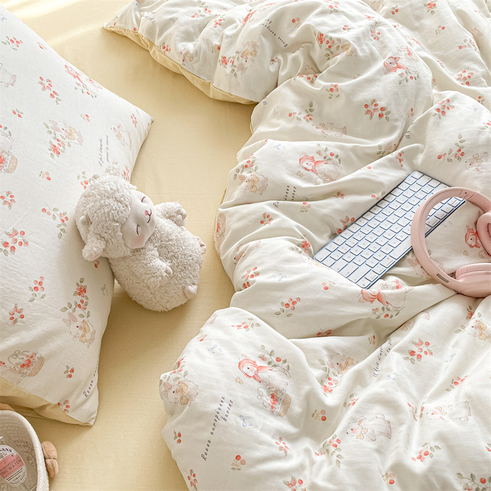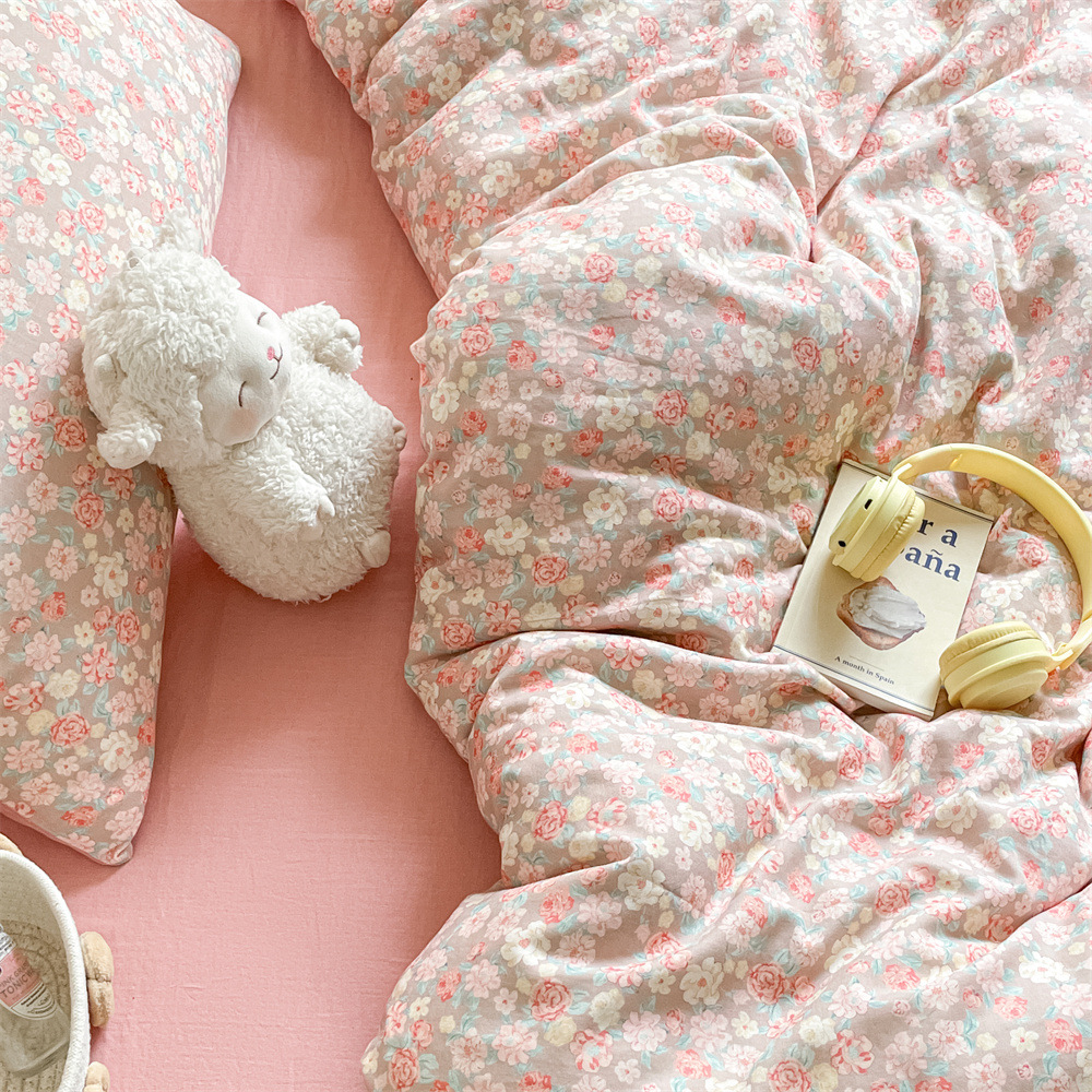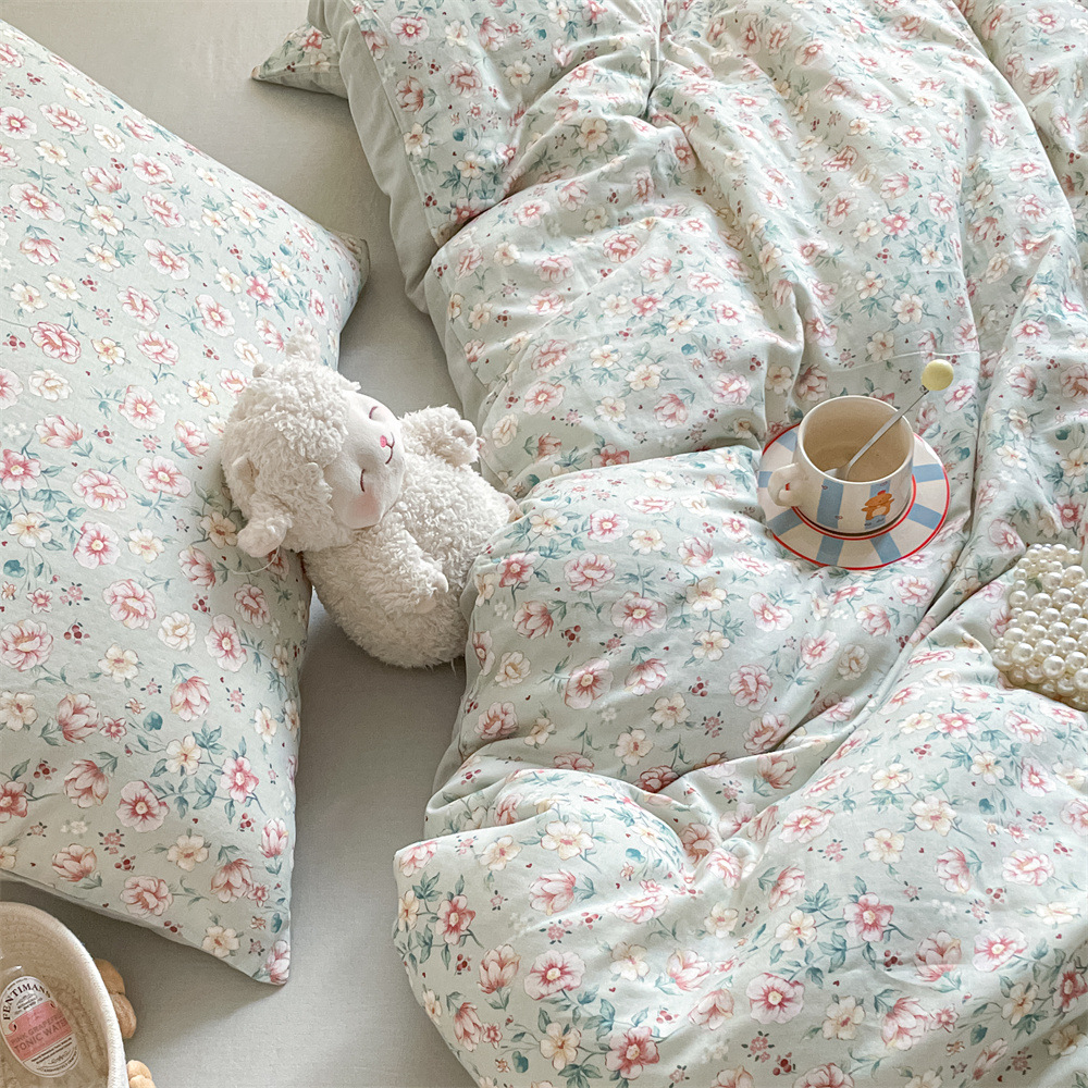 작은 꽃 신선한 면 더블 레이어 원사 4 피스 세트 코튼 퀼트 커버 시트 3 피스 세트 난통 침구 카테고리 a