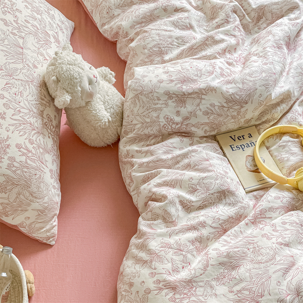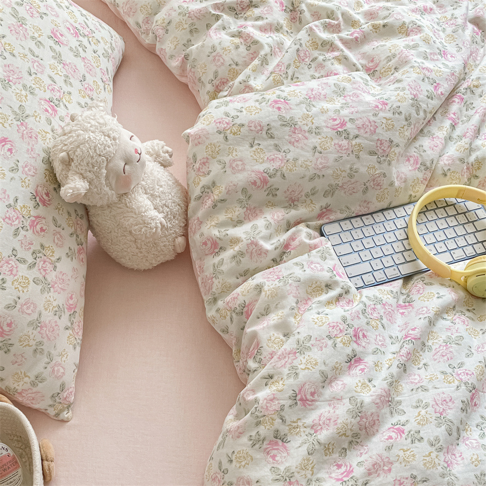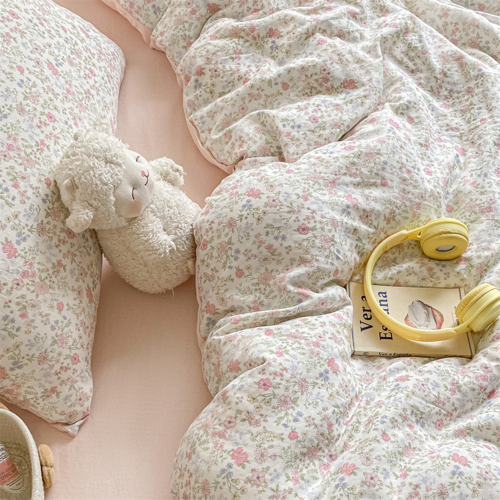 작은 꽃 신선한 면 더블 레이어 원사 4 피스 세트 코튼 퀼트 커버 시트 3 피스 세트 난통 침구 카테고리 a스토어 가기