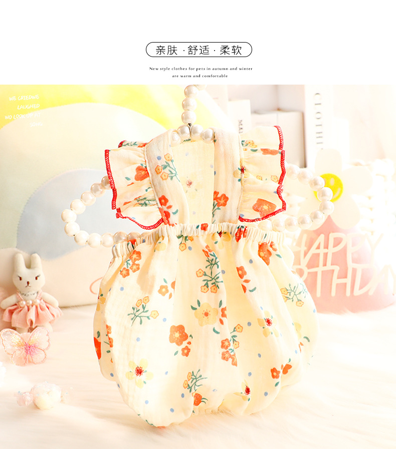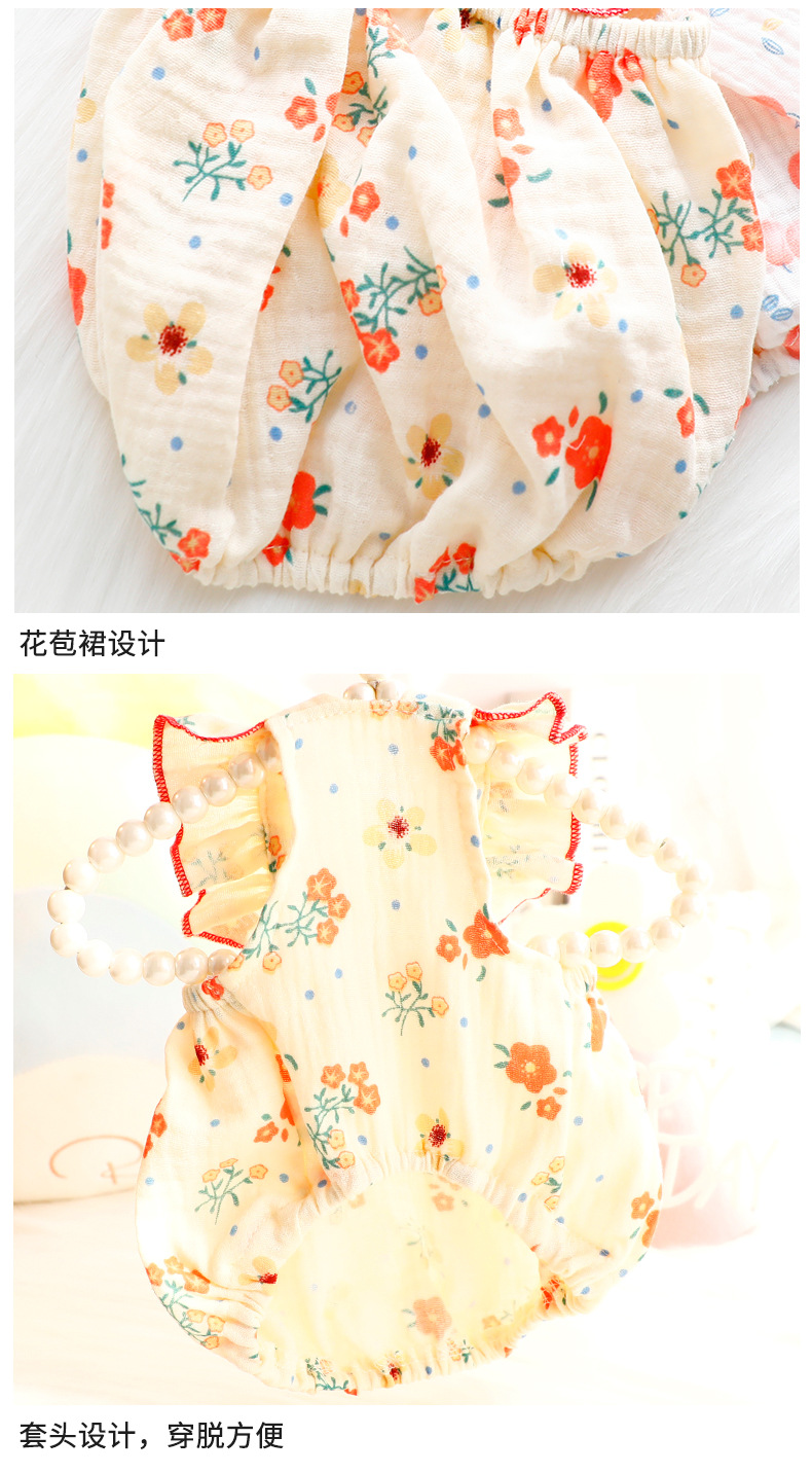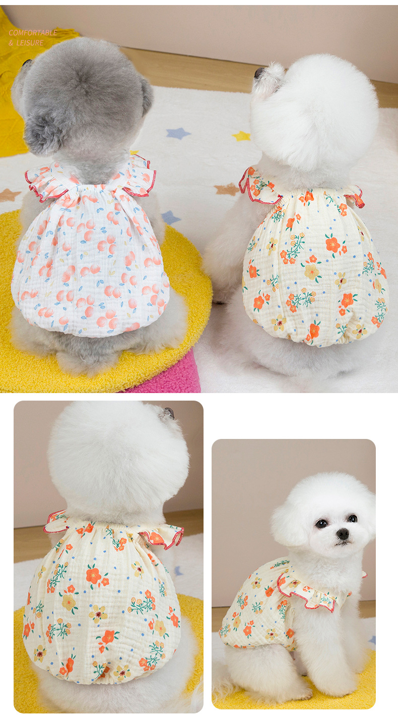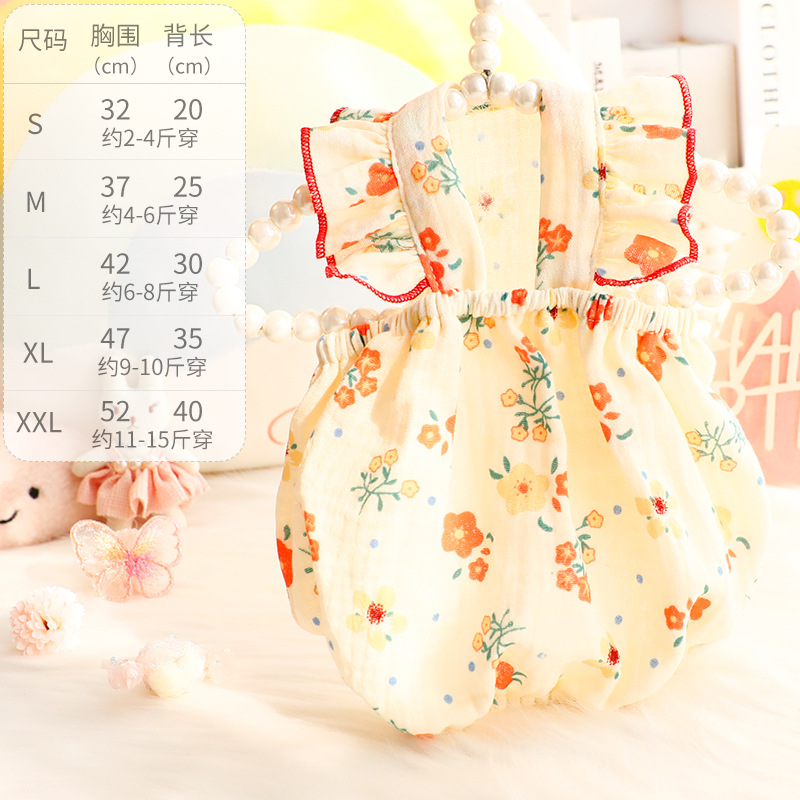 개 옷 봄과 여름 옷 얇은 고양이 공주 꽃 버드 면 원사 슬링 플라잉 슬리브 작은 개 테디 펫 6696