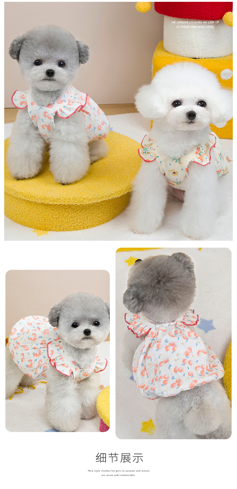 개 옷 봄과 여름 옷 얇은 고양이 공주 꽃 버드 면 원사 슬링 플라잉 슬리브 작은 개 테디 펫 6696스토어 가기