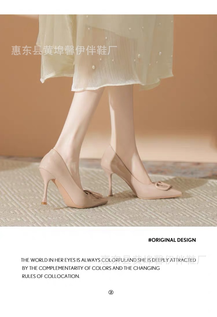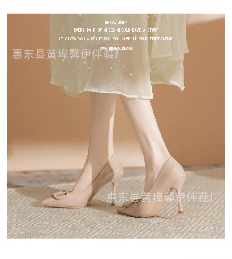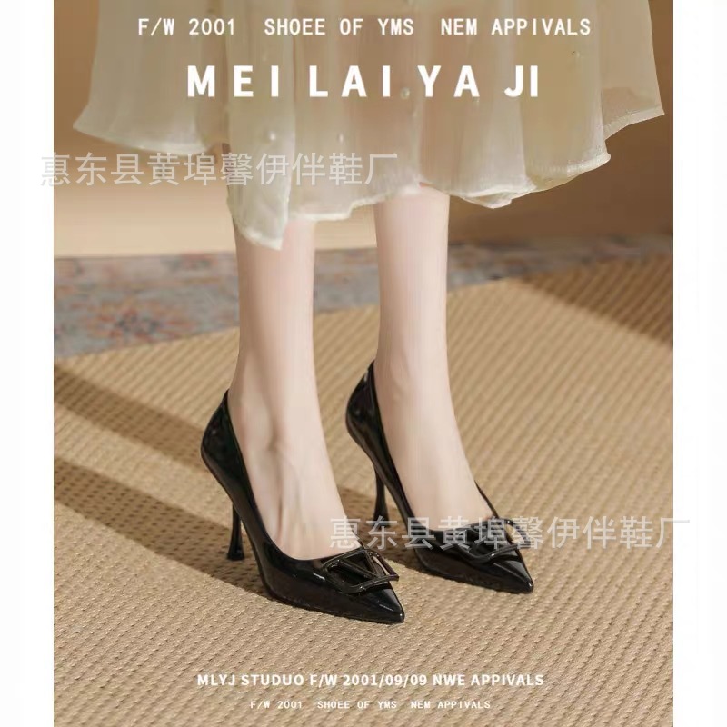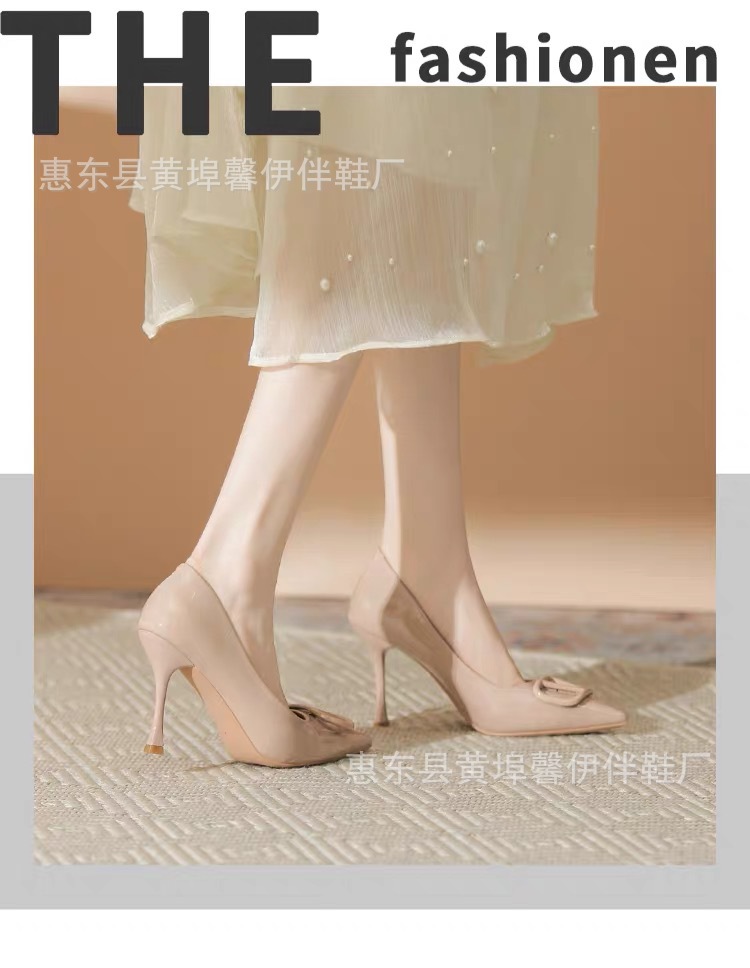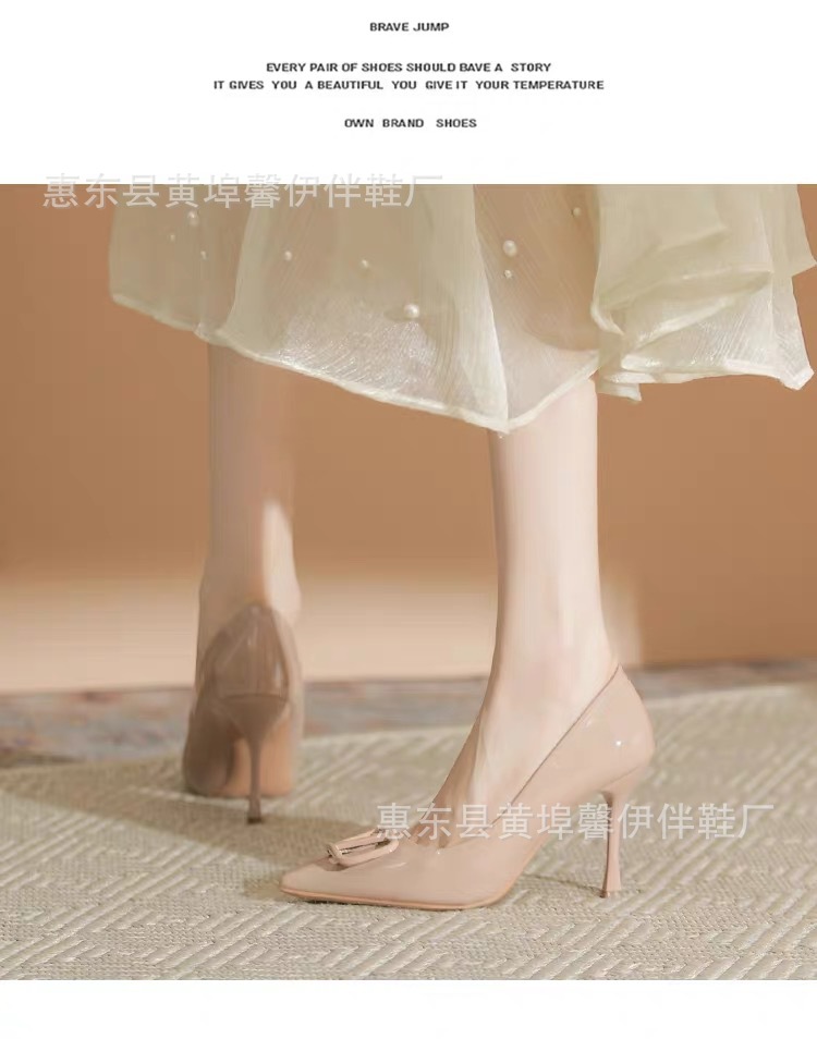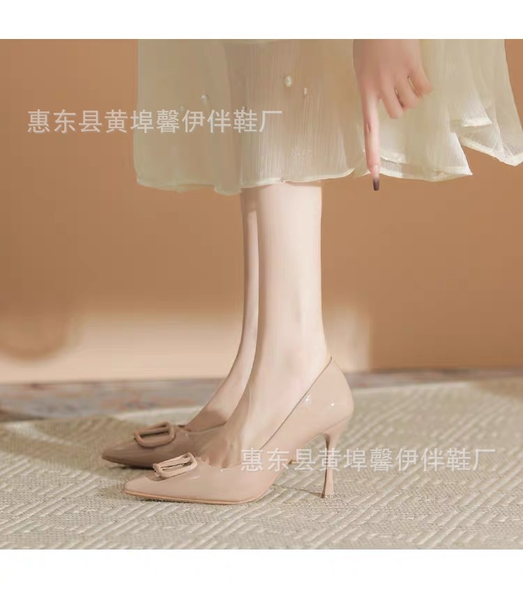 V 버클 하이힐 여성용 스틸레토 힐 2025 봄 새로운 도착 특허 가죽 뾰족한 발가락 아름다운 섹시한 패션 누드 컬러 싱글 레이어 신발 여성 신발스토어 가기