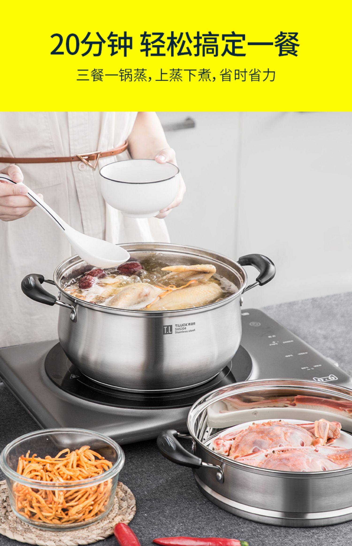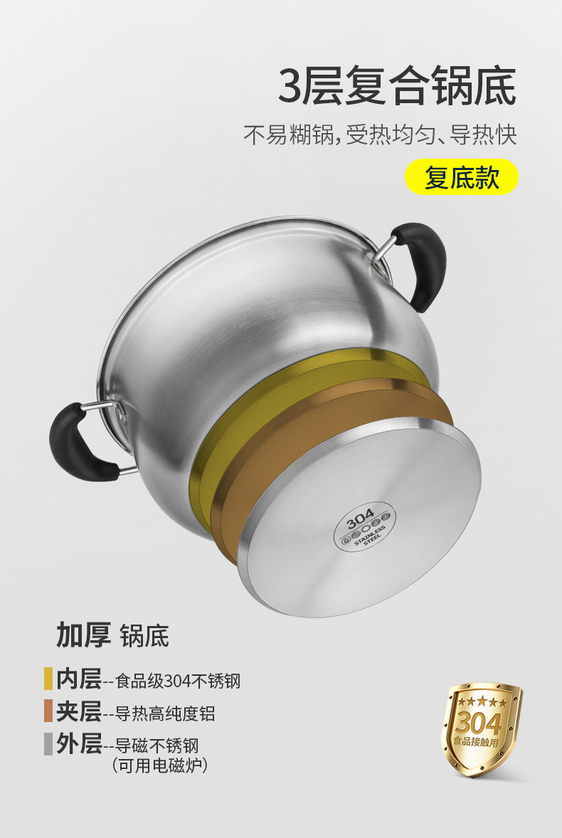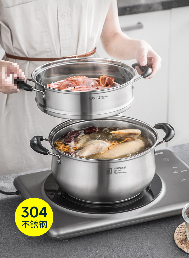 VHM7 도매 304 스테인레스 스틸 두꺼운 기선 가정용 기선 다기능 스튜 수프 냄비 유도 쿠커 가스 스페셜스토어 가기