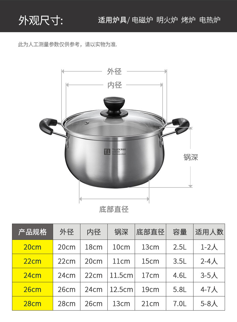 VHM7 도매 304 스테인레스 스틸 두꺼운 기선 가정용 기선 다기능 스튜 수프 냄비 유도 쿠커 가스 스페셜