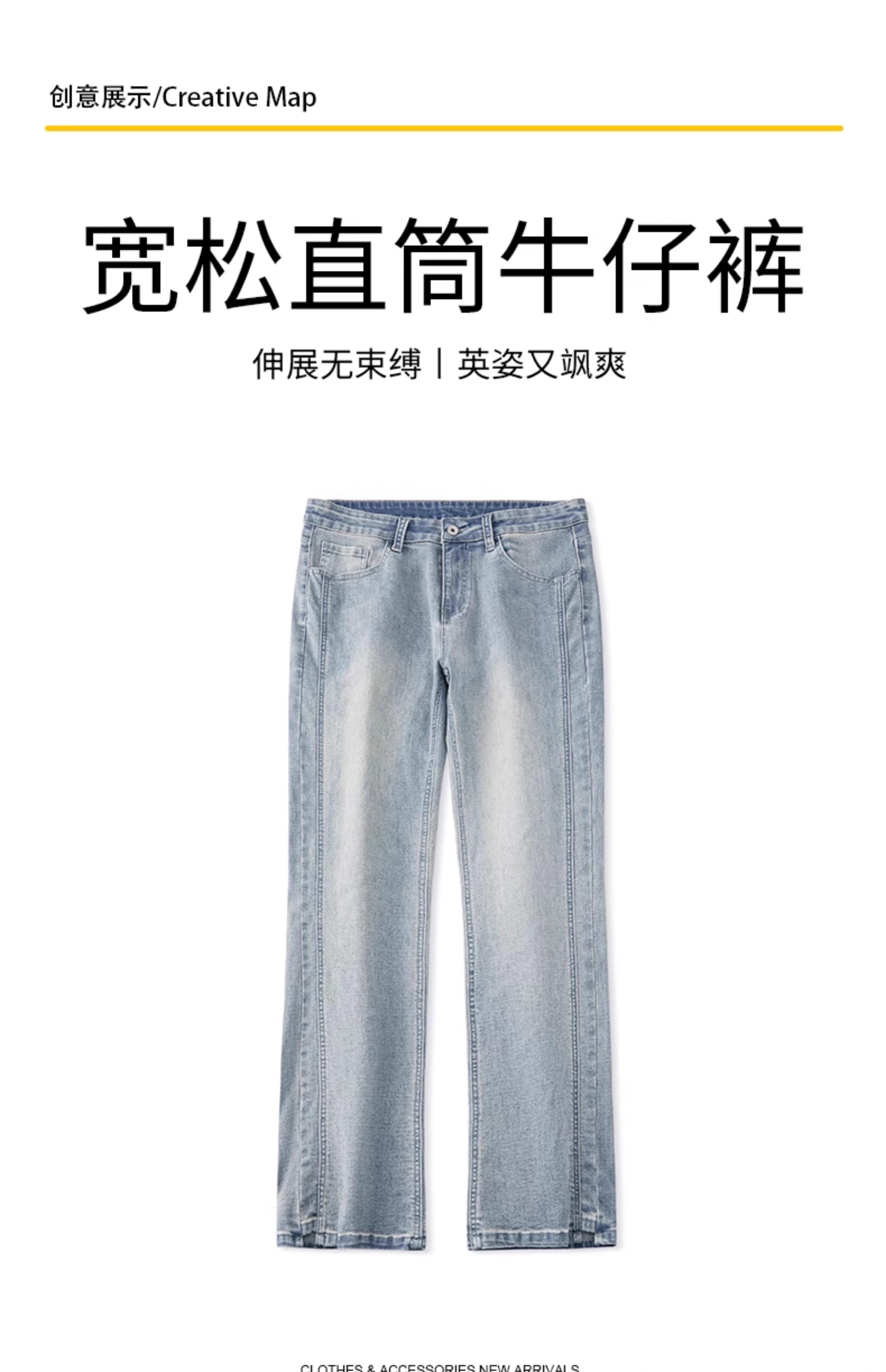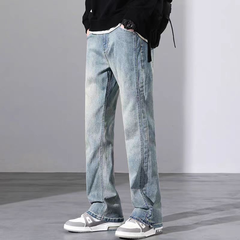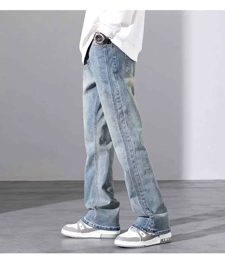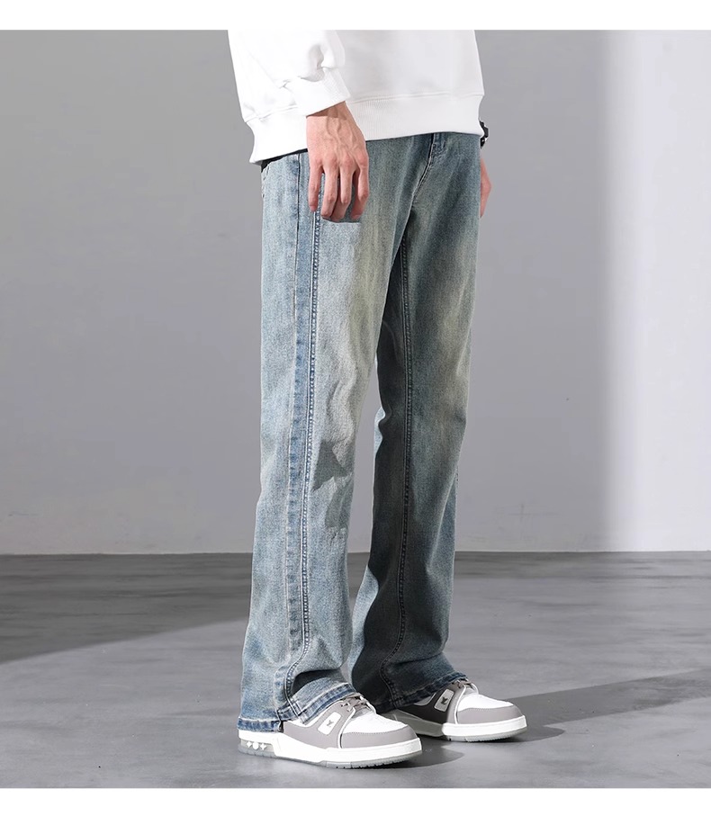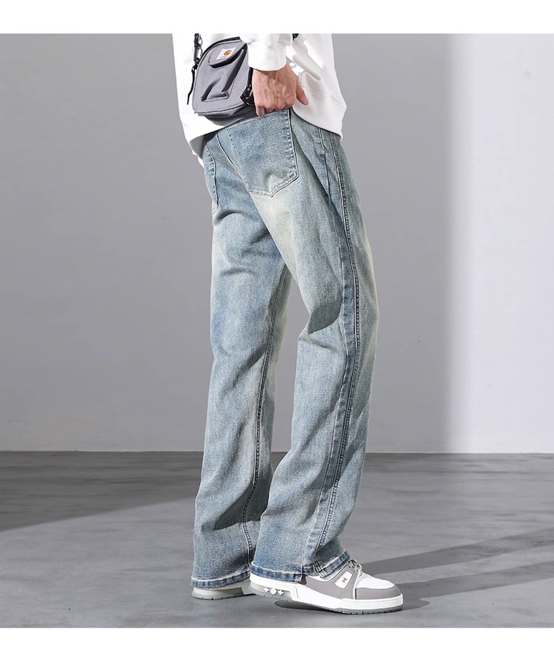 봄과 가을 빈티지 씻은 느슨한 스트레이트 바지 Weila 남자 캐주얼 남자 바지 가을 미국 하이 스트리트 청바지스토어 가기