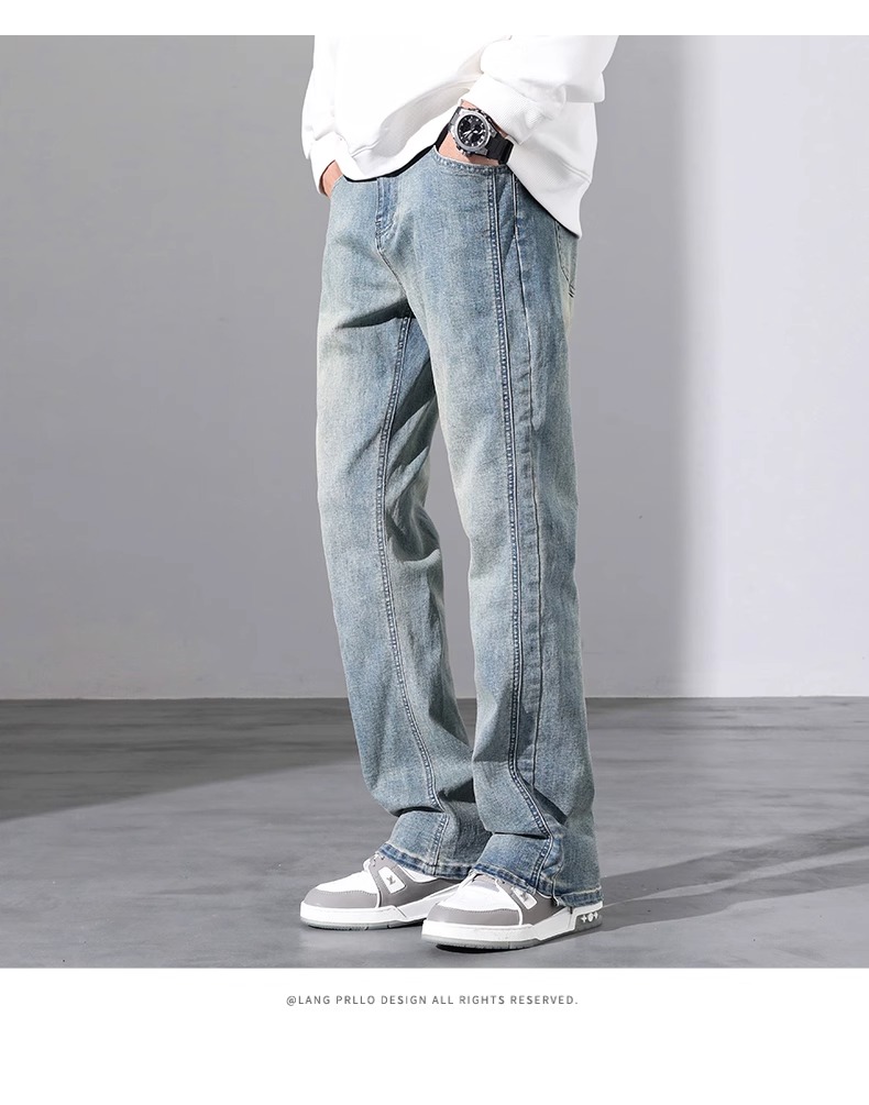 봄과 가을 빈티지 씻은 느슨한 스트레이트 바지 Weila 남자 캐주얼 남자 바지 가을 미국 하이 스트리트 청바지