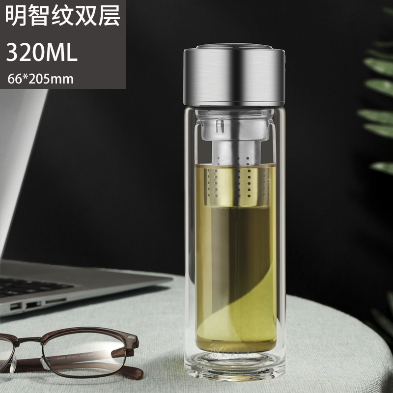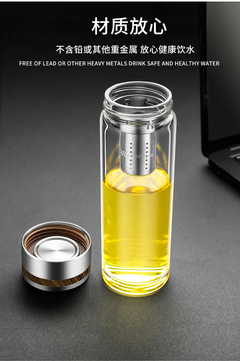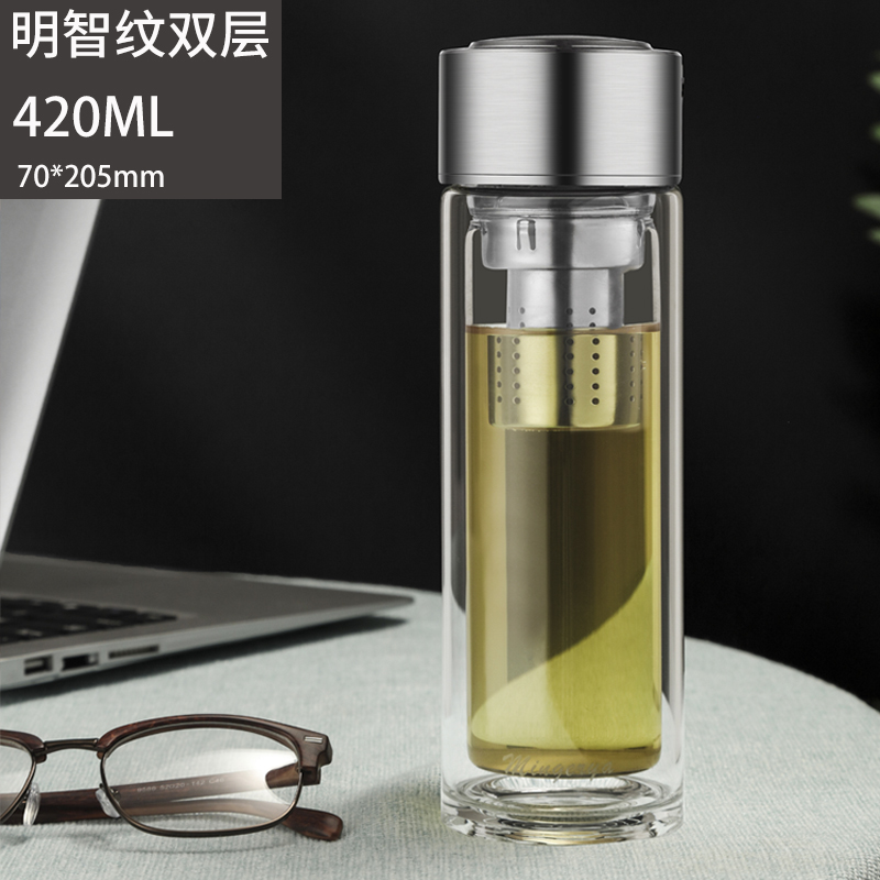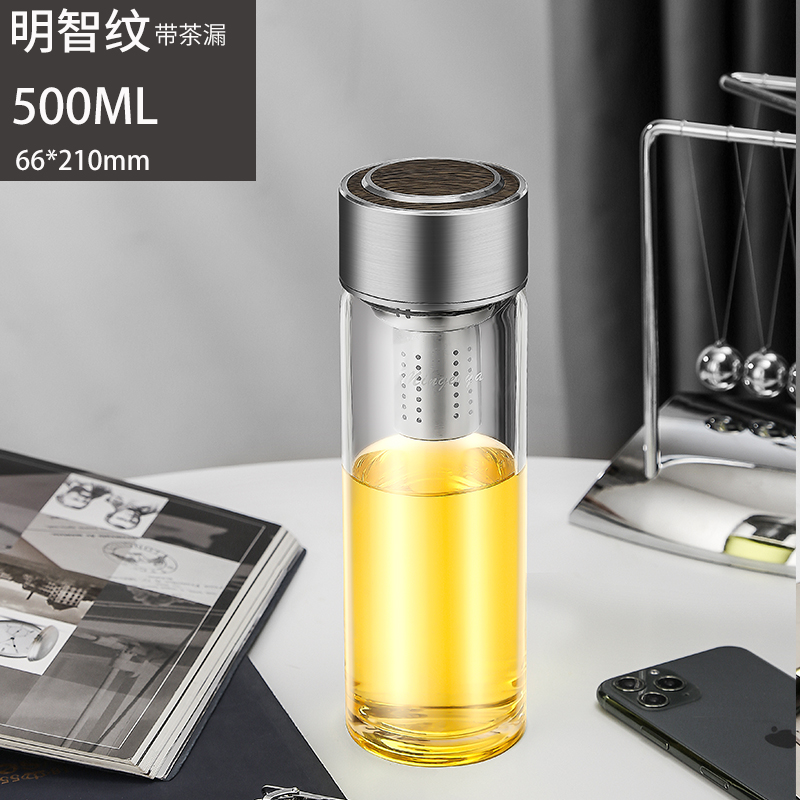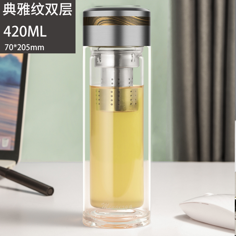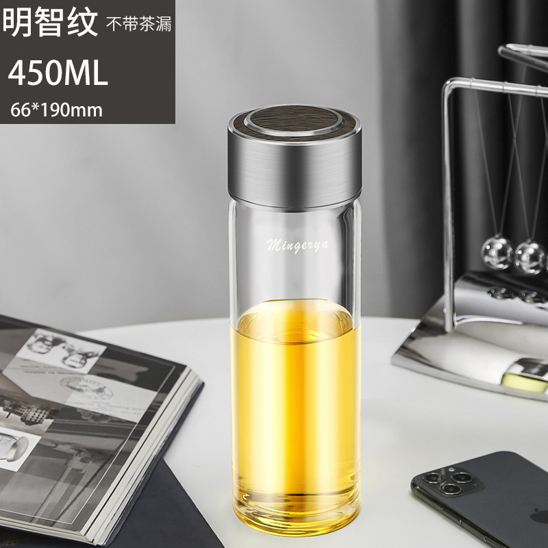 Mingerya 단일 층 유리 물 컵 필터 단열 버블 티 컵 자동차 투명 티 컵으로 걸쭉한 남성용