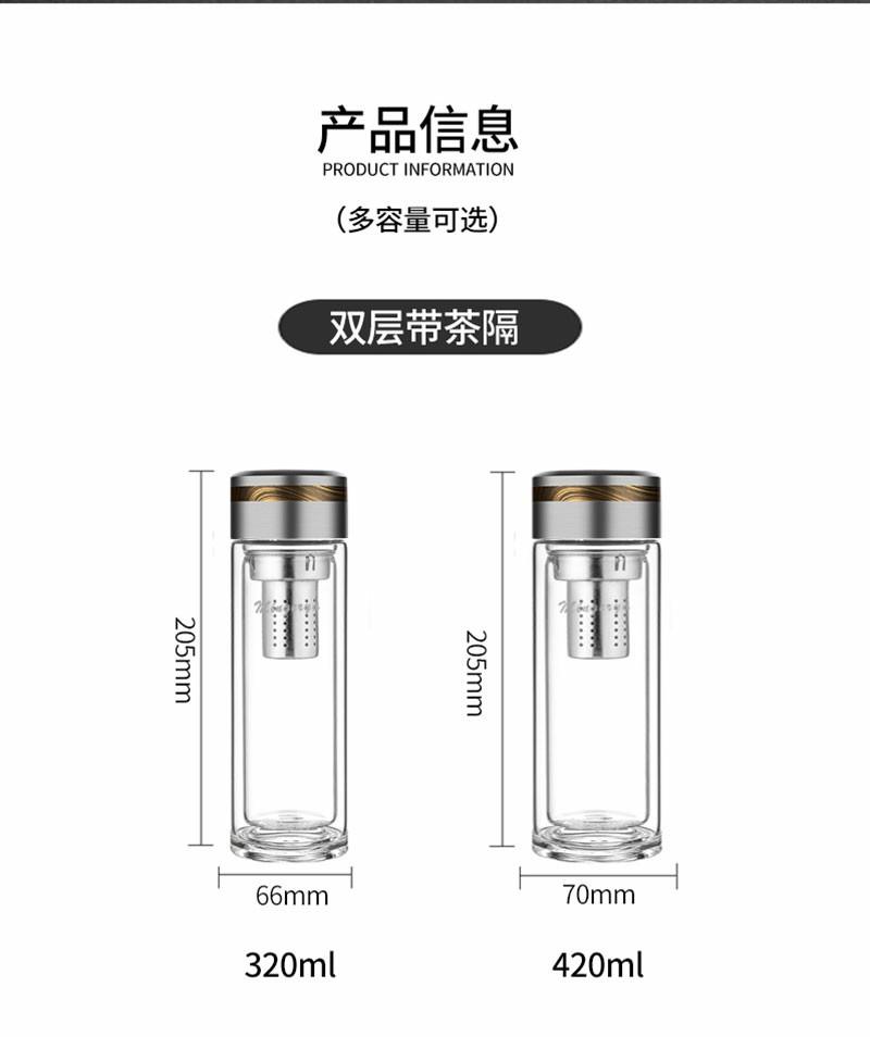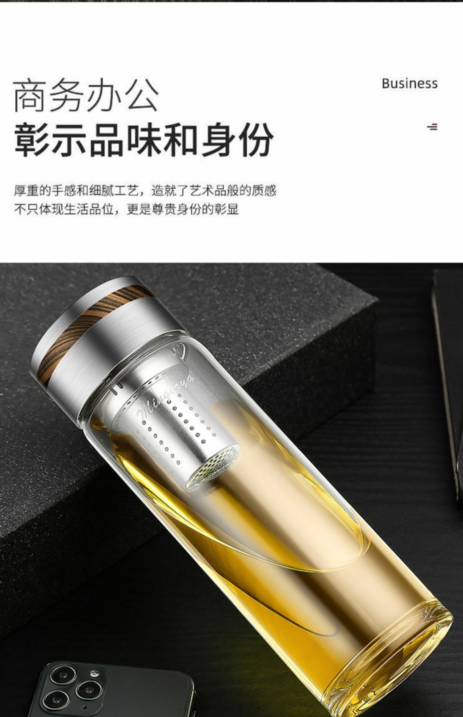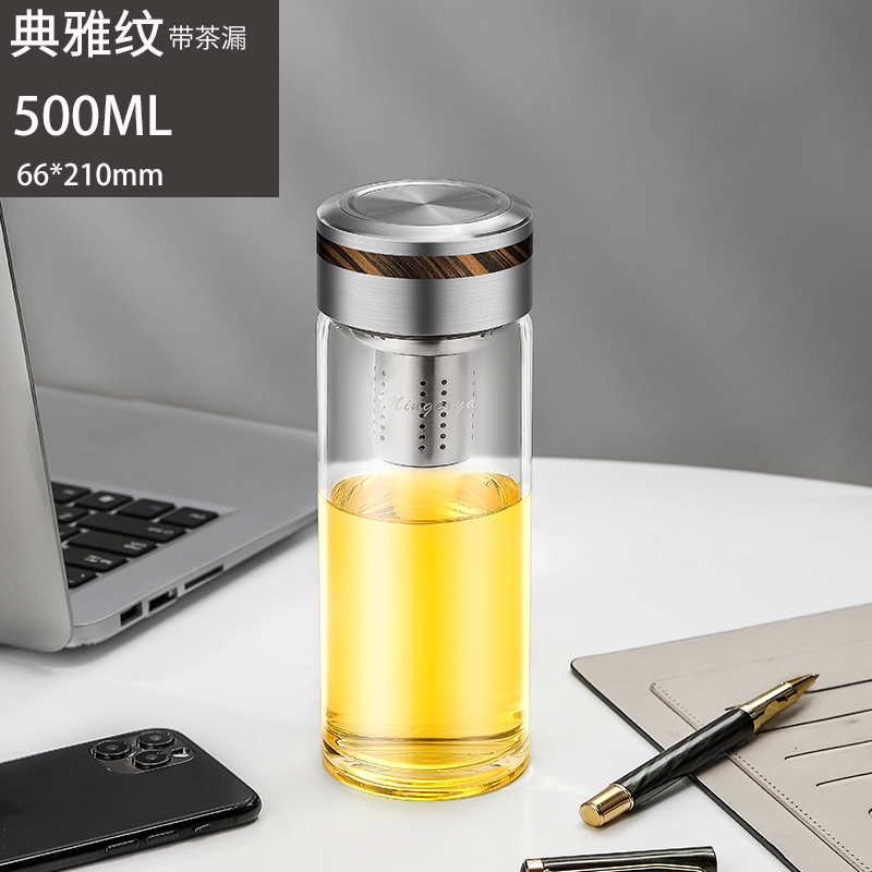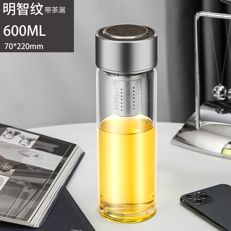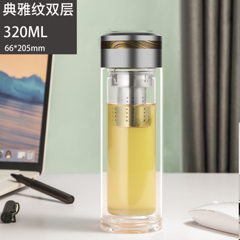 Mingerya 단일 층 유리 물 컵 필터 단열 버블 티 컵 자동차 투명 티 컵으로 걸쭉한 남성용