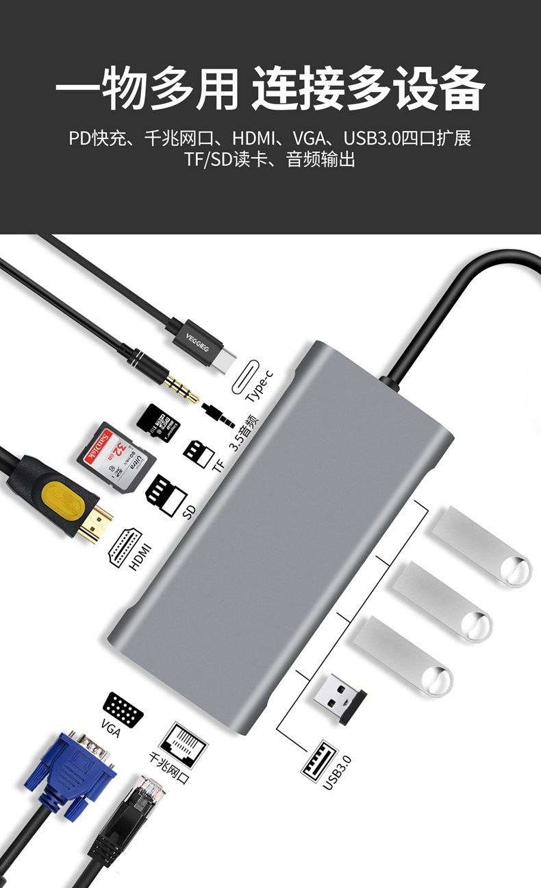 1.三合一体设计,省空间更全能:集Type-C拓展坞、桌面hub集线器、多合一读卡器于一身,无需额外搭配其他配件,一台搞定接口扩展、设备转接、数据读取三大需求,桌面更整洁,携带更方便,居家、办公、户外都适配。