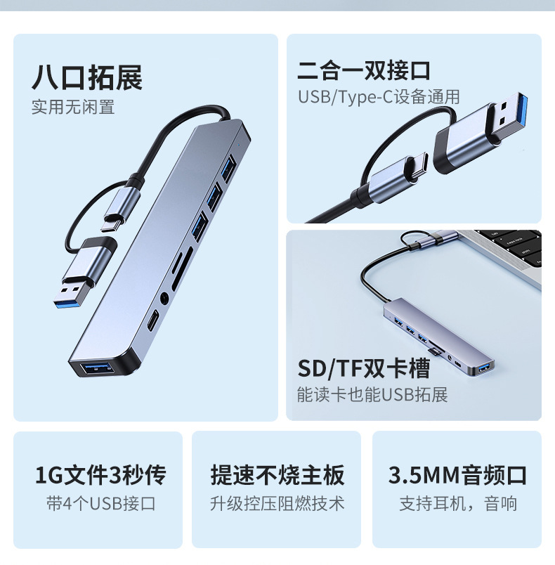 【核心定位】一台解锁全设备接口自由|办公/学习/娱乐全能适配,台式机、笔记本通用,告别接口短缺、多线杂乱的困扰,小巧桌面hub+读卡器+多接口拓展三合一,轻量便携又高效,满足日常所有拓展需求~
