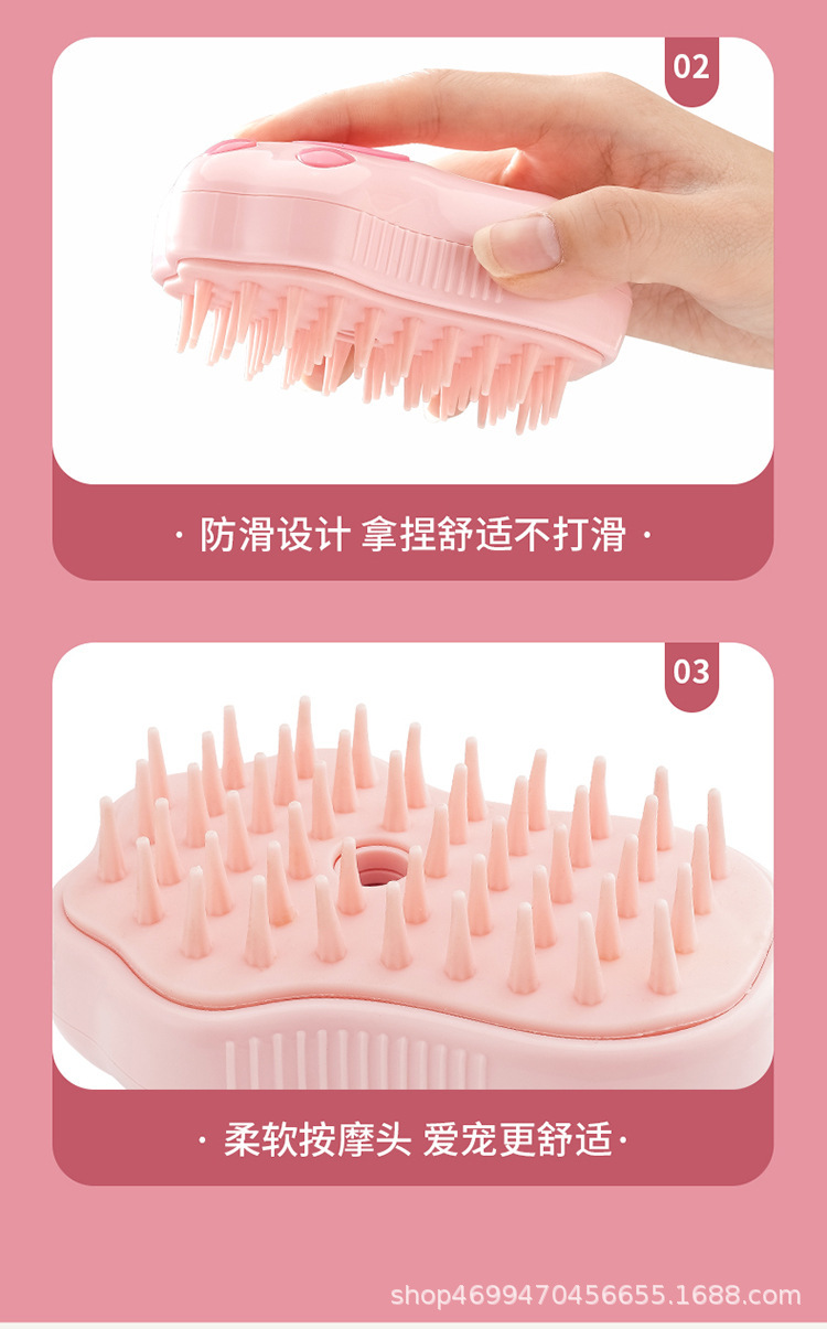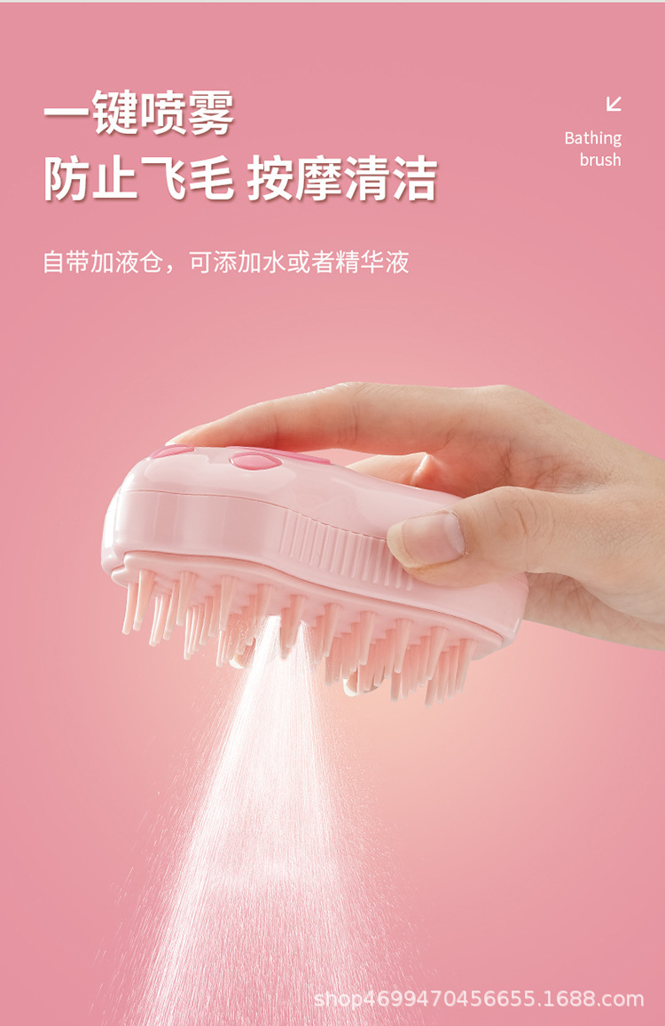 국경 간 애완 동물 워시프리 빗 고양이와 개 애완 동물 전기 스프레이 머리 제거 빗 원 버튼 스프레이 플라이 헤어 마사지 빗 실리콘스토어 가기