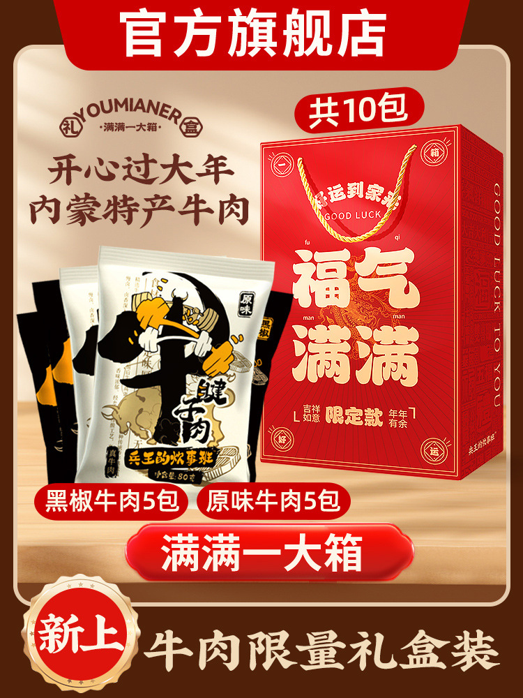 • [신년선물박스] [대형 10팩] 오리지널 쇠고기 5팩 + 흑후추 쇠고기 5팩